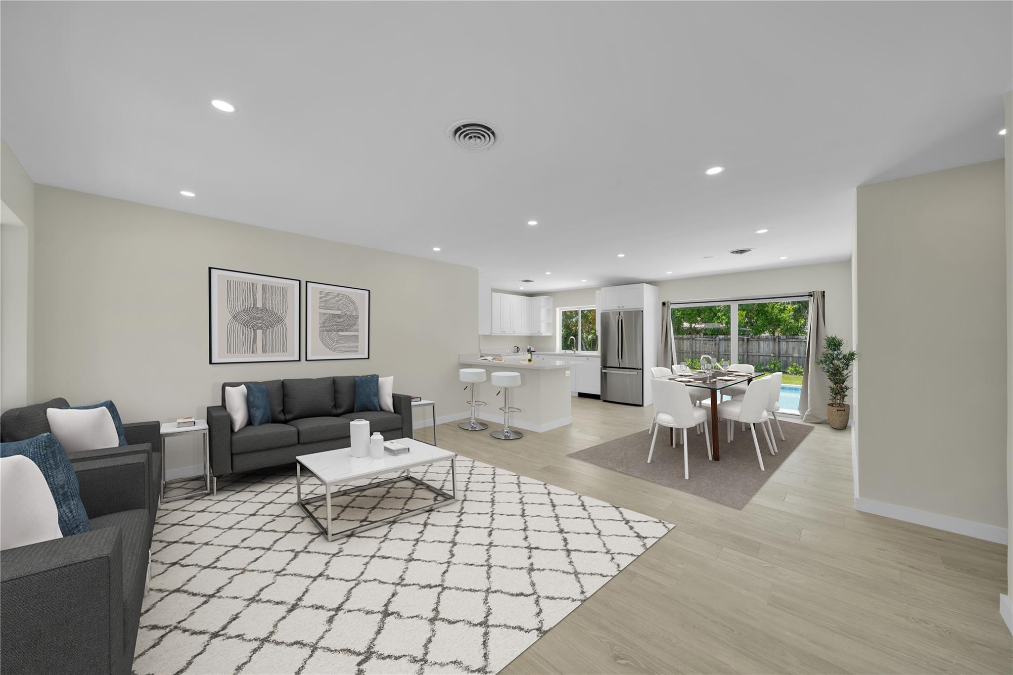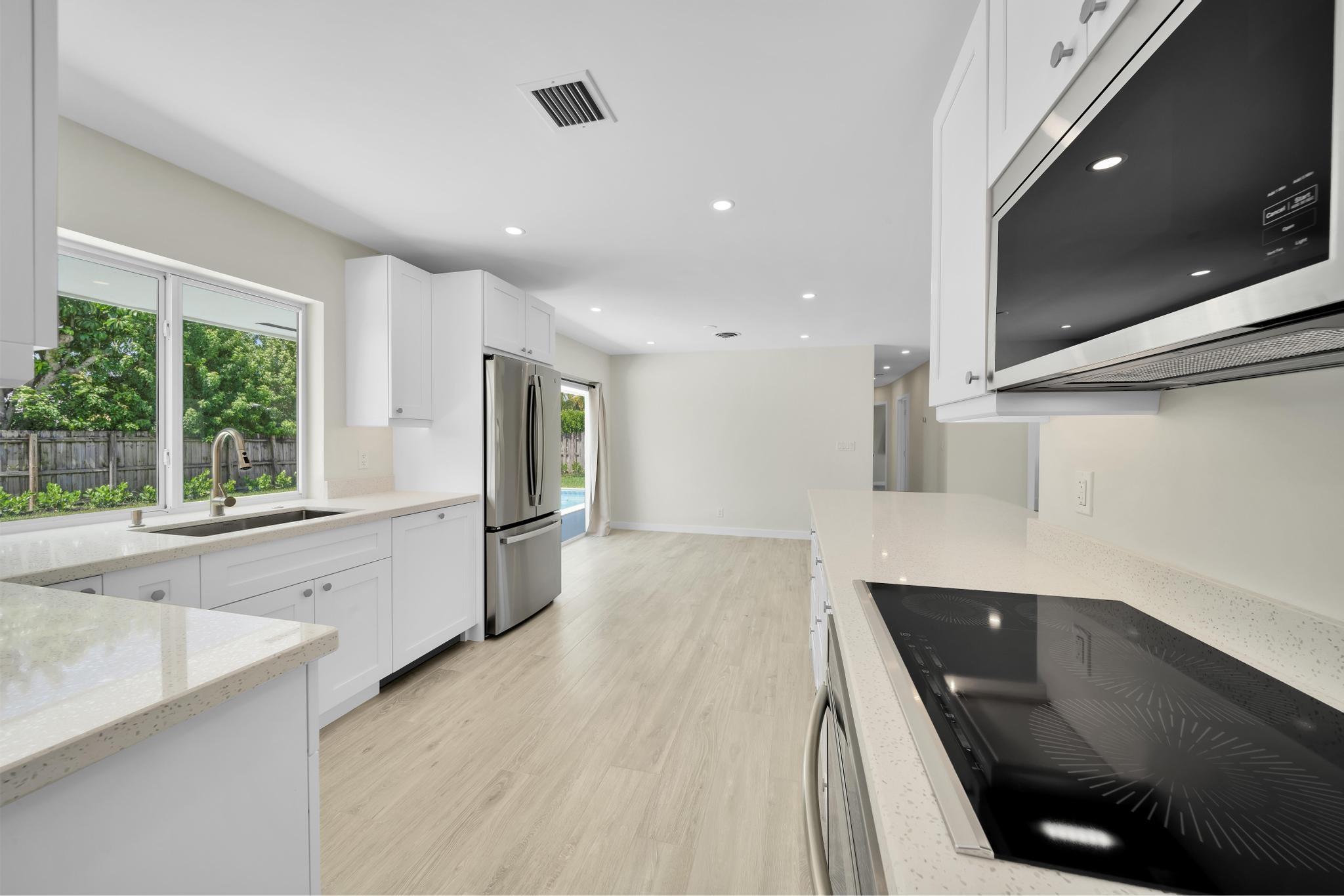 Florida Living at its Best! This fully renovated gem is the ultimate sanctuary. Just minutes from the beach. Top-rated schools, restaurants and entertainment. With NO HOA or RESTRICTIONS, you will enjoy freedom and convenience in this move-in-ready masterpiece. Upgraded for modern living. New plumbing, underground pipes, wiring, and electrical panel. Impact-rated doors and windows for safety and efficiency. Stunning kitchen and luxurious bathrooms with Quartz countertops and smart appliances. Sleek Italian porcelain tile, new A/C system, tankless water heater. Step into your private oasis, a fenced yard with an upgraded 15X30 pool, custom lighting and a sprinkler system for lush landscaping. Perfect for entertaining and relaxing in peace. Own this stylish, turnkey home today!
