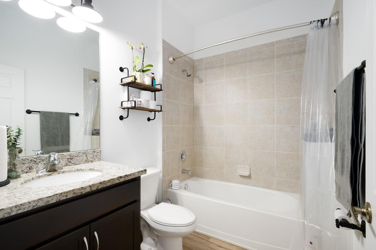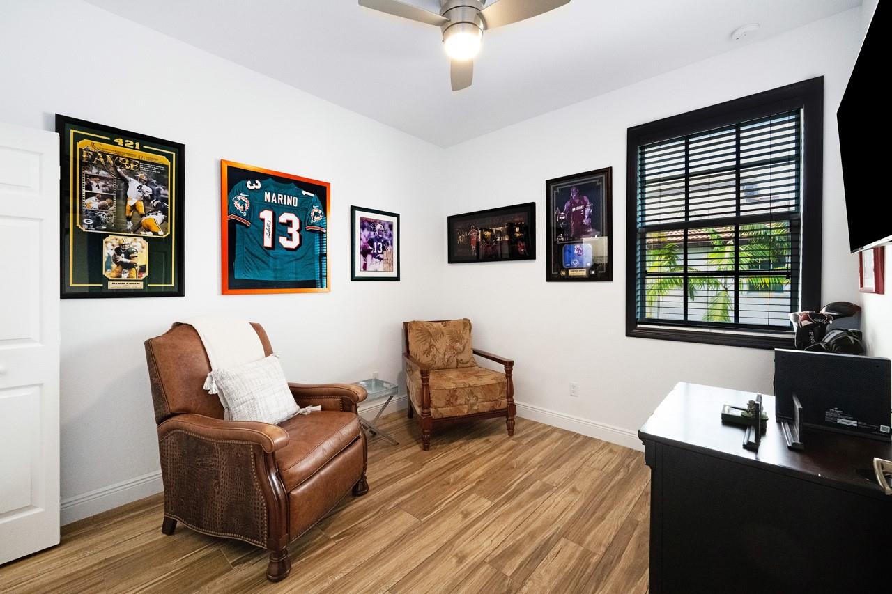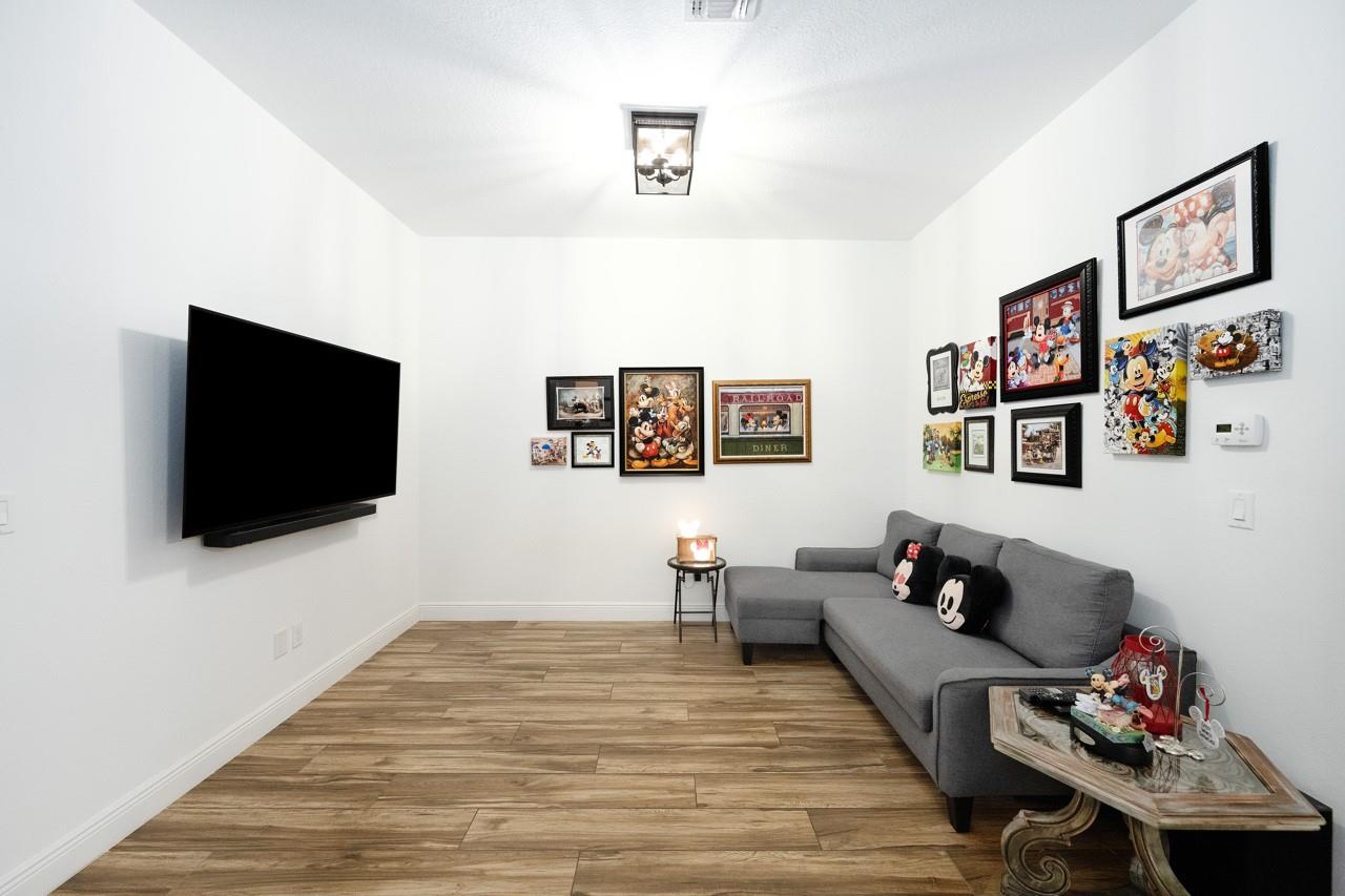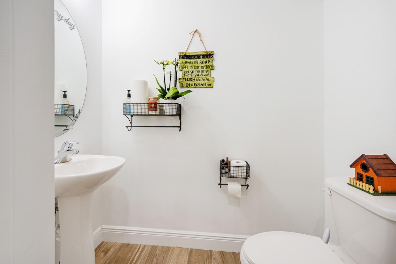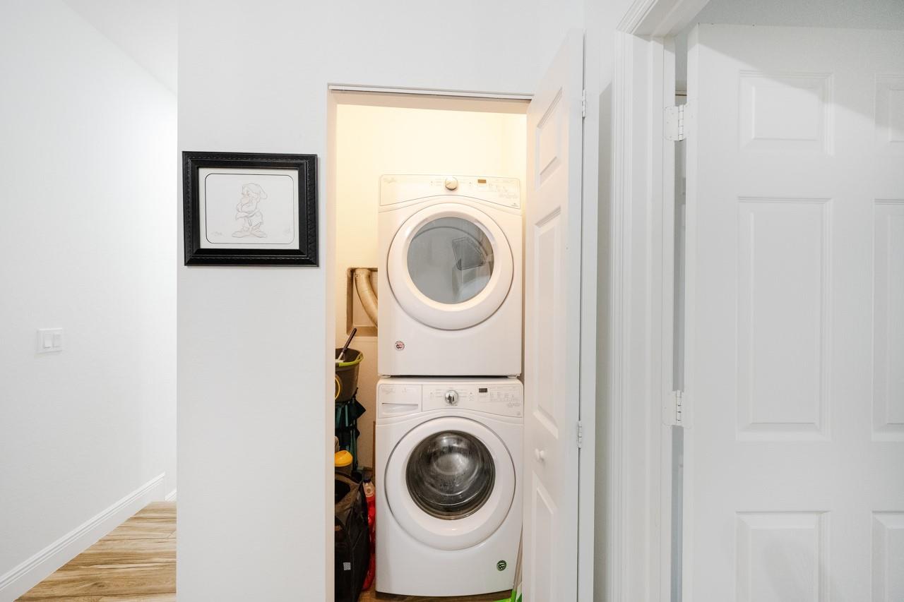 This 3/2.5 2 car garage home has continuous wood grain porcelain tile flooring throughout. The kitchen is open and spacious, with plenty of cabinets, granite countertops, with a huge workspace on a peninsular bar, with ample seating. The kitchen backsplash flow into wall feature and entry to a large pantry. Window treatments include plantation shutters that match the color of the kitchen cabinets. Upstairs there are 3 bedrooms with 2 full bathrooms. There is also a loft that can be an entertainment area or serve as a 4th bedroom. The primary ensuite features a double sink and a walk-in shower. The primary has two large walk-in closets. The primary has a walk out balcony overlooking a tropical garden view. Home has all impact windows, fire alarm, fire sprinklers, upgraded light fixtures.