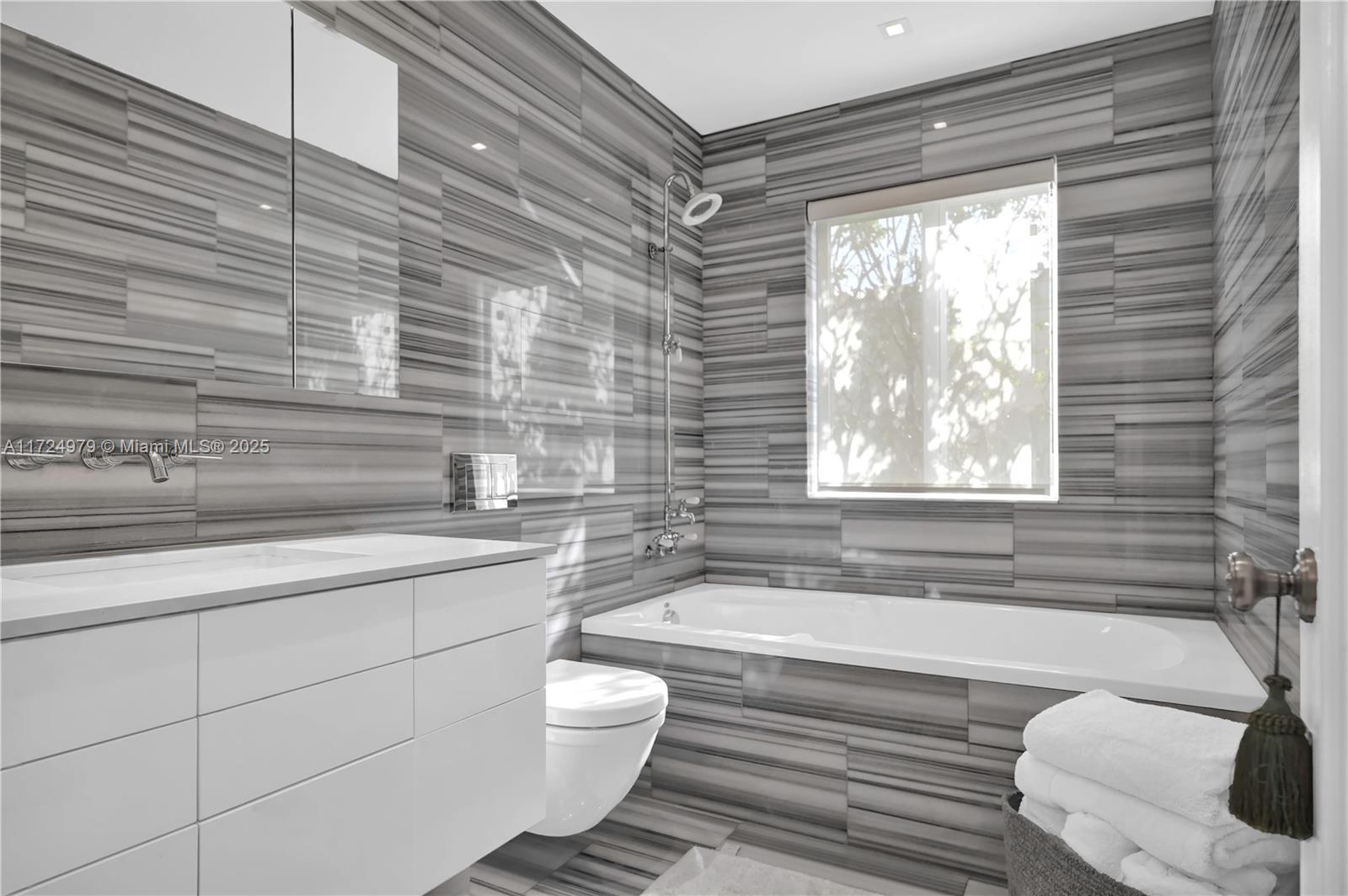 Experience the epitome of Miami Beach luxury in this stylish 3-bed, 3-bath home located in a friendly family neighborhood. Meticulously updated, the living room boasts soaring cathedral ceilings, creating an expansive and inviting atmosphere. The updated kitchen features pristine white marble counters, combining modern sophistication with functionality. Step outside to a tastefully designed pool, a landscaped backyard, and your own private sundeck—an outdoor oasis perfect for relaxation and entertaining. This home is not just a residence; it's a lifestyle. All lighting and window treatments are not included in the sale.