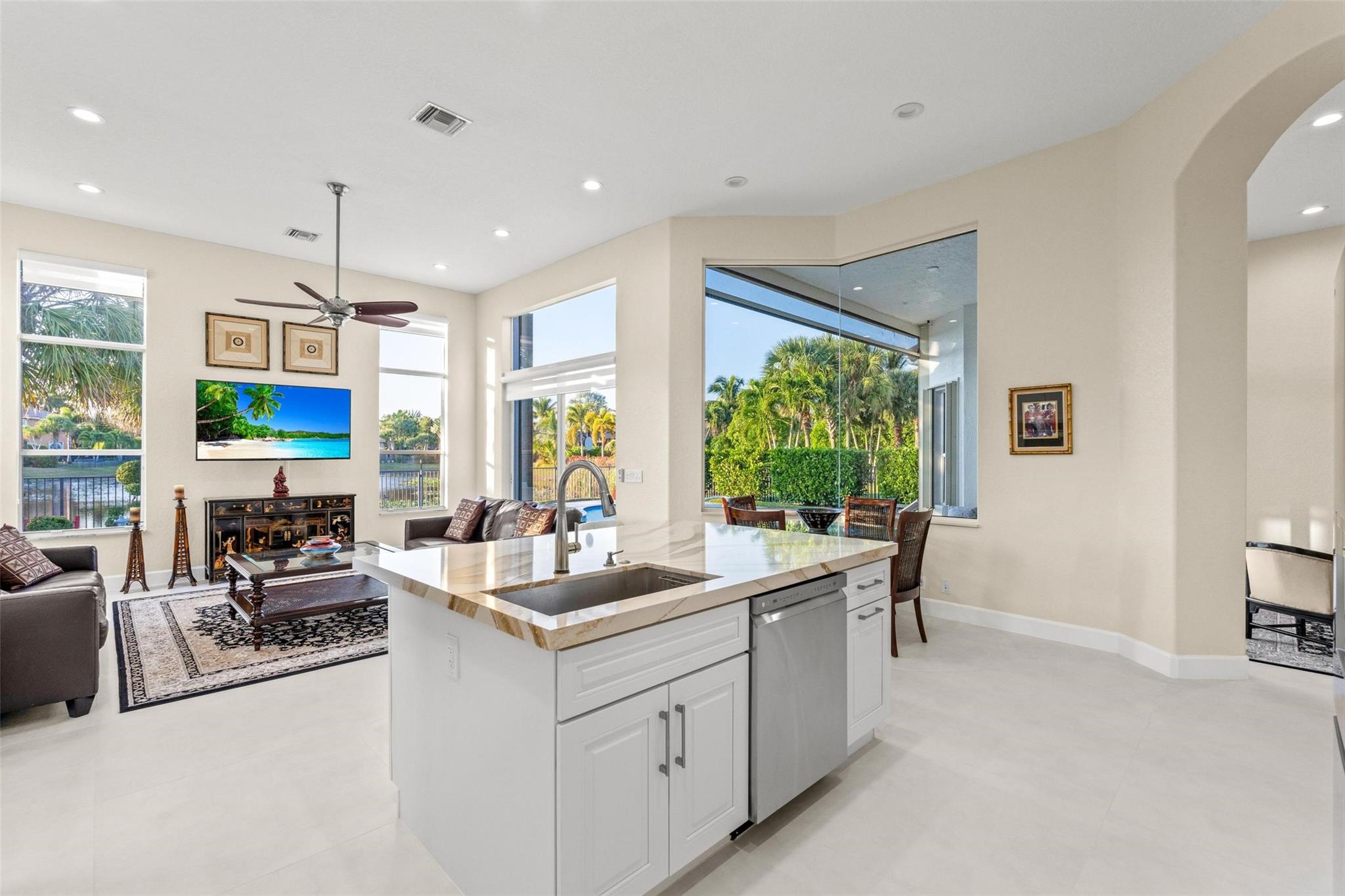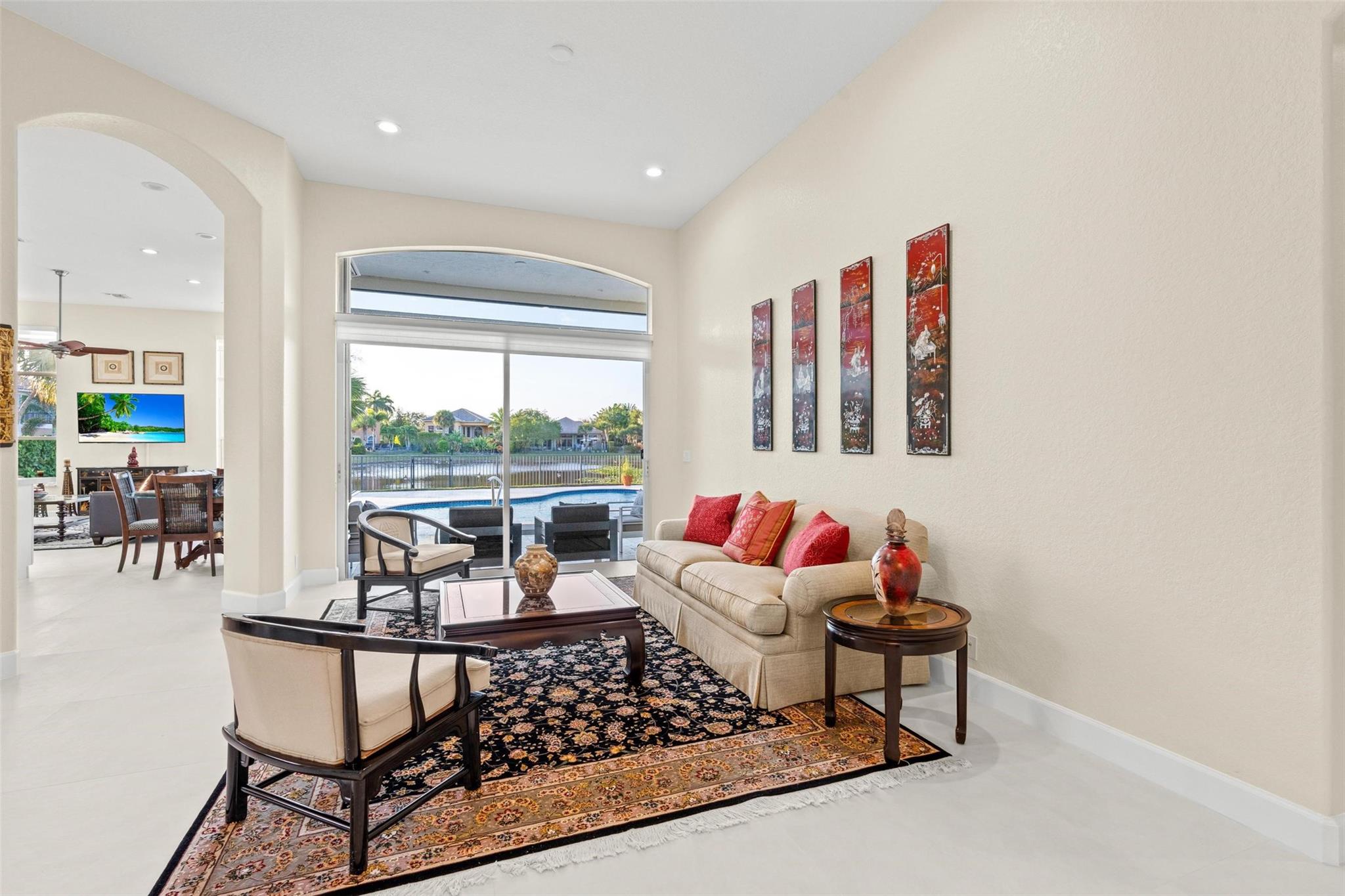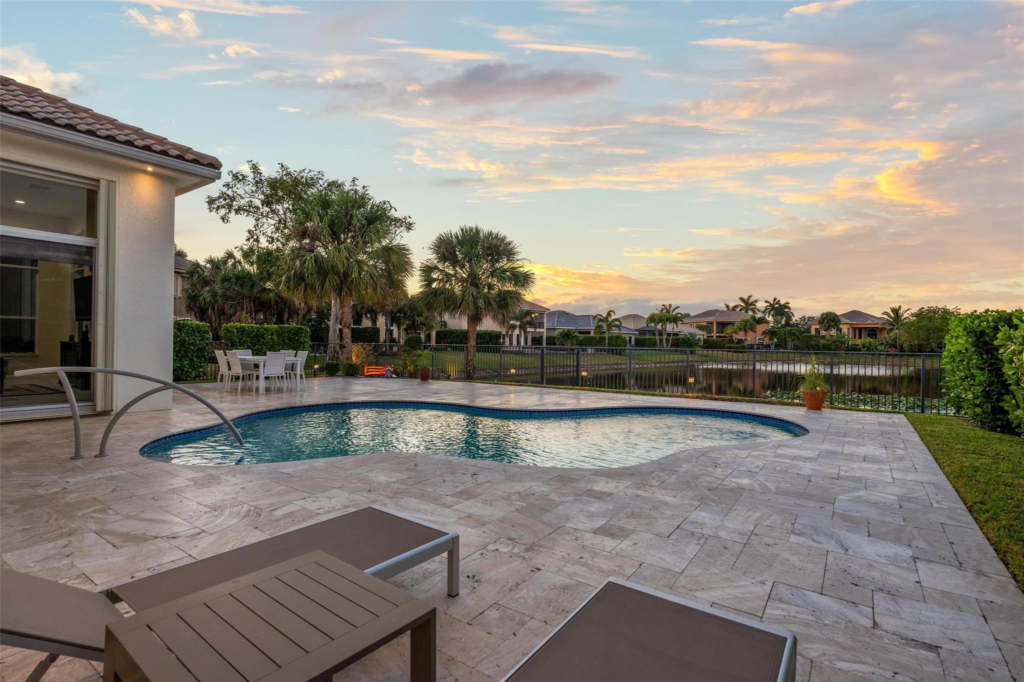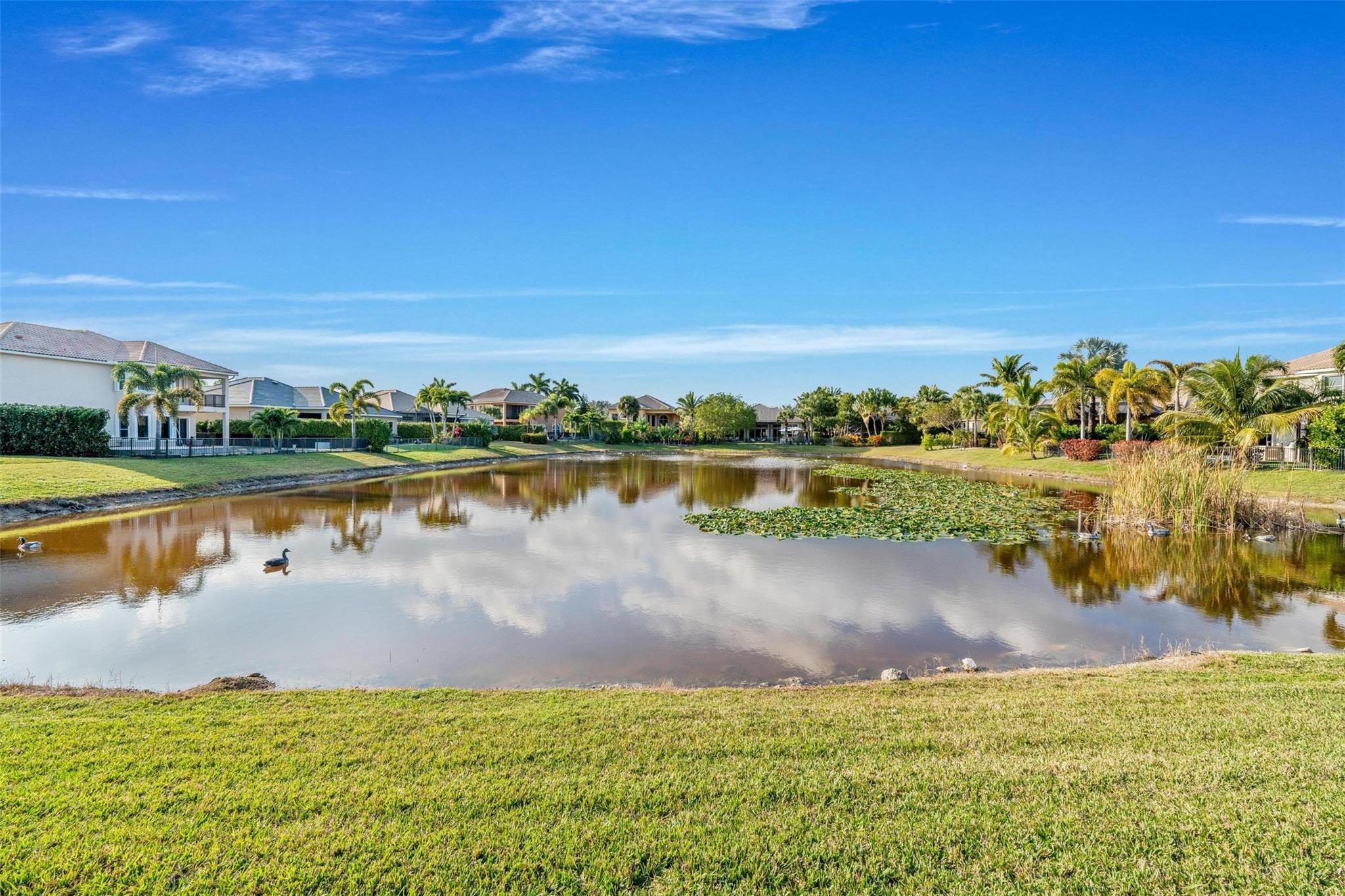 Wow! OVER $200,000 in Updates in Contemporary Meticulous OPEN concept w/3 way split plan/separate Din. Rm. on peaceful WATER Lot. From the circular drive w/Ample parking for 3 cars/Lush Lighted Landscaping to new Expanded Travertine deck surrounding free form pool w/New colored Pool Lights, pool rail/ Retractable screen for Patio ! Accordion Shutters. The 36" White Porcelain tile catches your eye right away Along w/ remodeled CHEFs Kitchen w/New Upscale REF./stainless Appliances w/2" quartz, pullouts, Spice rack, Lights /more. All Baths updated. Primary Bath. includes free standing tub/Beautiful new Shower/pullouts. Custom fitted closets thru-out. New LED lighting,5 fans/ 4 TV's Stay! Newer A/C./NEW water heater. Don't forget New Heron Bay Amenities w/ new pickleball, splash pad/more.