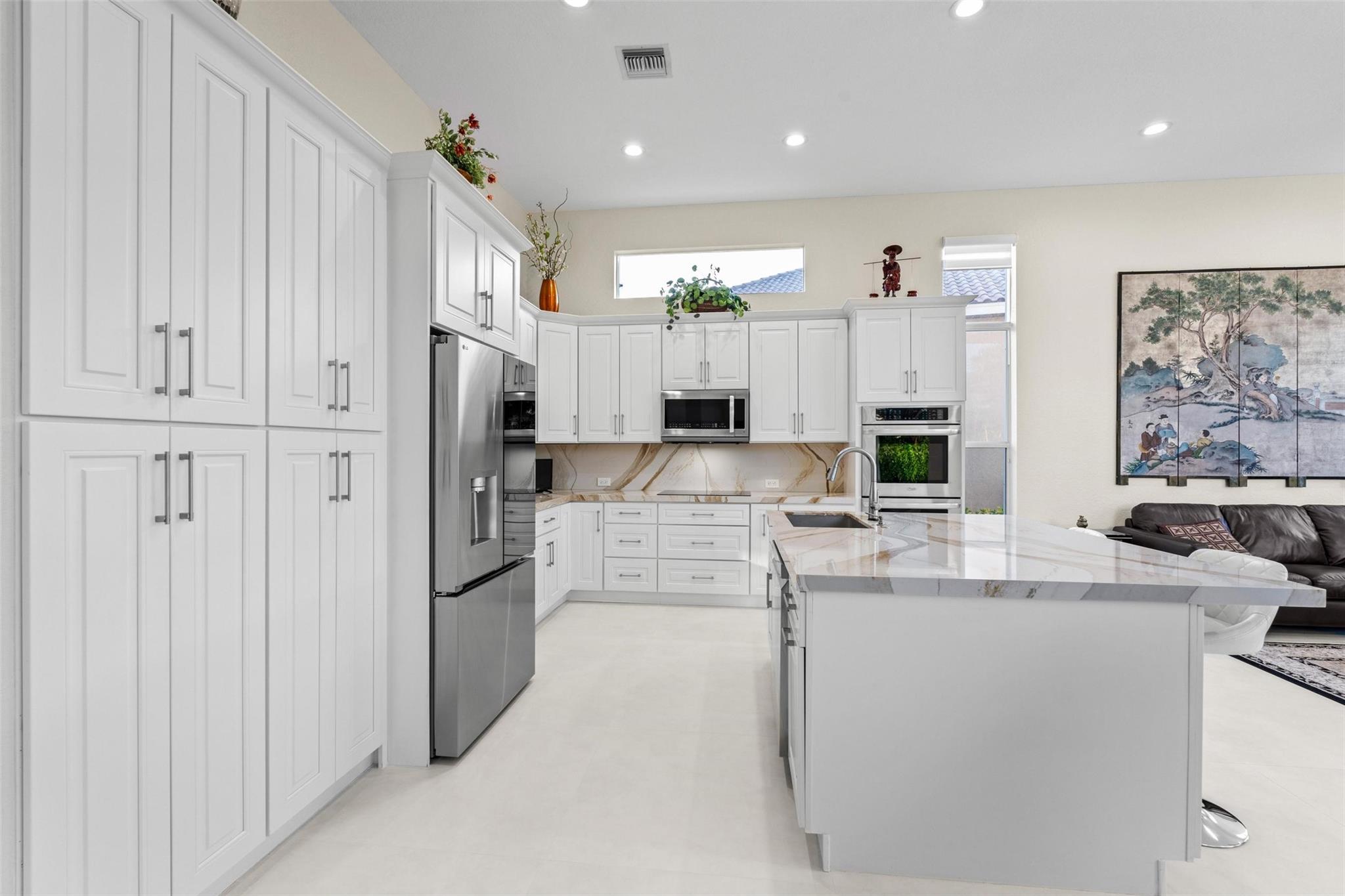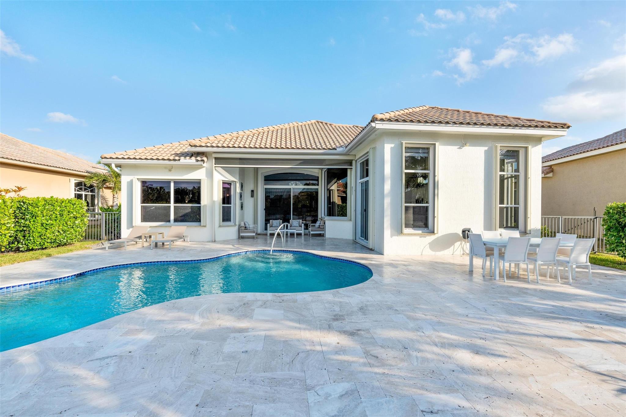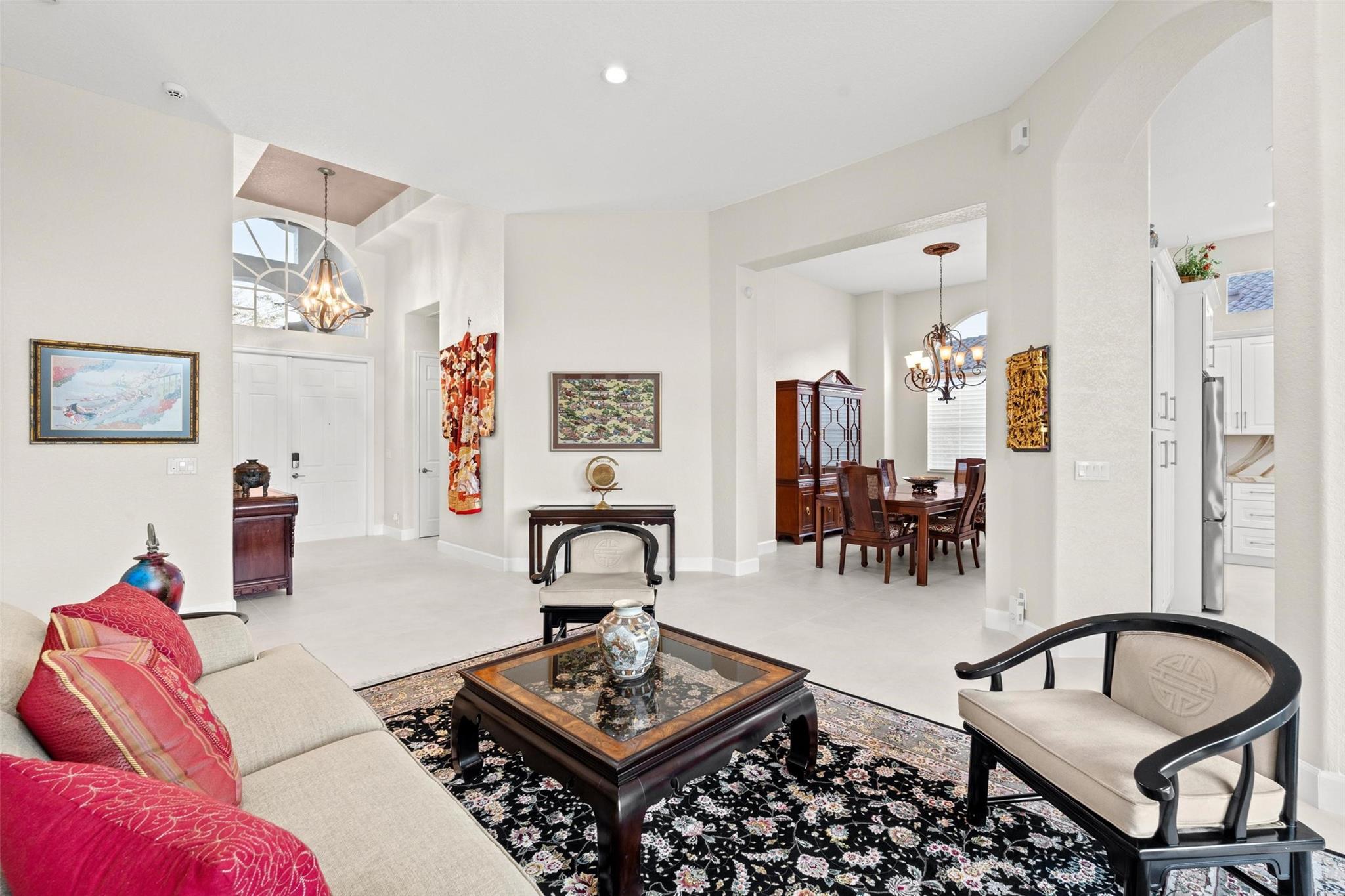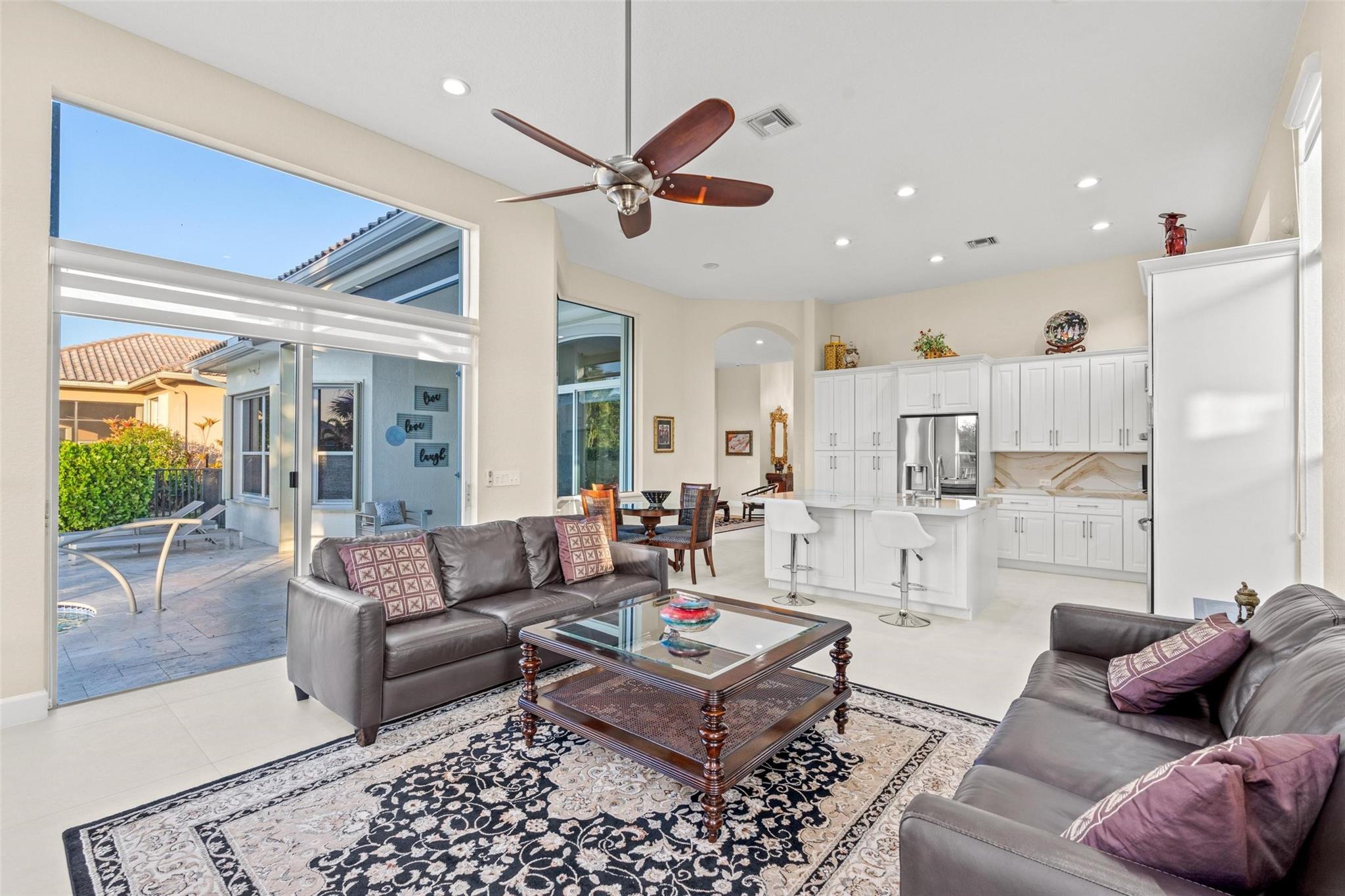 Wow! OVER $200,000 in Updates in Contemporary Meticulous OPEN concept w/3 way split plan/separate Din. Rm. on peaceful WATER Lot. From the circular drive w/Ample parking for 3 cars/Lush Lighted Landscaping to new Expanded Travertine deck surrounding free form pool w/New colored Pool Lights, pool rail/ Retractable screen for Patio ! Accordion Shutters. The 36" White Porcelain tile catches your eye right away Along w/ remodeled CHEFs Kitchen w/New Upscale REF./stainless Appliances w/2" quartz, pullouts, Spice rack, Lights /more. All Baths updated. Primary Bath. includes free standing tub/Beautiful new Shower/pullouts. Custom fitted closets thru-out. New LED lighting,5 fans/ 4 TV's Stay! Newer A/C./NEW water heater. Don't forget New Heron Bay Amenities w/ new pickleball, splash pad/more.