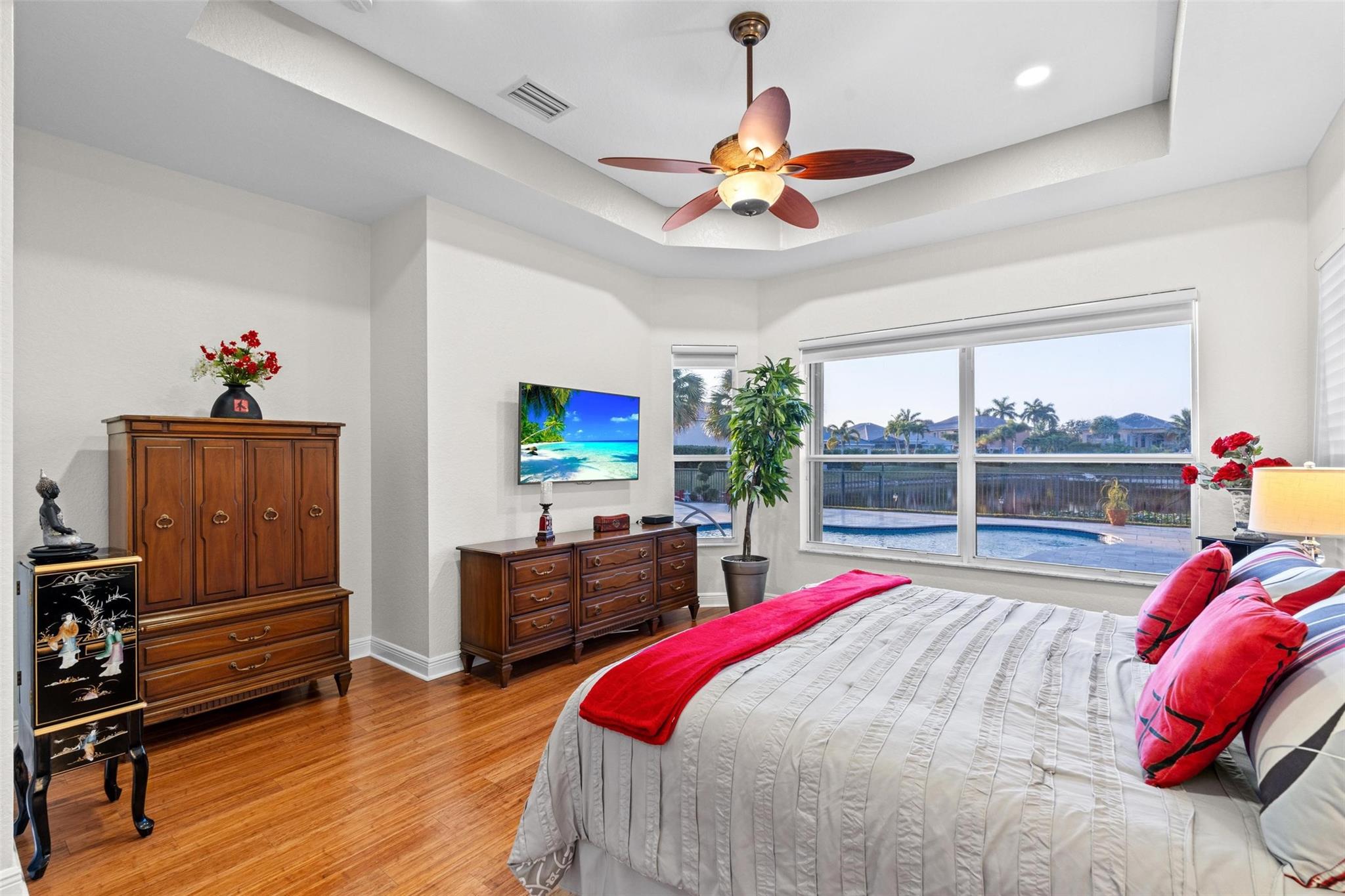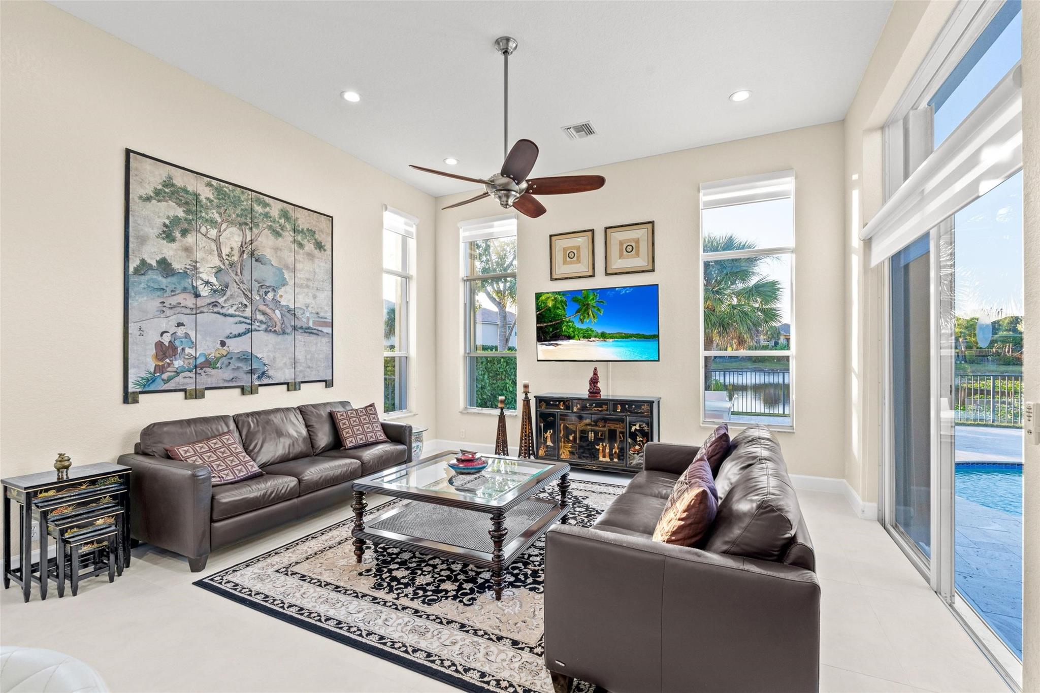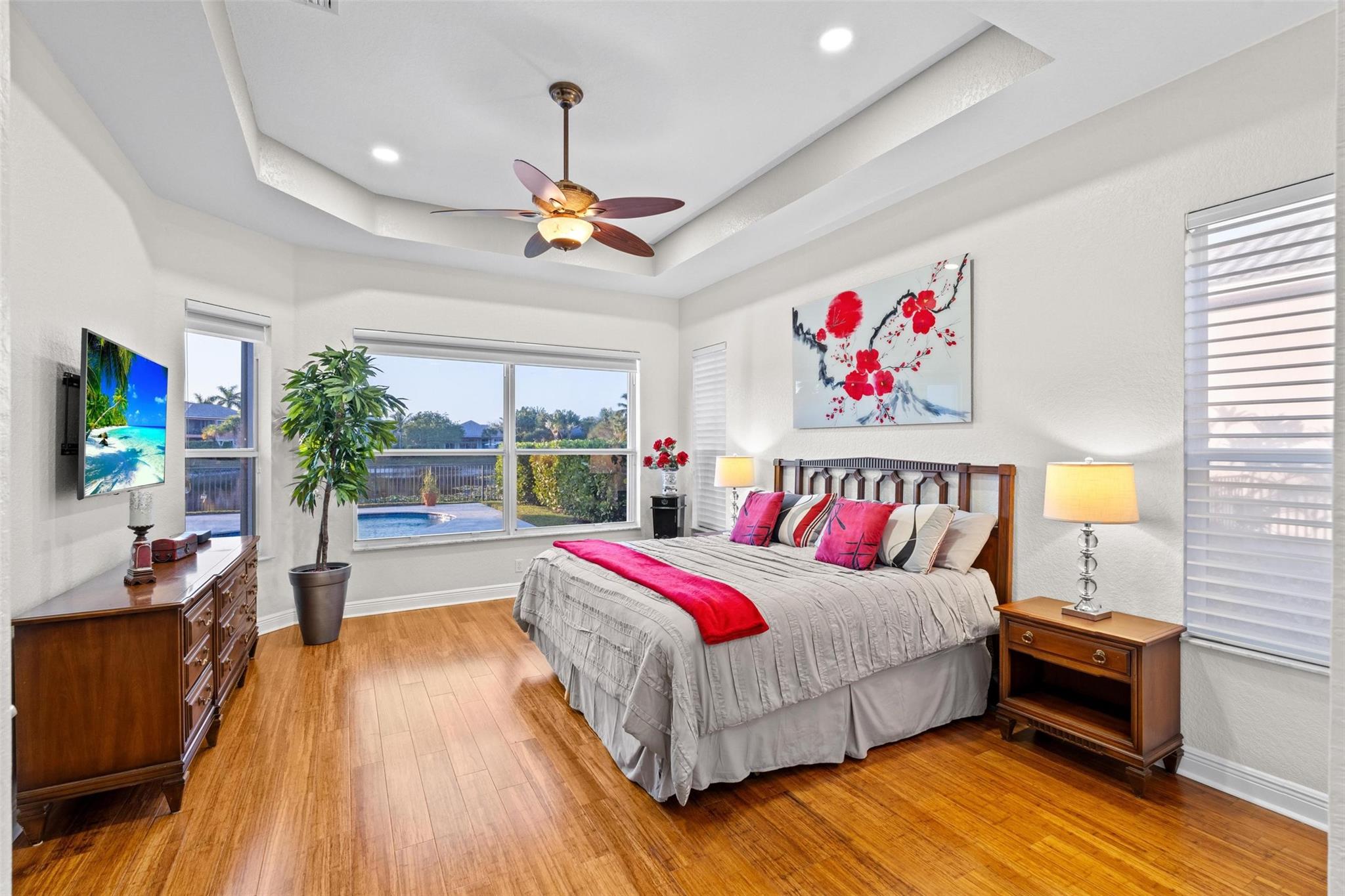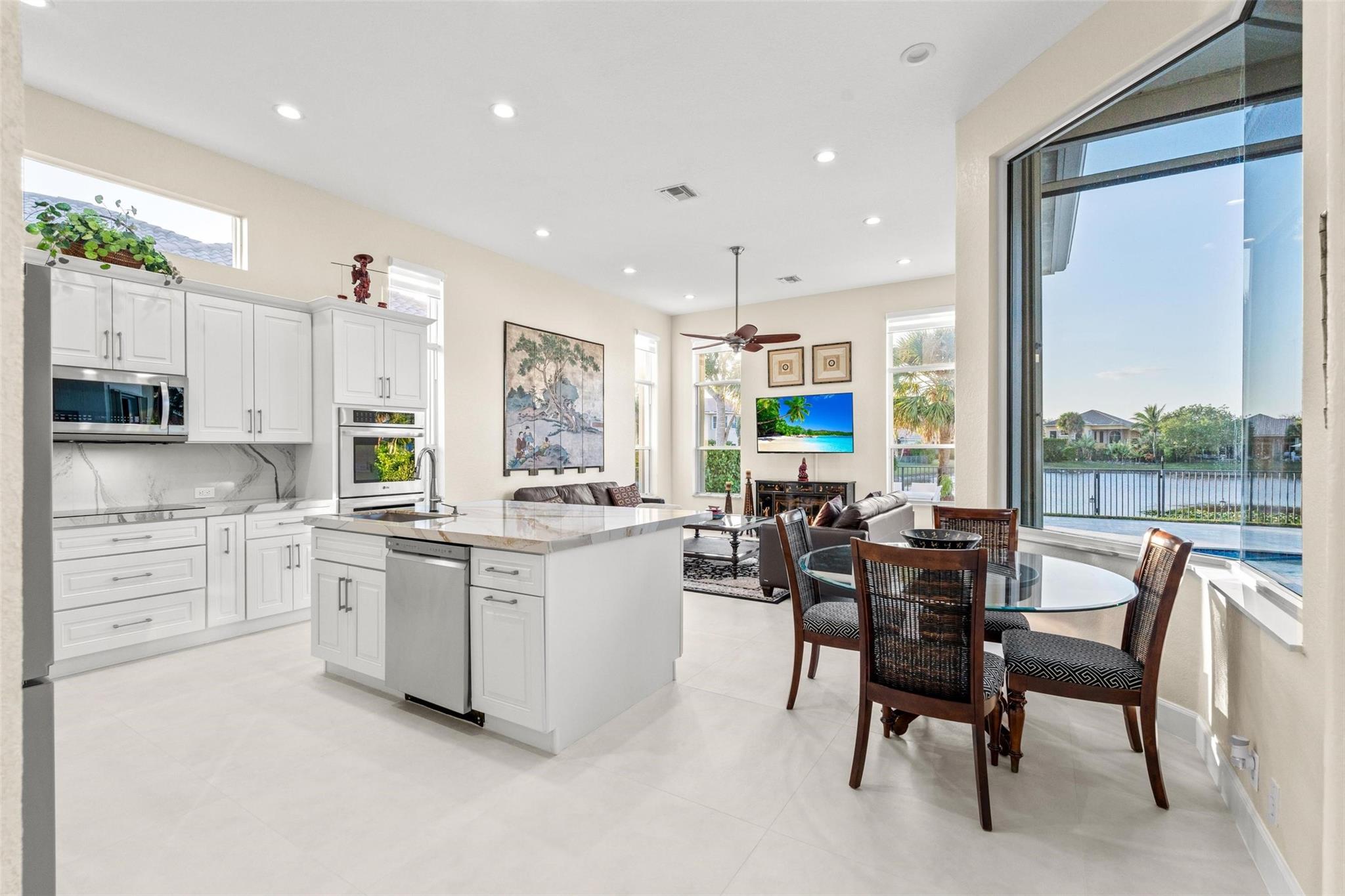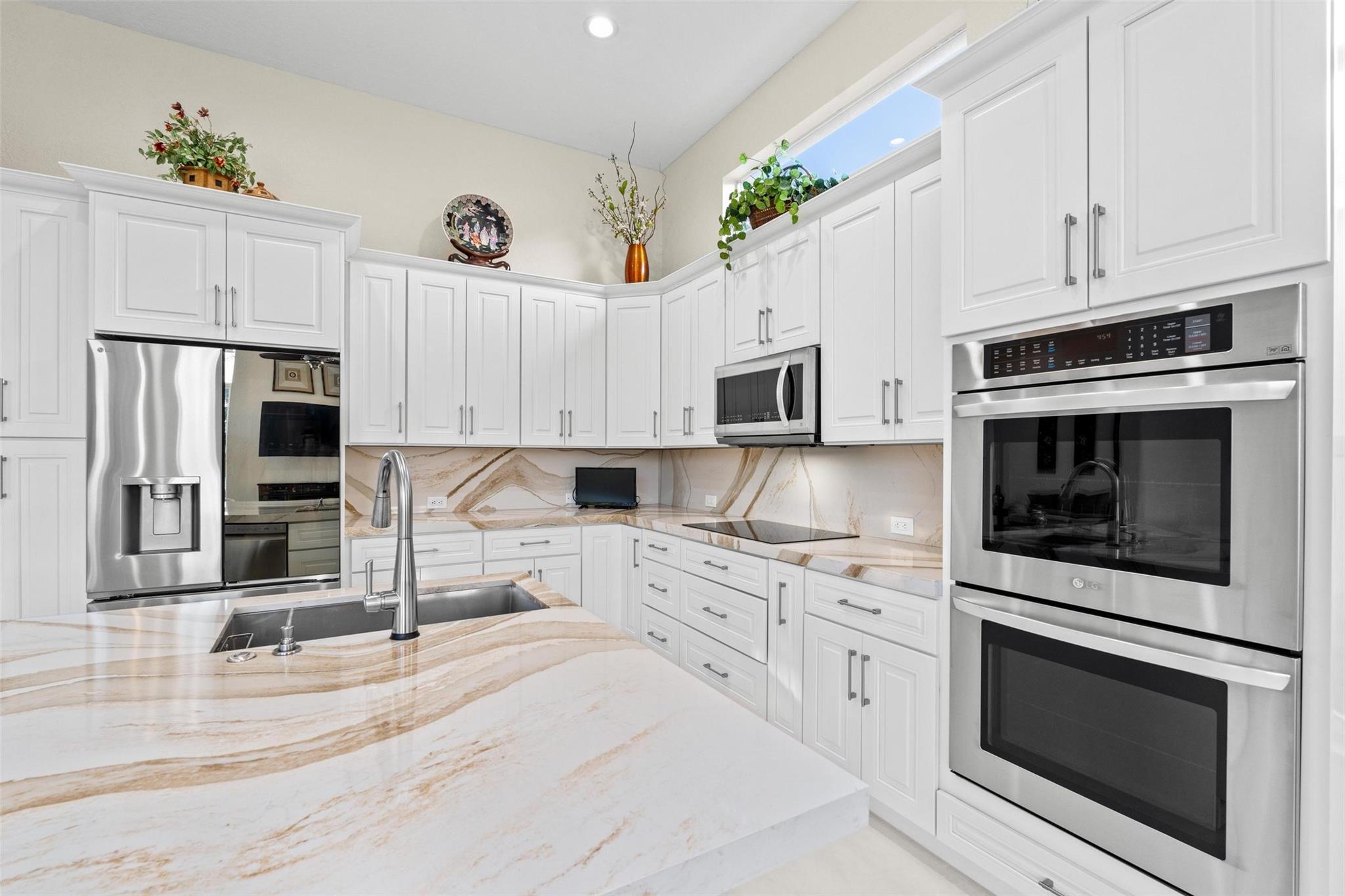 Wow! OVER $200,000 in Updates in Contemporary Meticulous OPEN concept w/3 way split plan/separate Din. Rm. on peaceful WATER Lot. From the circular drive w/Ample parking for 3 cars/Lush Lighted Landscaping to new Expanded Travertine deck surrounding free form pool w/New colored Pool Lights, pool rail/ Retractable screen for Patio ! Accordion Shutters. The 36" White Porcelain tile catches your eye right away Along w/ remodeled CHEFs Kitchen w/New Upscale REF./stainless Appliances w/2" quartz, pullouts, Spice rack, Lights /more. All Baths updated. Primary Bath. includes free standing tub/Beautiful new Shower/pullouts. Custom fitted closets thru-out. New LED lighting,5 fans/ 4 TV's Stay! Newer A/C./NEW water heater. Don't forget New Heron Bay Amenities w/ new pickleball, splash pad/more.