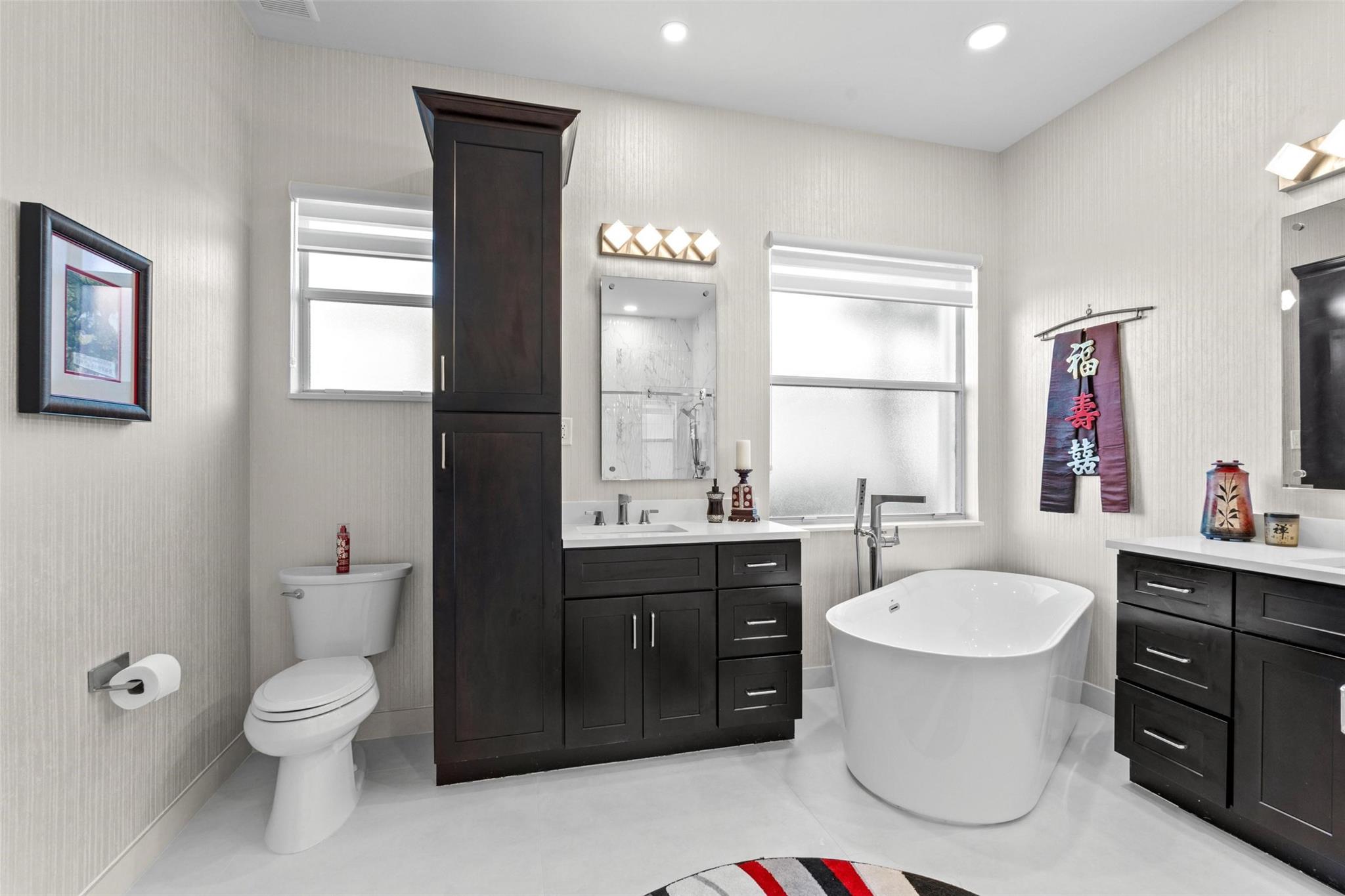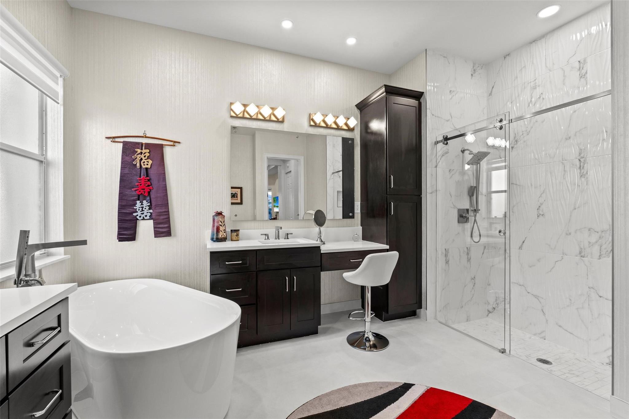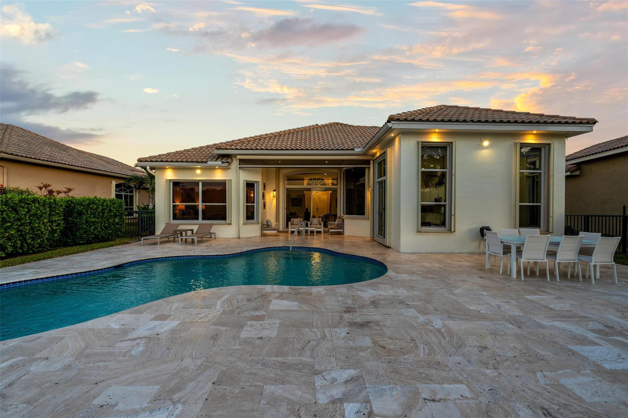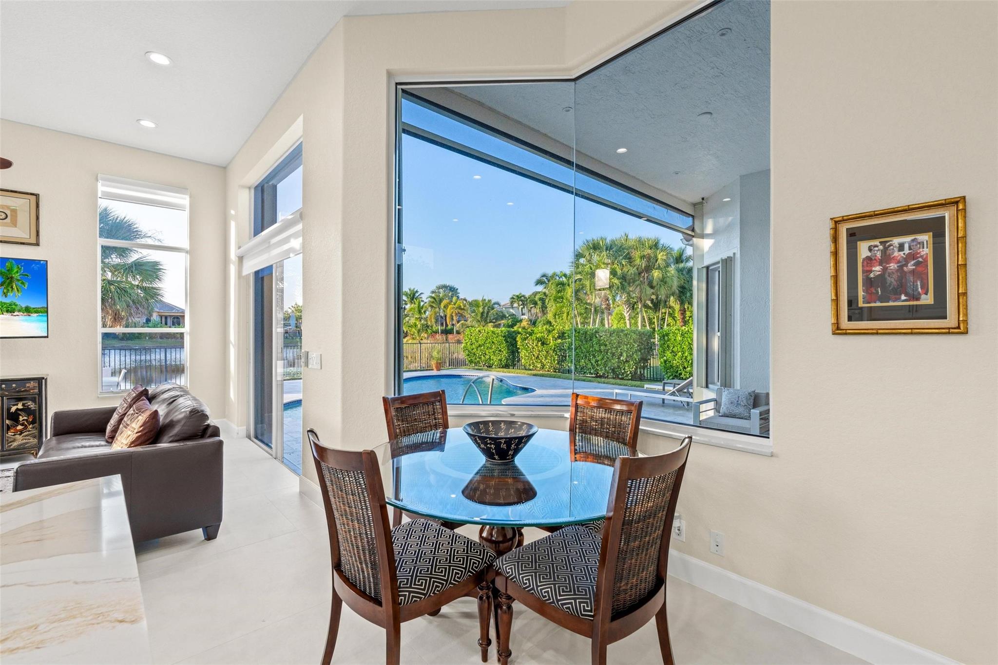 Wow! OVER $200,000 in Updates in Contemporary Meticulous OPEN concept w/3 way split plan/separate Din. Rm. on peaceful WATER Lot. From the circular drive w/Ample parking for 3 cars/Lush Lighted Landscaping to new Expanded Travertine deck surrounding free form pool w/New colored Pool Lights, pool rail/ Retractable screen for Patio ! Accordion Shutters. The 36" White Porcelain tile catches your eye right away Along w/ remodeled CHEFs Kitchen w/New Upscale REF./stainless Appliances w/2" quartz, pullouts, Spice rack, Lights /more. All Baths updated. Primary Bath. includes free standing tub/Beautiful new Shower/pullouts. Custom fitted closets thru-out. New LED lighting,5 fans/ 4 TV's Stay! Newer A/C./NEW water heater. Don't forget New Heron Bay Amenities w/ new pickleball, splash pad/more.