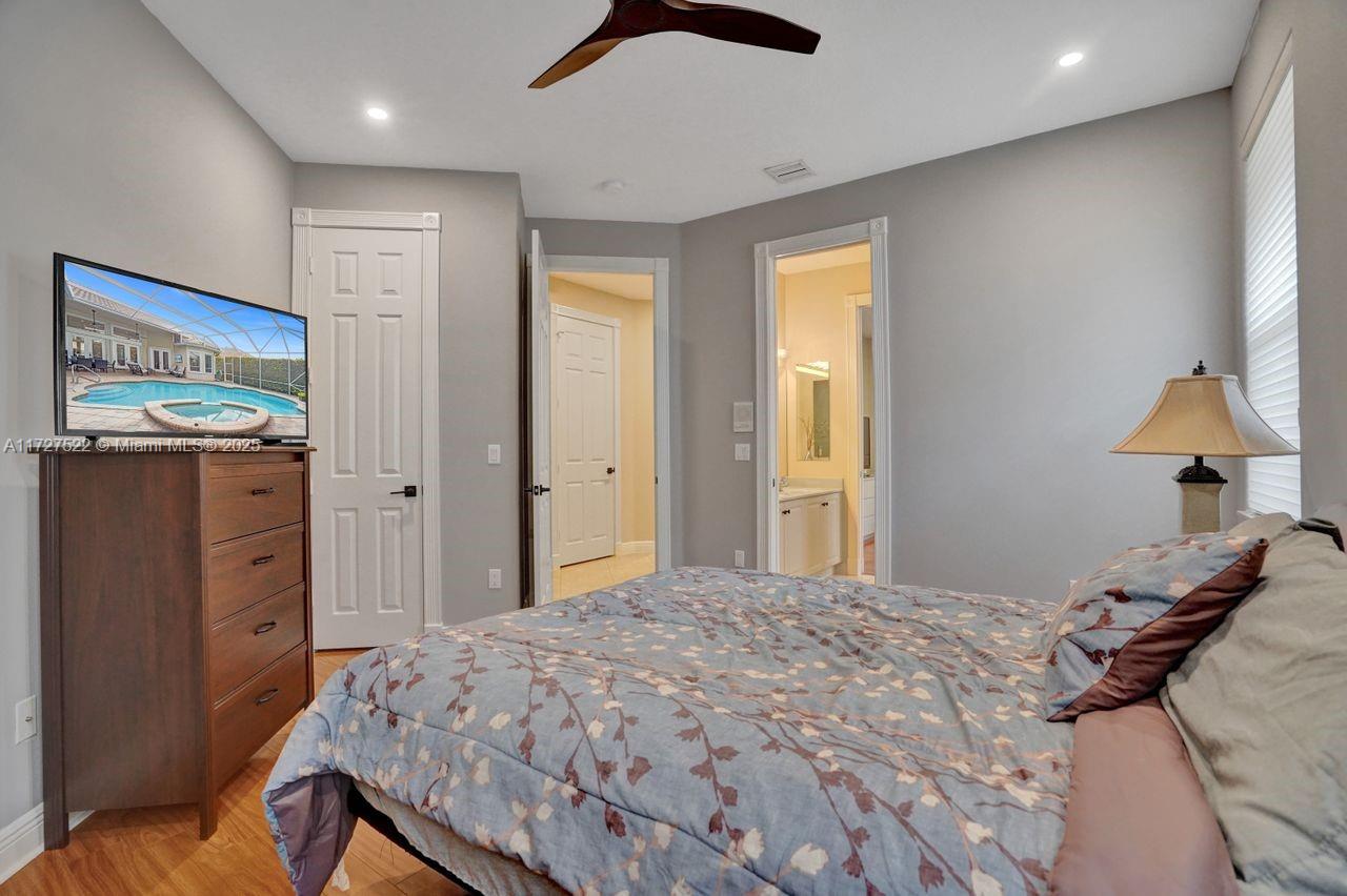 Welcome to your dream home! 5BR/3.5BA, 3,500SF on 1/4-acre lot West Boca's gated Crystal Cove Estates. Triple split floorplan, lots of natural light & resort-style outdoor space. Big kitchen w/island, walk-in pantry & passthru to patio. Spacious primary suite w/cozy seating area, direct access to pool & luxurious ensuite BR w/jacuzzi tub, dual sinks, vanity area & private water closet w/bidet & toilet. 2 walk-in closets. Relax & unwind in pool or spa, watch TV, grill & chill on patio or enjoy expansive yard, ideal for kids or pets to play safely. Additional highlights include 2 newer AC units, 2 water heaters, accordion shutters, LED hi-hats & 3-car garage w/AC. SmartHome features NEST, Ring, lights, pool & sprinklers. Boutique community, home combines privacy comfort & convenience.
