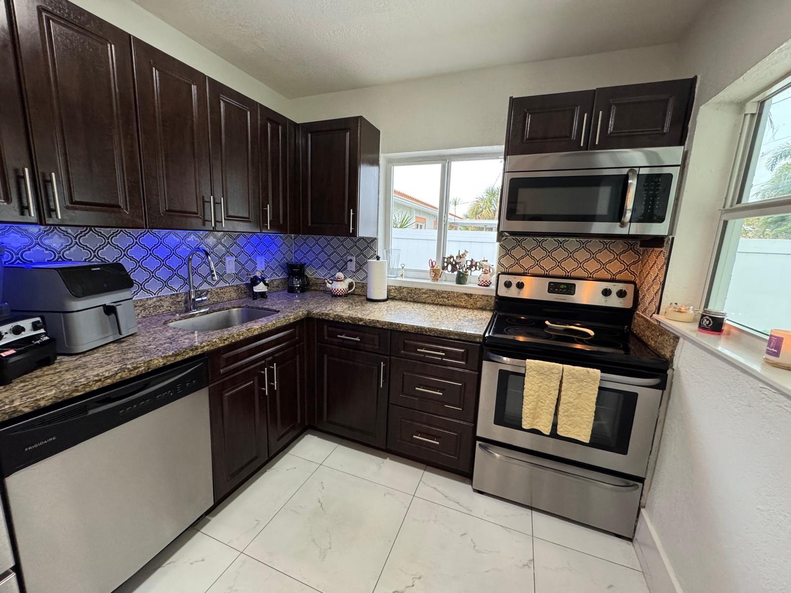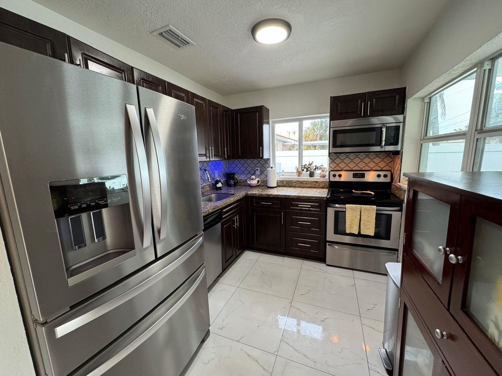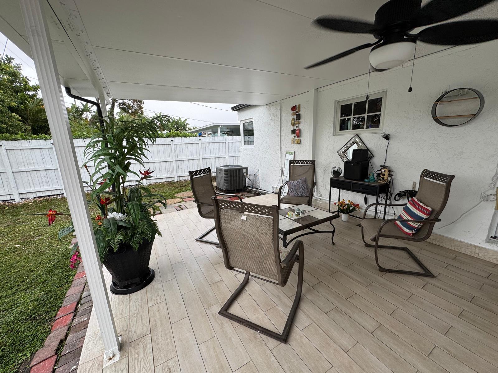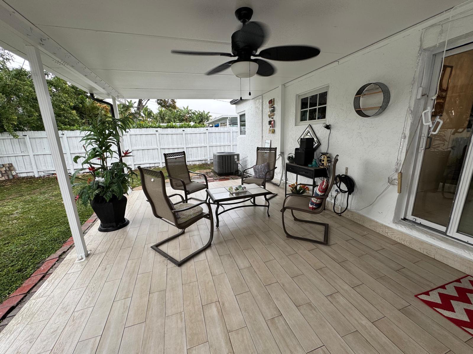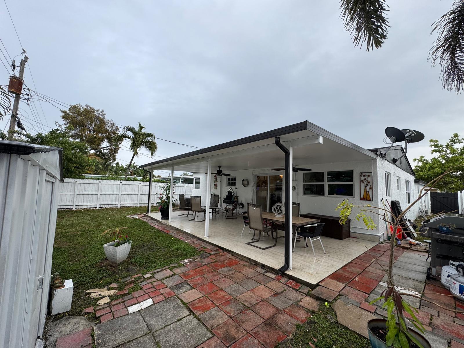 4 BEDS 2 BATHS home in north Andrews Gardens. Lots of updates, tile floors through the entire house, Remodeled kitchen with granite countertops & SS appliances (new refrigerator & new E stove). Remodeled bathrooms about 2 years ago. Plumbing was replaced through the entire house as same as the electrical panels & wires. Central A/C is only 4 years old & the ducts were replace about 2 years ago. Large covered patio with tile floors great for entertaining & or relacing. Freshly painted inside and outside. Carport converted to a room with a large closet, can be used as a 4th bedroom or extra room, fenced back yard. Tented for termites in 2023. Washer & dryer in the shed with extra storage. All impact windows, doors & sliding door to the patio. large front porch. great location !!