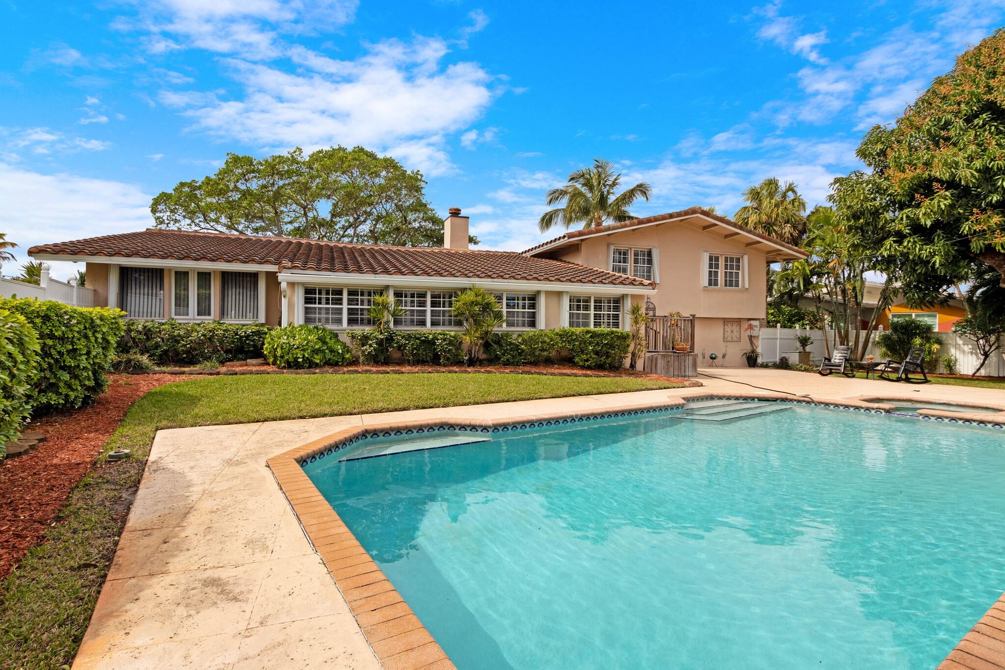 Beautiful tri-level home on an oversized lot over a 1/4 acre in the sought-after Coral Ridge neighborhood. Open floor plan with high exposed beam ceilings, granite kitchen, stainless appliances marble and hardwood floors. The main room has plenty of natural light and warmth with a stone fireplace. Split floor plan with the primary bedroom being just off the living area and the other two bedrooms upstairs. The sparkling blue pool with a privacy fence and two-car garage with extra parking on the side of the house is perfect for a boat or RV. This property sits on a ridge and is not in a flood zone. A great home and school district.