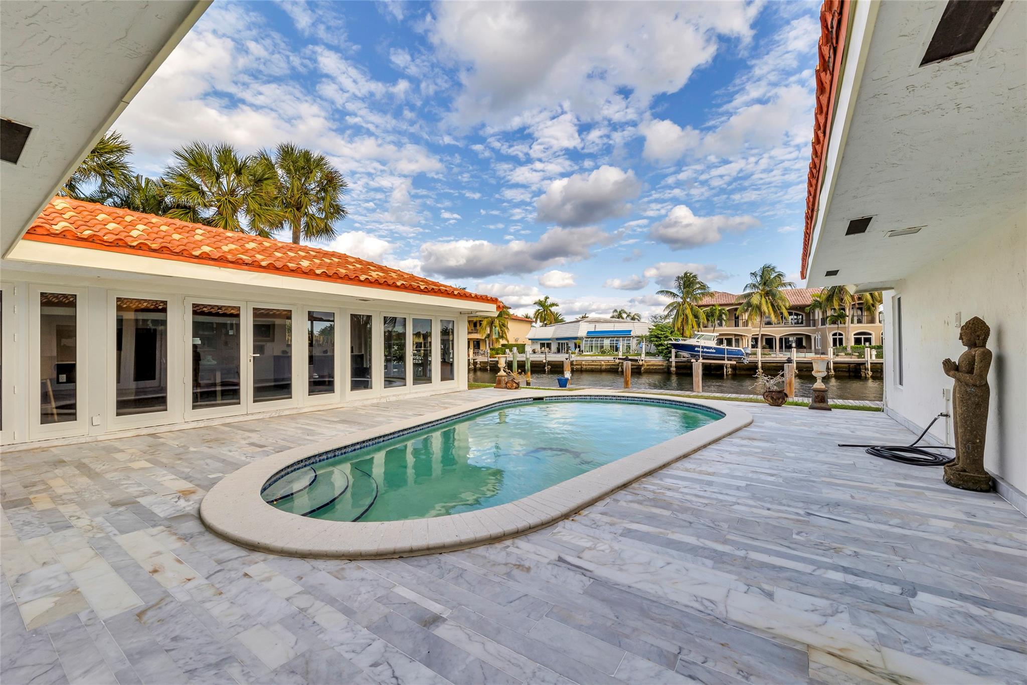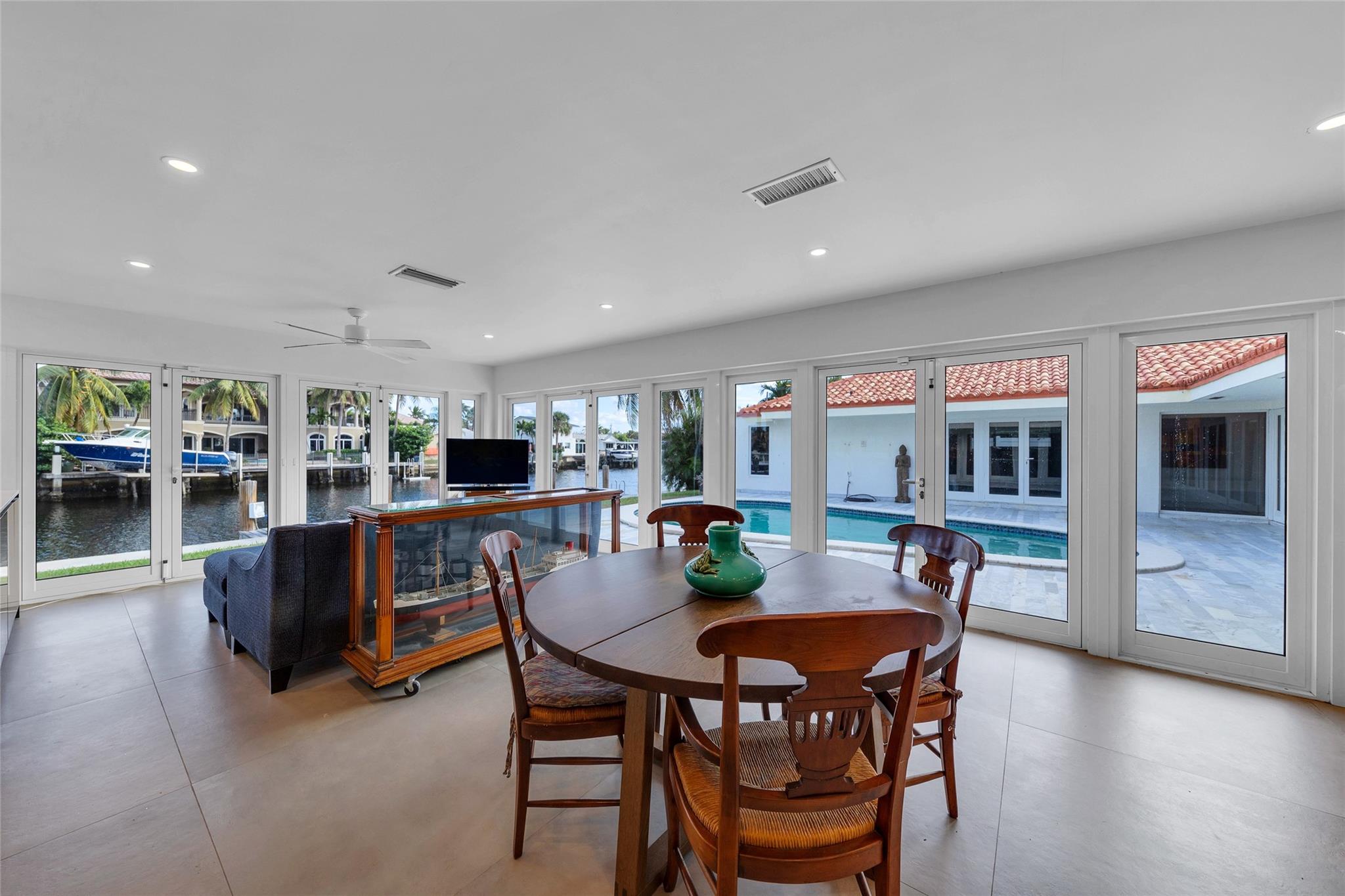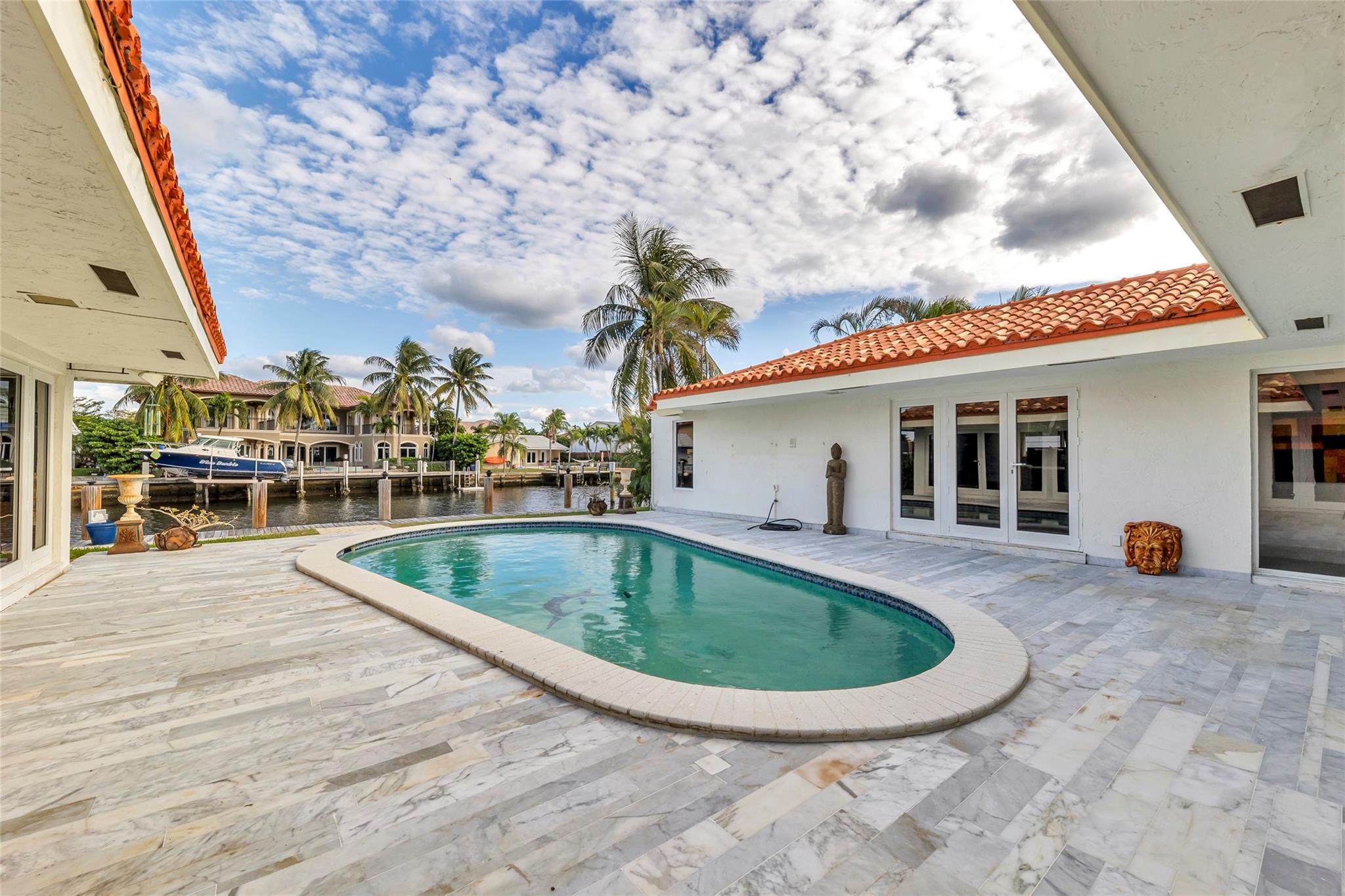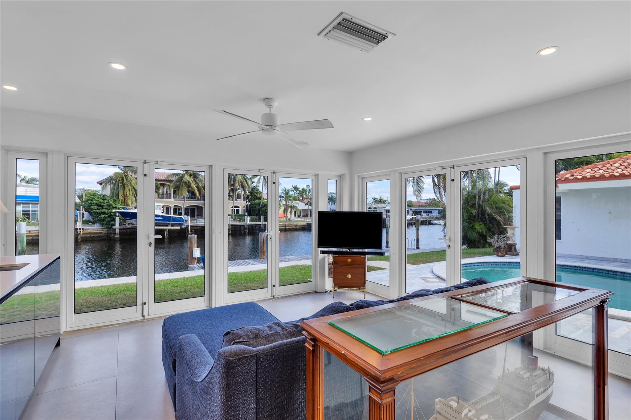 DEEP WATER ACCESS TO THE INTRACOASTAL WITH NO FIXED BRIDGES AND 85' ON THE WATER! Light and bright, with walls and walls of impact glass doors overlooking the pool, the dock and the waterway. Spacious and open, at over 2,400 sf, this elegant home offers three bedrooms and three full baths. New oversized tile flooring throughout, recessed lighting, newly appointed kitchen area with Italkraft cabinets, and water and pool views from virtually every room in the house. Some finishing touches needed to complete. Remarkable opportunity on a very special private canal called Bird's Bay, just around the waterway to the intracoastal! Outstaning wall of glass water views!