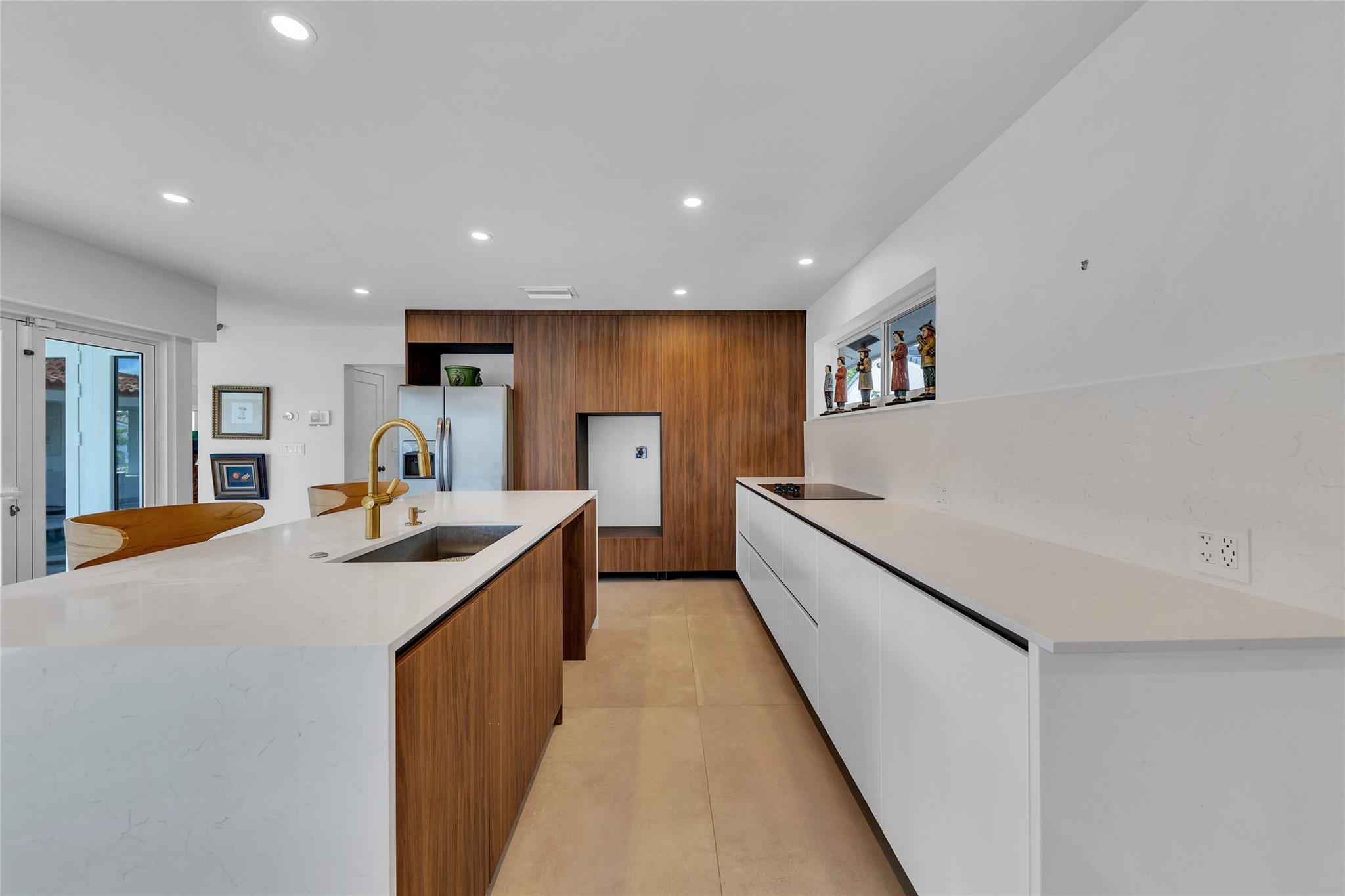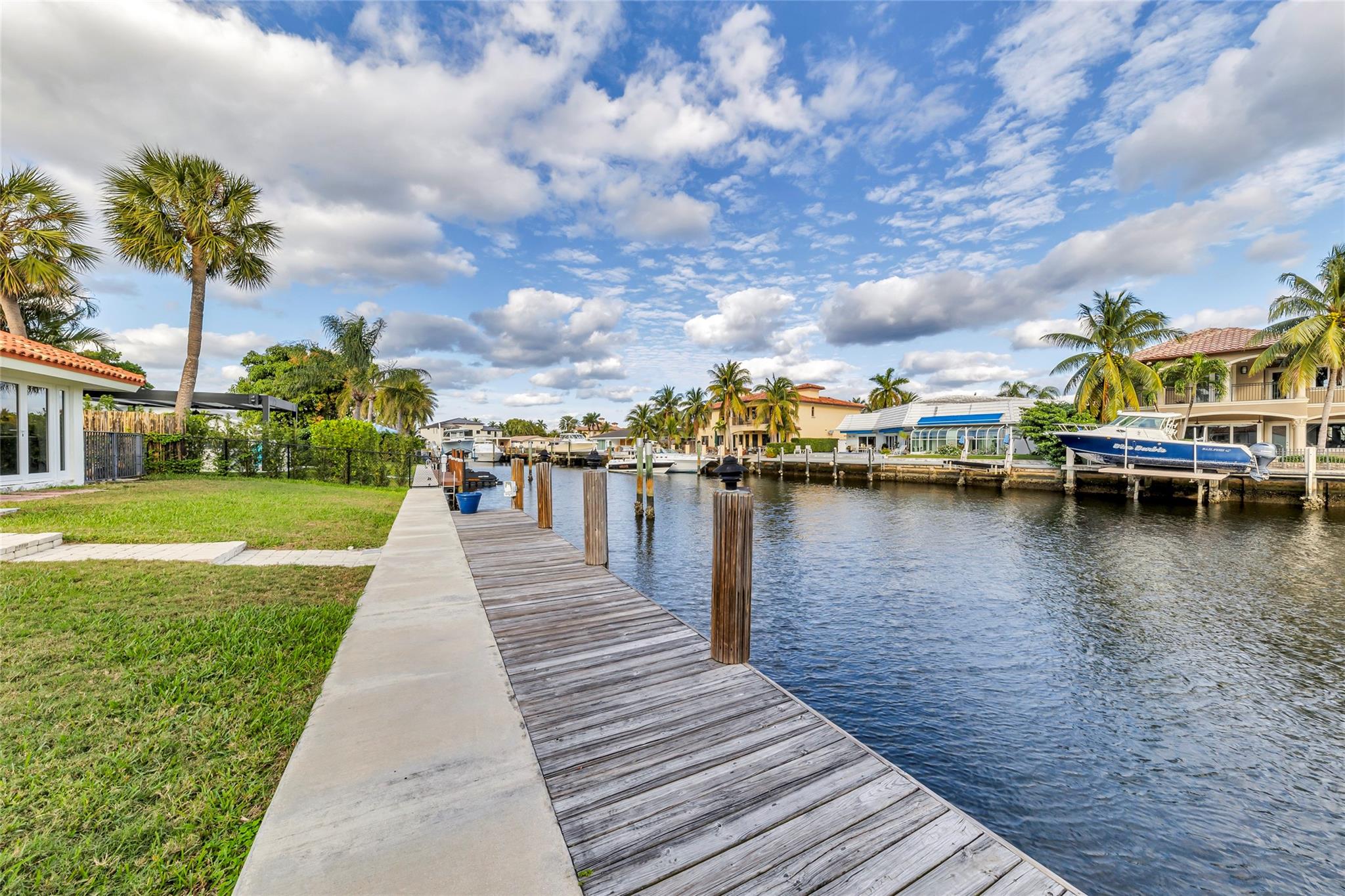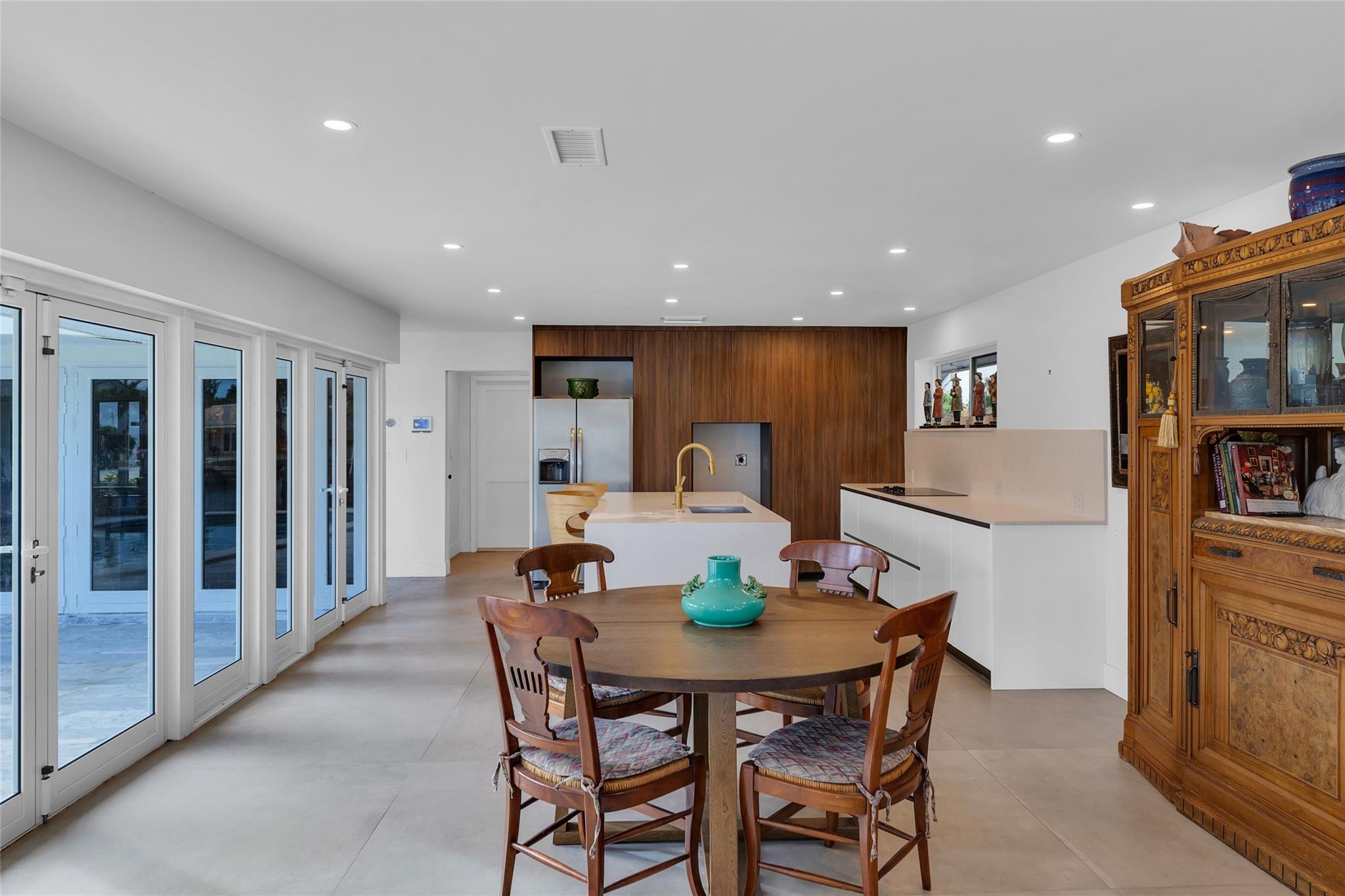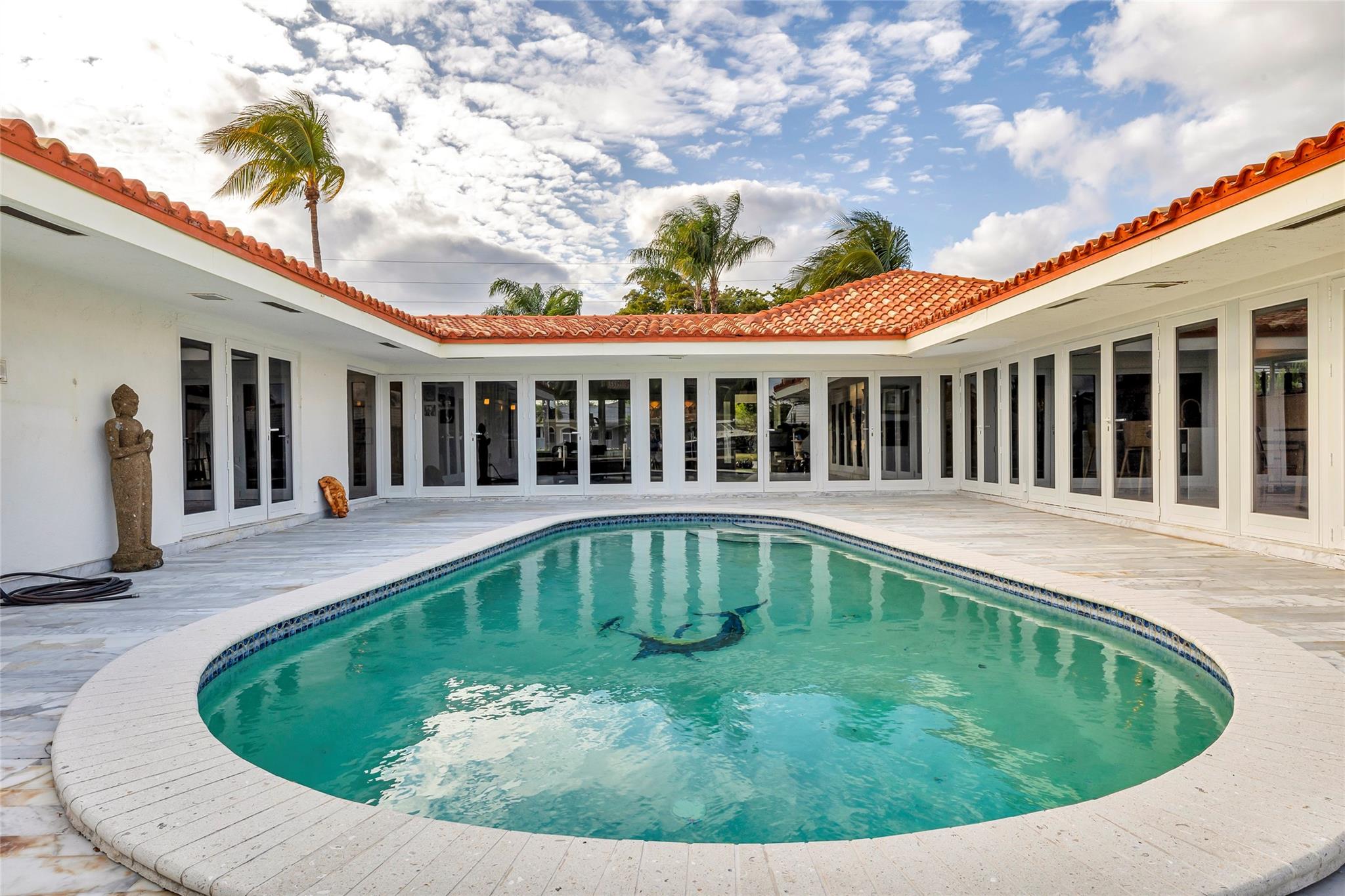 DEEP WATER ACCESS TO THE INTRACOASTAL WITH NO FIXED BRIDGES AND 85' ON THE WATER! Light and bright, with walls and walls of impact glass doors overlooking the pool, the dock and the waterway. Spacious and open, at over 2,400 sf, this elegant home offers three bedrooms and three full baths. New oversized tile flooring throughout, recessed lighting, newly appointed kitchen area with Italkraft cabinets, and water and pool views from virtually every room in the house. Some finishing touches needed to complete. Remarkable opportunity on a very special private canal called Bird's Bay, just around the waterway to the intracoastal! Outstaning wall of glass water views!