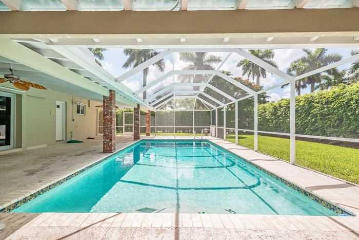 Lovely updated Florida style 4 bedroom, 3.5 bath home on corner lot in the heart of Pinecrest's premier school district. A wonderful family home for entertaining with a floor plan that flows easily from spacious living/dining room to beautiful kitchen to fabulous family room to large covered pool/patio. Enhanced features include indoor laundry room, built in BBQ, impact windows and glass doors, and travertine and hardwood flooring. A must see!