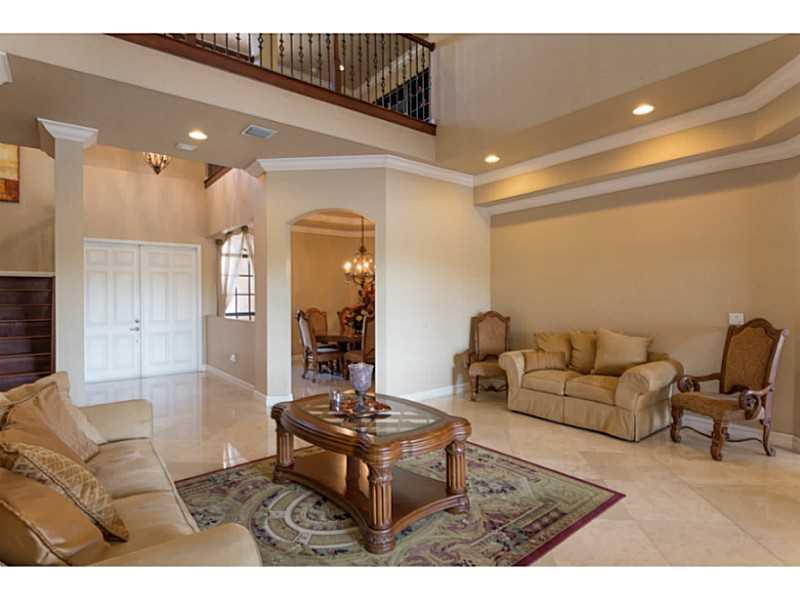 OVERSIZED LOT! RARELY AVAILABLE LE VERONA MODEL HOME WITH A SALT WATER POOL SYSTEM OFFERING A HIGHLY DESIRABLE OPEN FLOOR PLAN WITH 5 BEDROOMS & 4.5 BATHS. THE HOME FEATURES A STATE OF THE ART KITCHEN WITH DOUBLE OVENS, DIAGONAL MARBLE & HAND SCRAPED WOOD FLOORS, 22' CEILINGS, CROWN MOLDING, IMPACT GLASS, JACUZZI TUB IN THE OVERSIZED MASTER BATH, 3 A/C UNITS & 3 CAR GARAGE. A+ RATED SCHOOOLS, MINUTES FROM MAJOR HIGHWAYS.