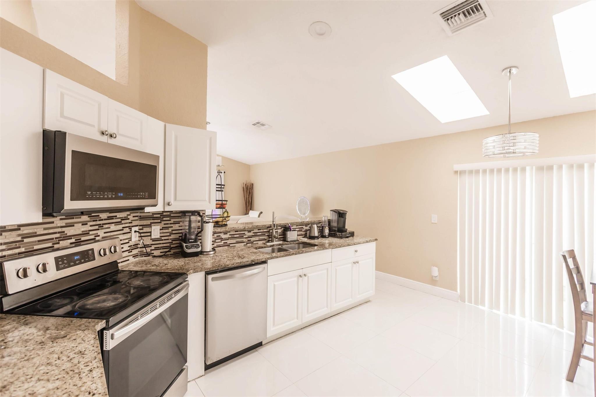 Come find this gem and fall in love! Brand new air conditioning handler and air conditioning unit, brand new dishwasher, brand new hot-water heater, brand new stove, Hurricane impact windows, updated kitchen with stainless steel appliances, roof replaced in 2009, new fence, new tiles, hardwood floors in bedrooms, new light fixtures, sky lights for natural brightness and recessed lighting throughout. This home is perfect for entertaining and has a spacious backyard for all your fun. Not to mention low HOA fees! True pride of ownership shown here.
