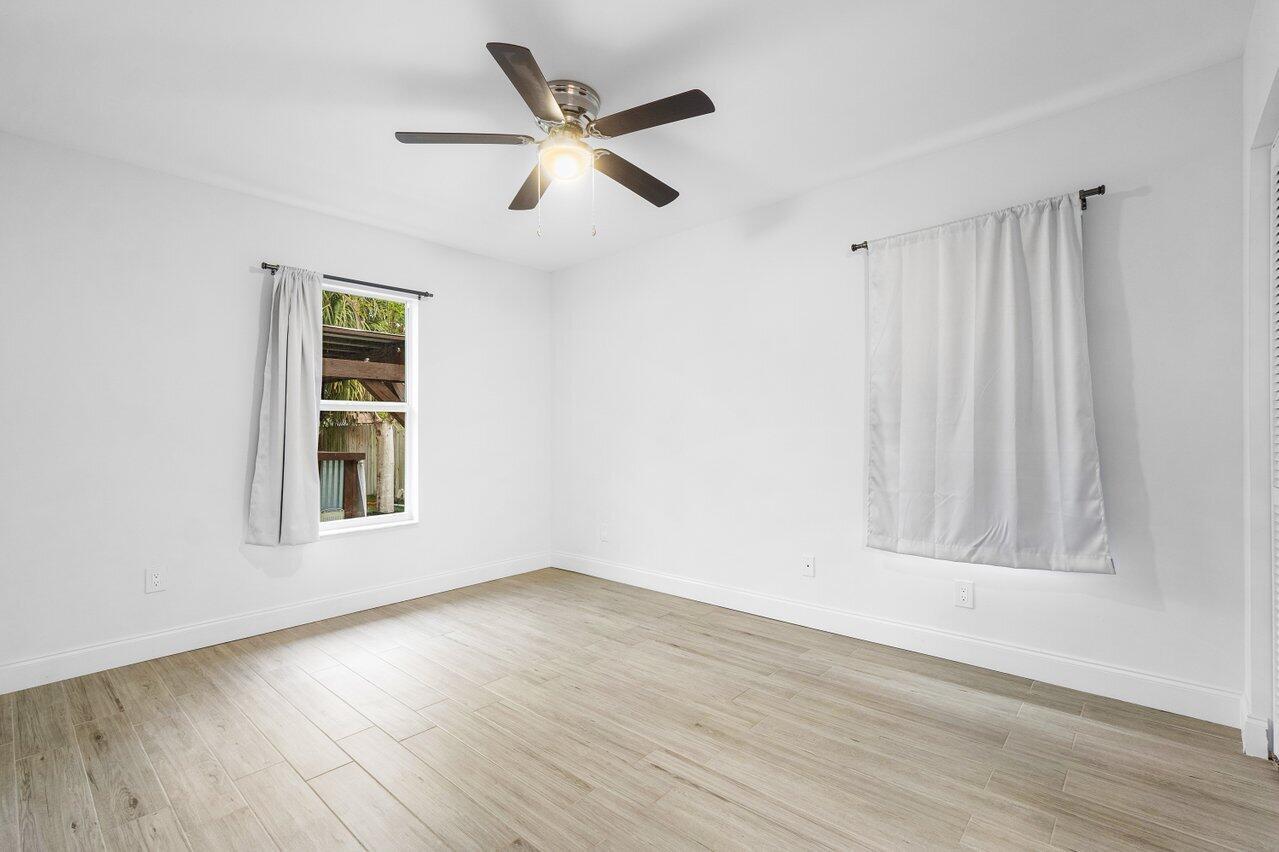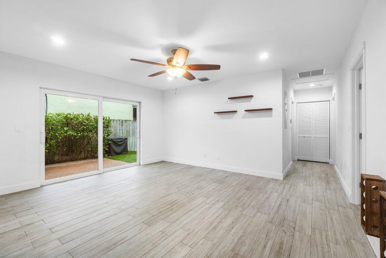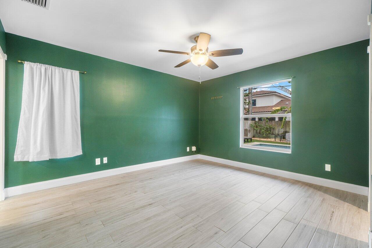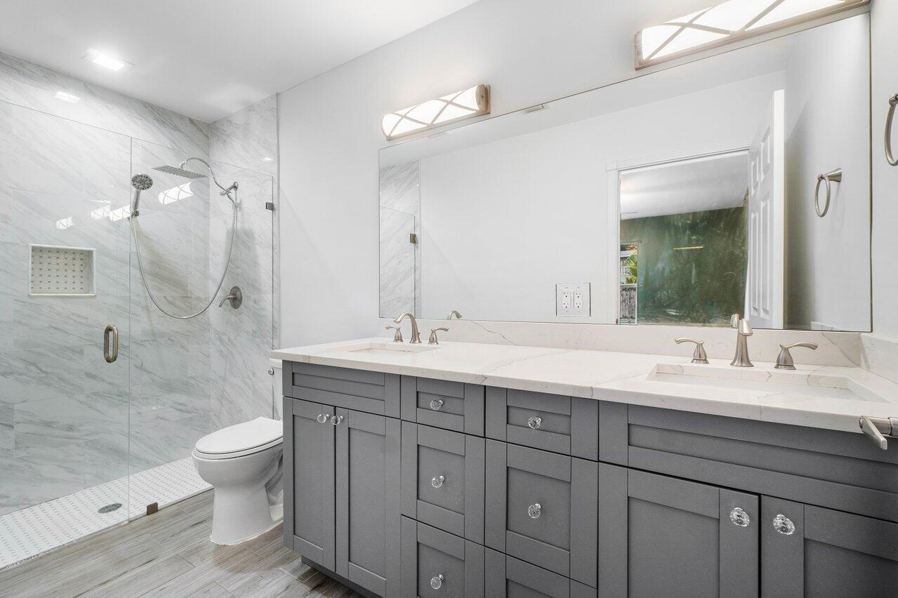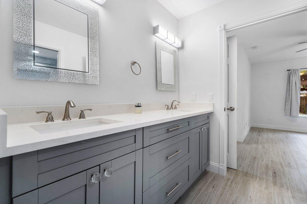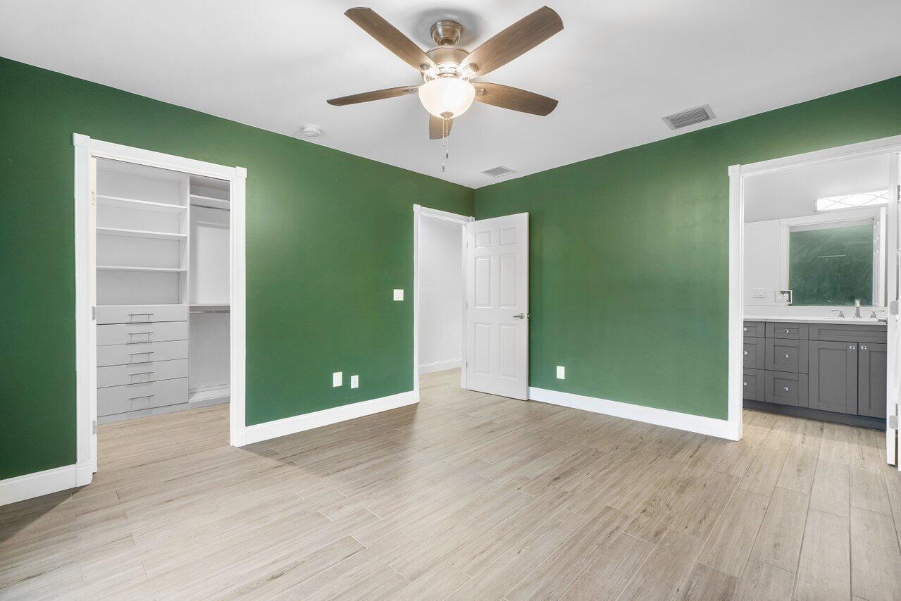 This Pineapple Park home is rare 2020 construction in a historic neighborhood walking distance from Grandview Market, the Kravis Center, Downtown West Palm Beach, and Howard Park. All windows and doors are hurricane impact, counters are white quartz, and floors are ceramic tile. The primary bedroom has built-in California closets. The backyard is fully turfed with a pool, marble deck, pergola, outdoor bar and entertaining area, electric hook ups, gas fire place, and planters. The front yard is xeriscaped with an agave and cactus garden for low outdoor maintenance and water usage. A rainbird irrigation system is in place with capped lines. Eco-friendly features like a rainwater collection system, composting unit, and EV car charger make this a unique modern home in a historic neighborhood.