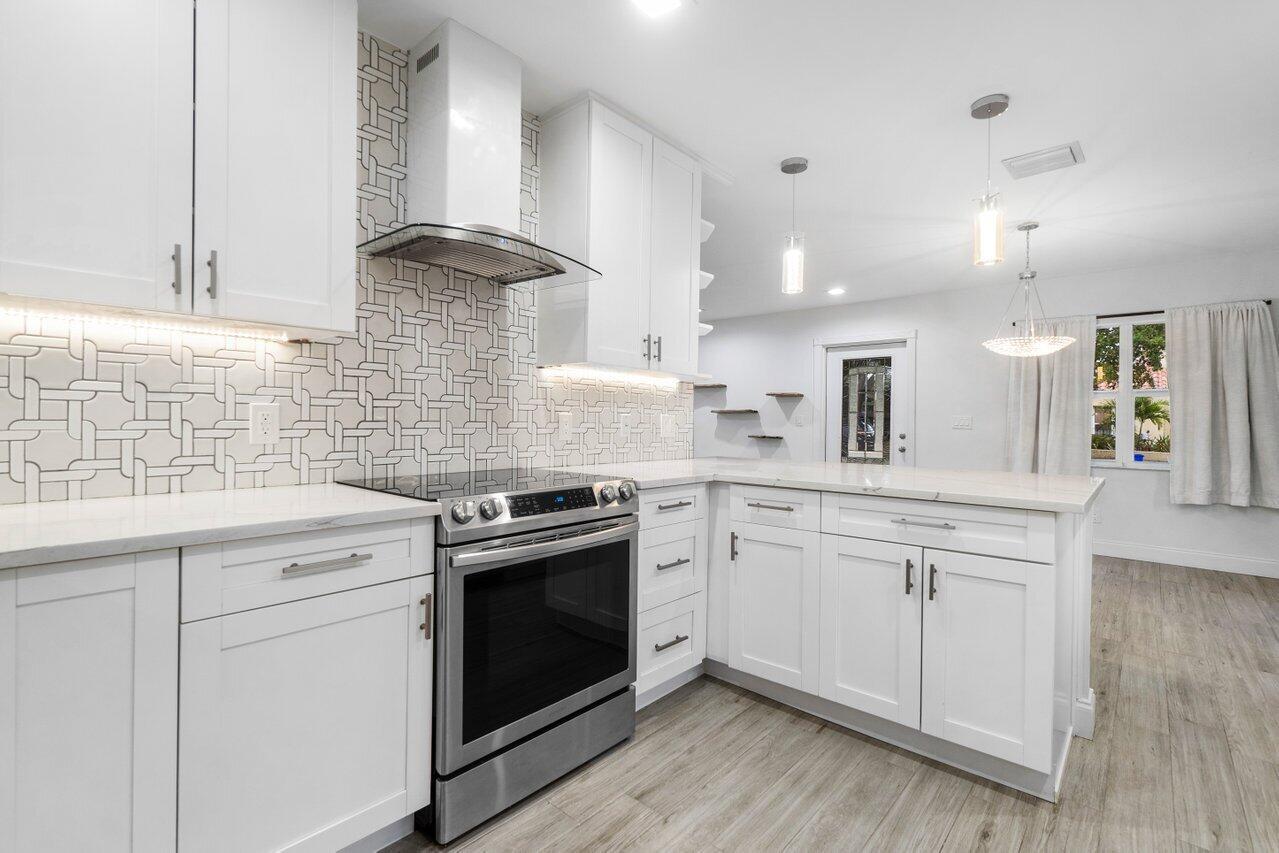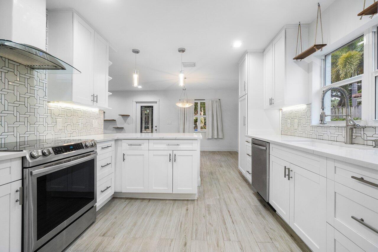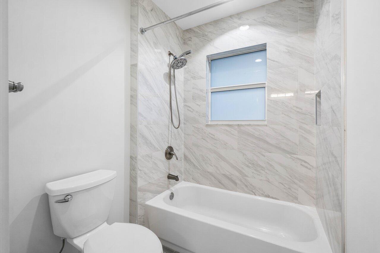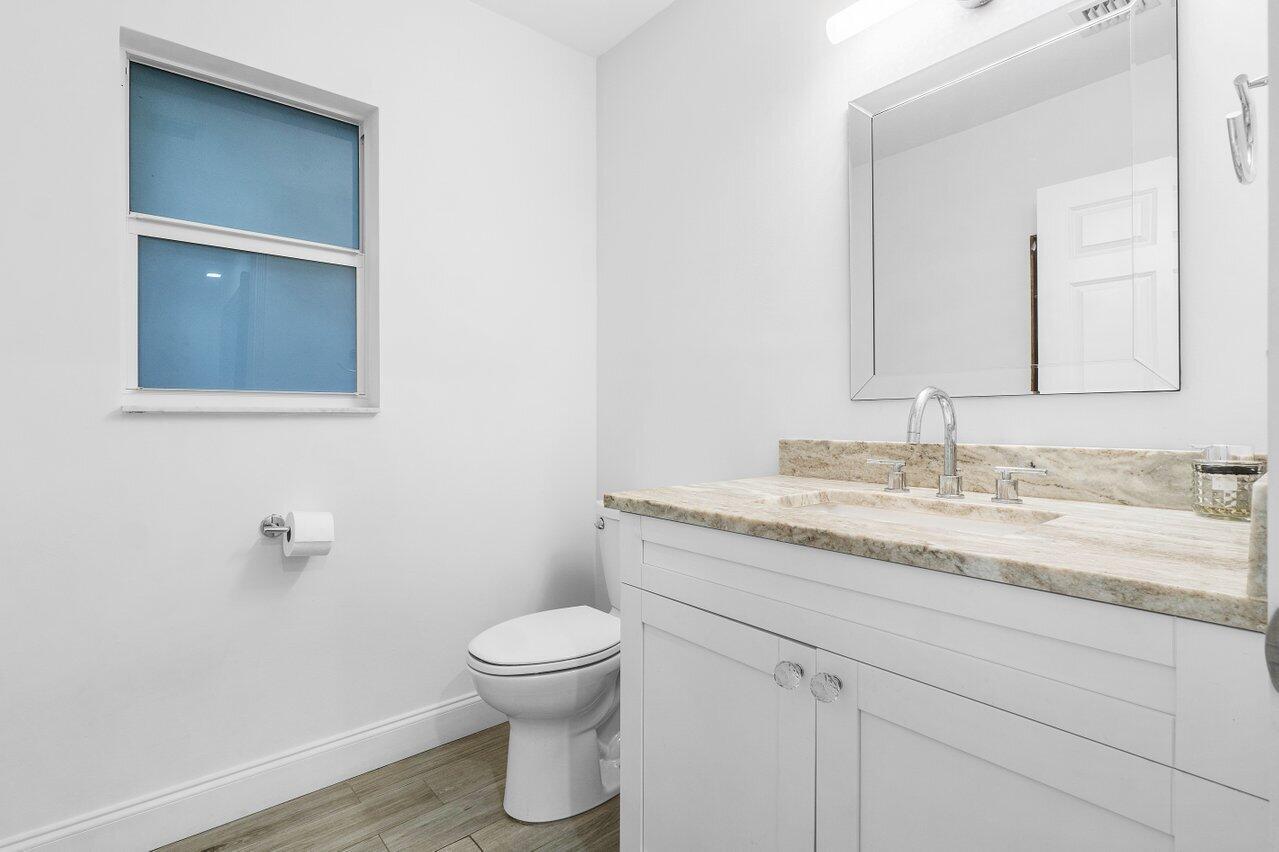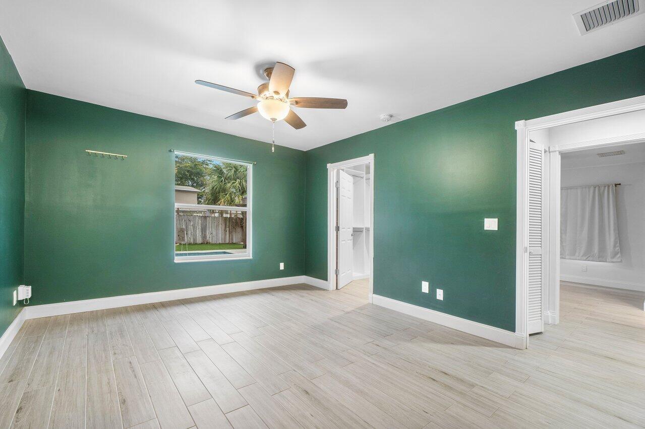 This Pineapple Park home is rare 2020 construction in a historic neighborhood walking distance from Grandview Market, the Kravis Center, Downtown West Palm Beach, and Howard Park. All windows and doors are hurricane impact, counters are white quartz, and floors are ceramic tile. The primary bedroom has built-in California closets. The backyard is fully turfed with a pool, marble deck, pergola, outdoor bar and entertaining area, electric hook ups, gas fire place, and planters. The front yard is xeriscaped with an agave and cactus garden for low outdoor maintenance and water usage. A rainbird irrigation system is in place with capped lines. Eco-friendly features like a rainwater collection system, composting unit, and EV car charger make this a unique modern home in a historic neighborhood.