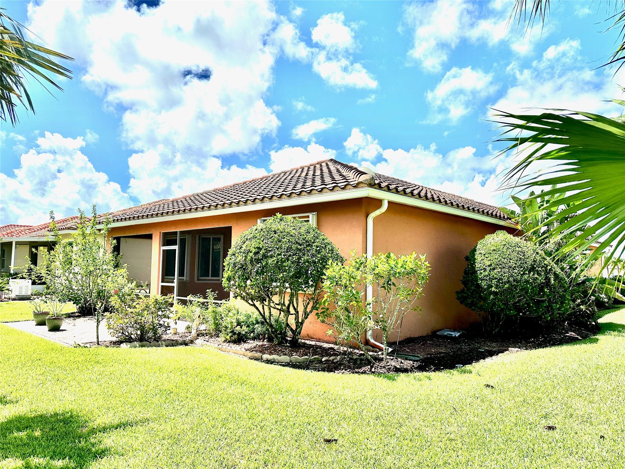 Single family home located in Vero Beach, Florida within the Woodfield Community, an active 55+ neighborhood. Features 2 bedrooms, 2 bathrooms + den. 2006 square feet of living space. The home includes an open-concept layout with porcelain floors in living area, wood-like flooring in bedrooms, vaulted ceilings, master suite with bay window, jacuzzi tub, and separate shower. The kitchen has 42" upper cabinets, granite counter and a breakfast nook. The home also offers a covered screened patio, an extended open patio. 2 car garage. The quarterly fee is $1489 and includes: TV/Internet, alarm monitoring, lawn service, all the amenities the community has to offer. New hotwater heater 2025, A/C 2017. A must see!