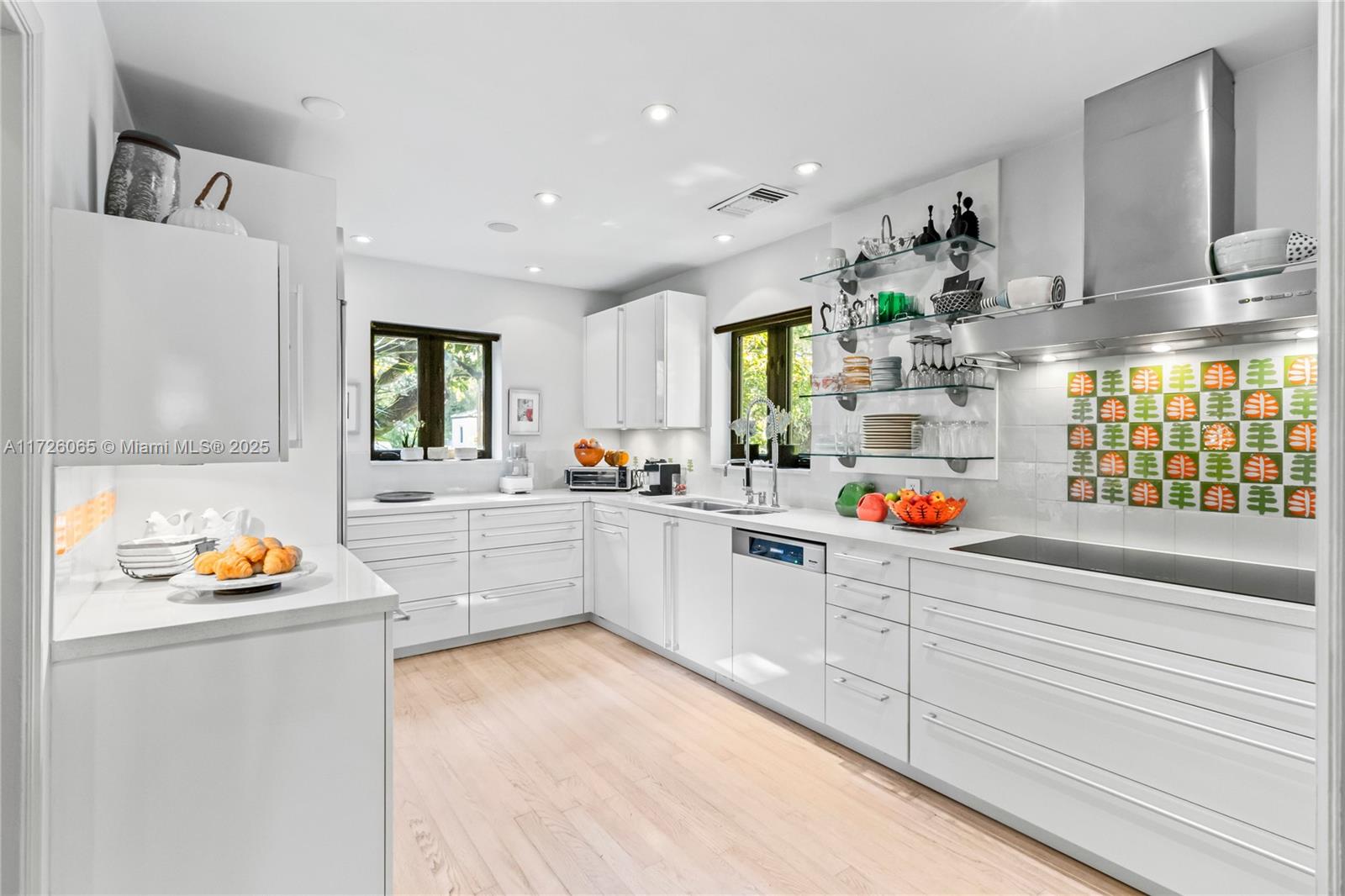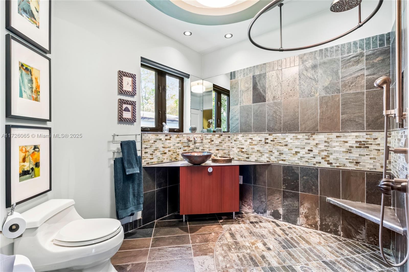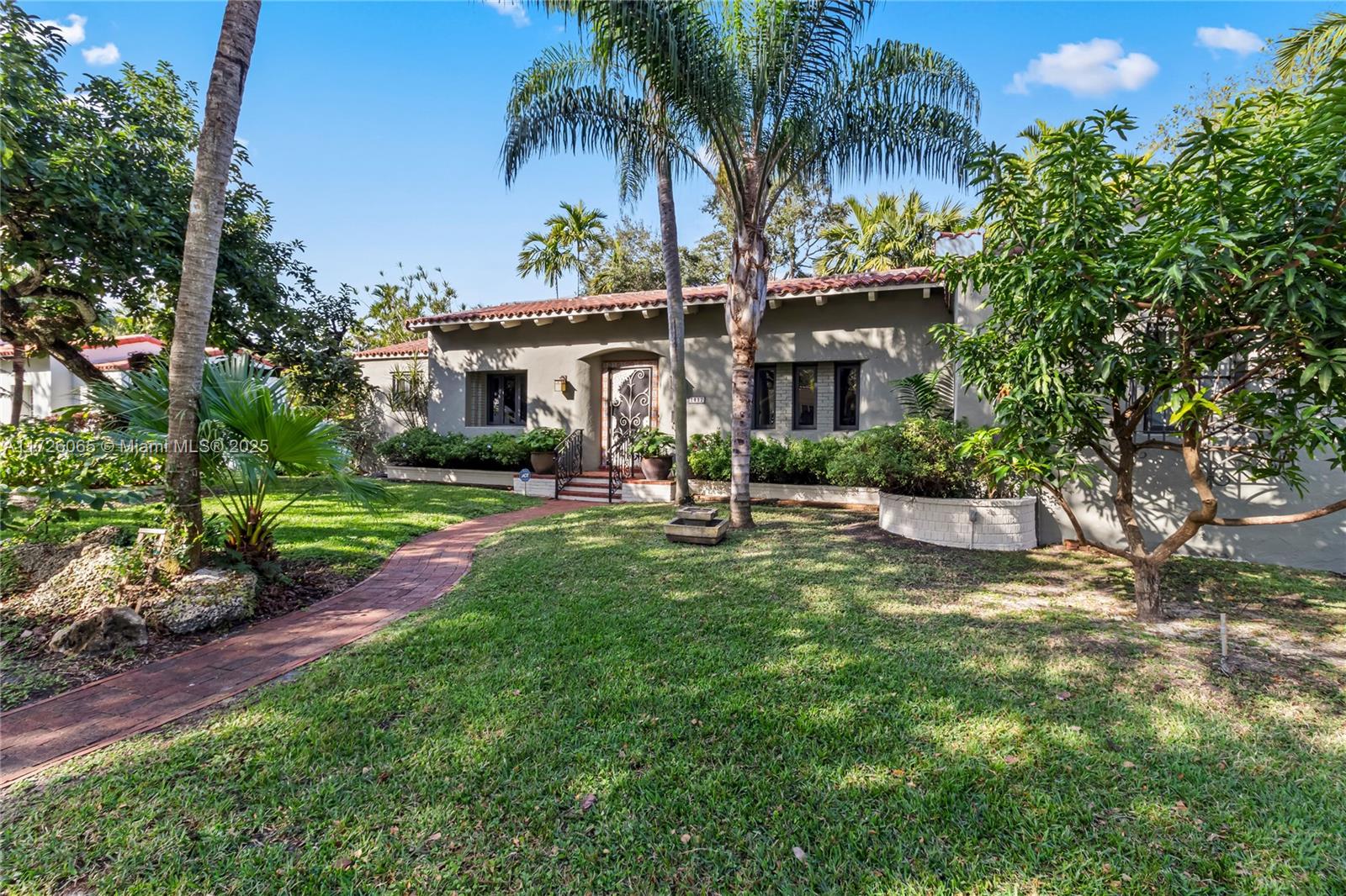 First time available in 18 years. This rare Mediterranean Revival home designed by famed architecture firm of Kiehnel and Elliott (Coral Gables Congregational Church, Scottish Rite Masonic Temple, Coral Gables Elementary School & numerous distinguished residences in Miami) has been comprehrensively updated w/luxe finishes. Main house consists of 3 bedrooms, 2.5 baths + a guest house w/1 bedroom & 1 bath. Chef's kitchen equipped with Sub Zero & Meile appliances, Poggenpohl cabinetry & quartz counter tops. All baths appointed w/unique imported stone & tiles. Newer roof & impact windows/doors. Oak hardwood & tile floors throughout. 2 car garage. Award winning lap pool, hot tub & lush tropical gardens sited on large 12,500 sq ft walled & gated lot on quiet, 1 block long low traffic street.