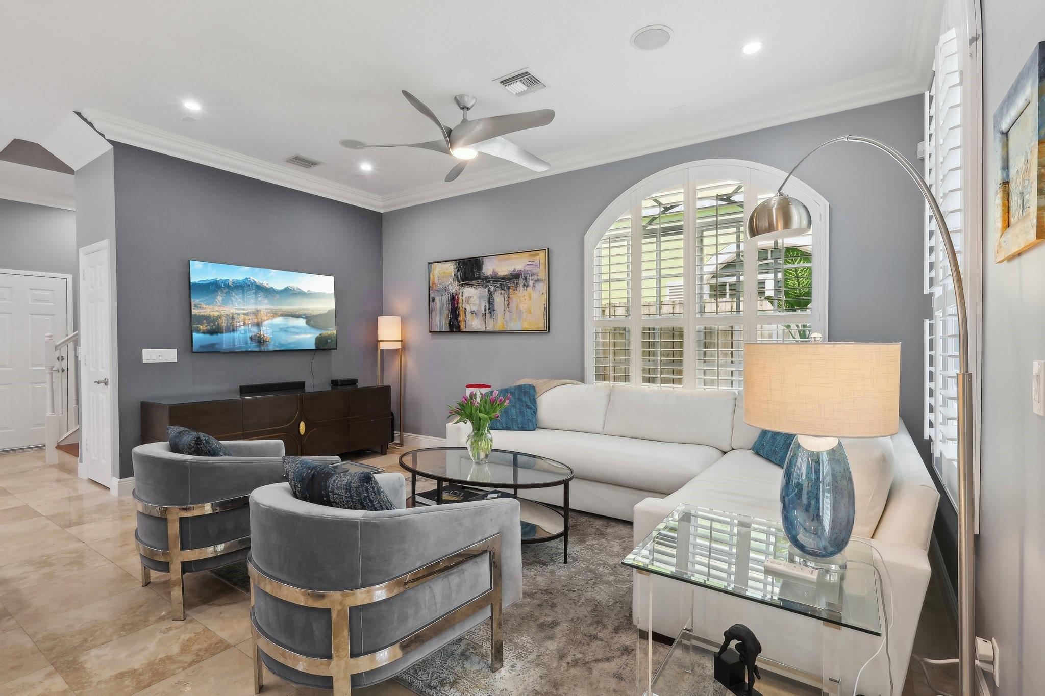 This luxurious 3-bed, 2.5-bath townhome is brimming with high-end upgrades and sophisticated touches designed for modern living. Enjoy your private landscaped yard, with a heated pool (recently diamond-brited) perfect for entertaining, The chef-inspired kitchen boasts a pantry/bar, wine fridge, stainless steel appliances, with an open floor plan. Upgrades include: plantation shutters, impact windows, hardwood floors on the staircase & upper level, tiled main floor, primary suite offers a balcony, en-suite bath, & walk-in closets. Additional highlights: Updated baths, 2-car garage with built-in storage, 2.5-year-old A/C, new water heater, metal roof & 2nd floor laundry, a covered front entrance, & room for outdoor seating, this home is the perfect blend of style and functionality.