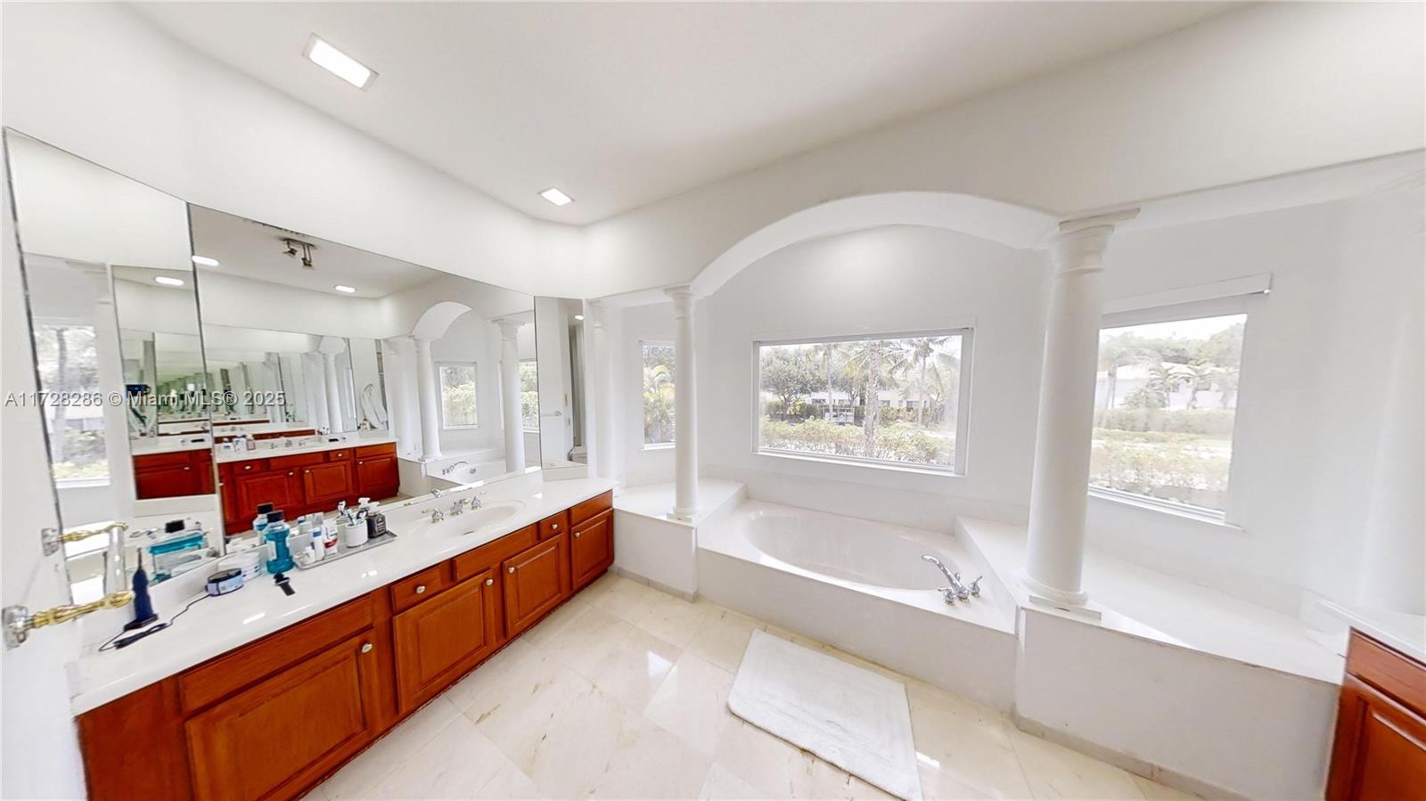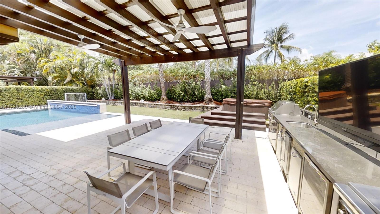 Mediterranea at Doral Isles **HOME POOL & OUTDOOR KITCHEN** 3,541 Sq/Ft Living Area - 4,226 Sq/Ft Total Area - 5 Bedrooms, 3.5 Bathroom, 3-car garage, premium lot (66” W x 110 ”D) 7,269 Sq/Ft Lot Area. Equipped & upgraded; Impacts windows, outdoor-indoor sound system, new and renovated modern kitchen; cabinets, quartz countertop, SS appliances, marble flooring downstairs & porcelain tile flooring upstairs. Open to below-high ceilings and an outdoor gourmet kitchen, ideal for your guests and entertainment. Private lot no neighbors back to back. Resort-style community and "The Clubhouse of Doral Isles" pool, tennis, basketball, soccer courts & fitness center. Family-friendly, gated community 24-h security.
