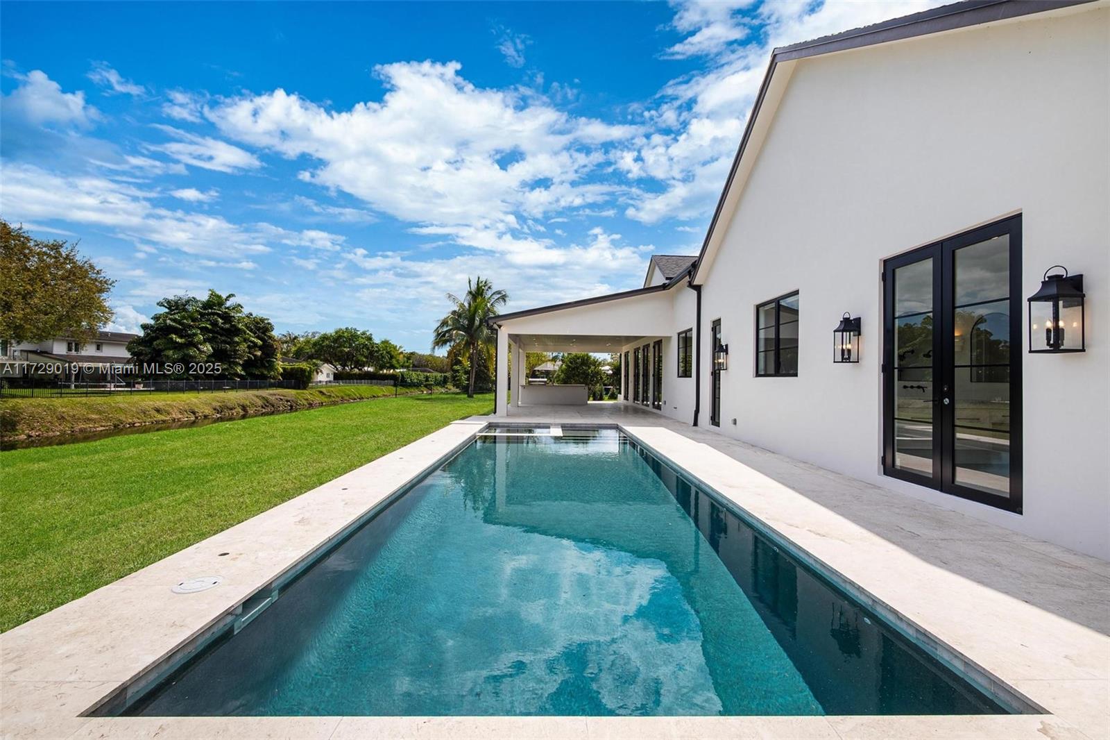 Exquisite Pinecrest residence just completed with CO ready for immediate occupancy! This contemporary modern farmhouse is one of a kind sitting on a quiet dead-end street with canal on 2 sides. Integrating a seamless indoor/outdoor living experience with natural white oak wood floors which blend the immaculate architecture & expressive details. With 6,389 SF this home includes 4 full bedrooms plus an office downstairs, 1 bedroom upstairs plus a flex space which can be used as a guest quarters, gym, office and/or home theater. 5.5 bathrooms inside main home plus full cabana bath. Must see it in person to appreciate! 2 car garage with lift space.