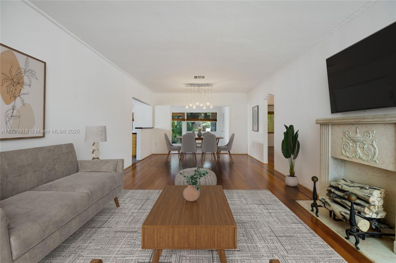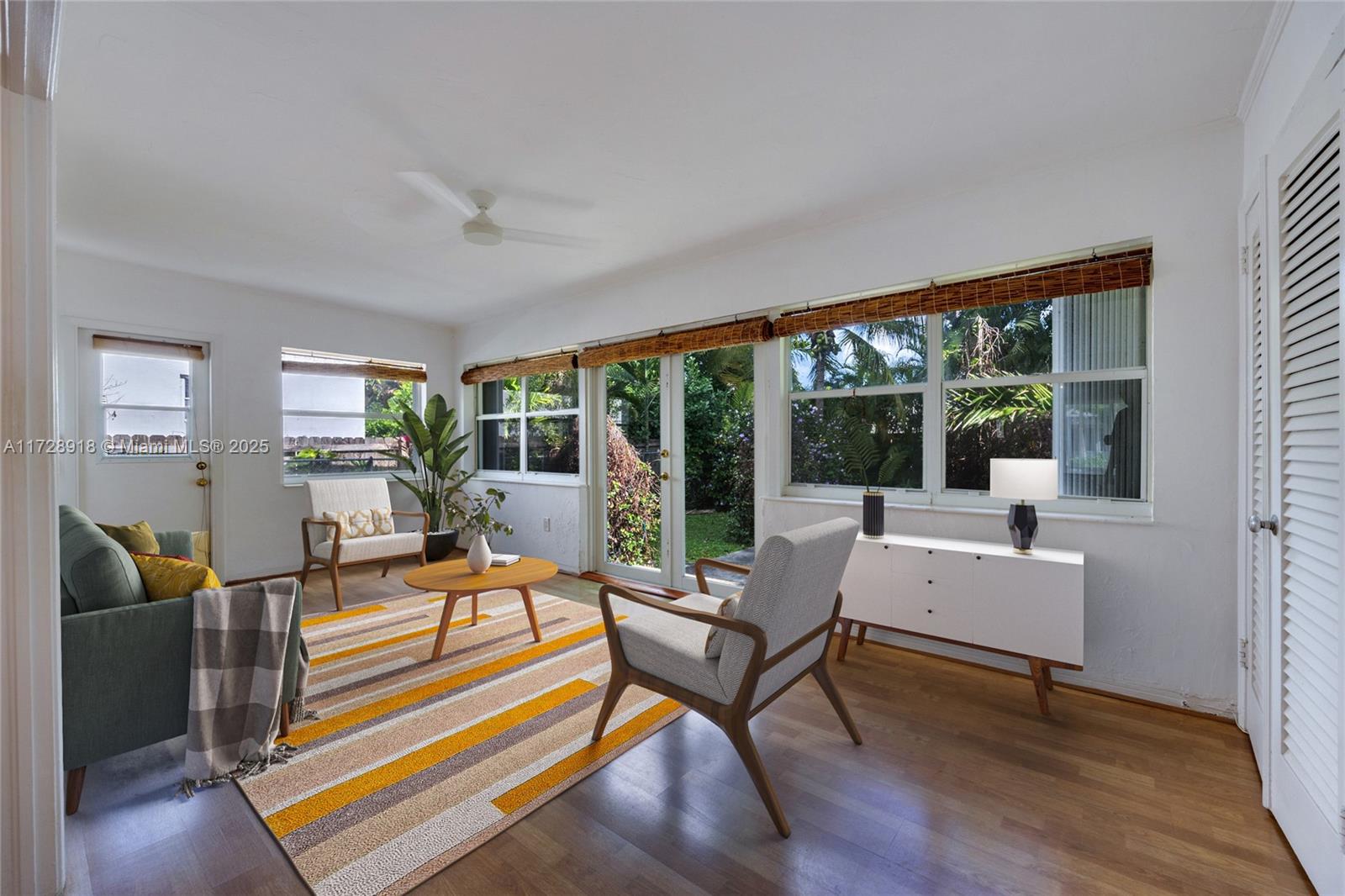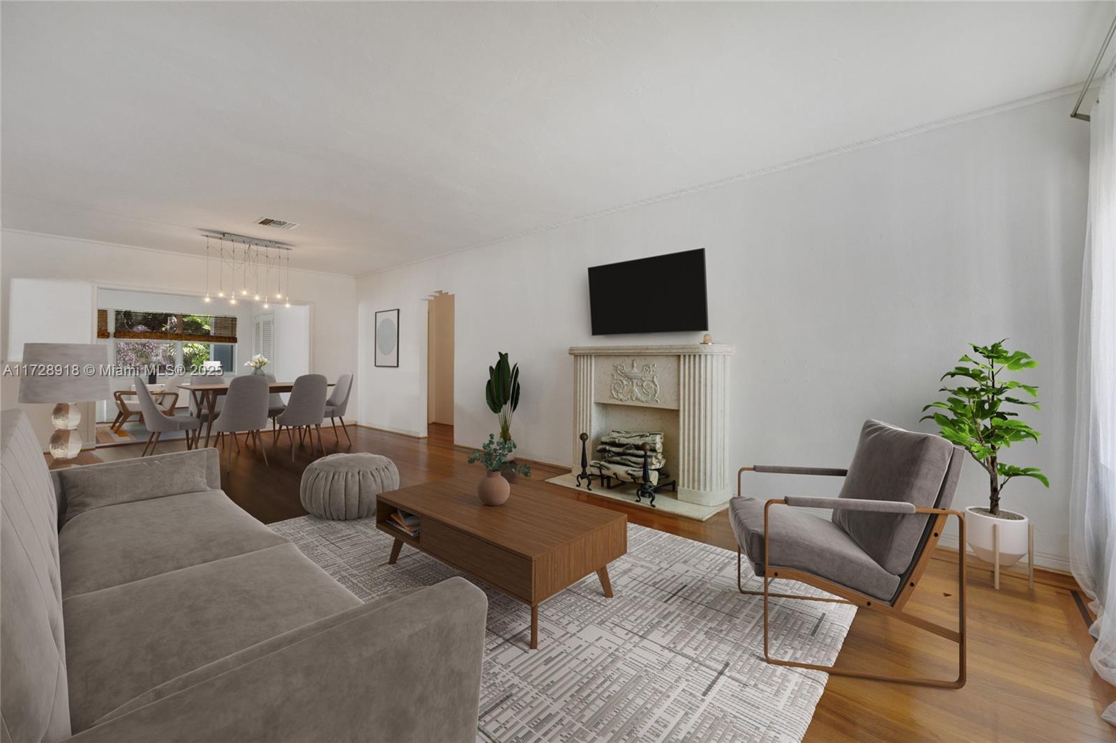 Experience the charm of this cozy beach house located in the desirable Town of Surfside, just a short distance from the ocean! This inviting home features two bedrooms and two renovated bathrooms, plus a 1-car garage. The open kitchen has wood cabinets and granite countertops and most windows in the home are hurricane impact glass. Enjoy the charm of the art deco fireplace in the living room and the beautiful, original wood floors throughout the home. The expansive backyard offers plenty of space and potential for a pool. Close to the beach, Surfside Community Center/pool, shopping, fine dining, houses of worship, Bal Harbour Shops & the Four Seasons Surf Club. Zoned for A-rated Bay Harbor Elementary and Middle School. Virtual tour available. Don’t miss out on this opportunity in Surfside!