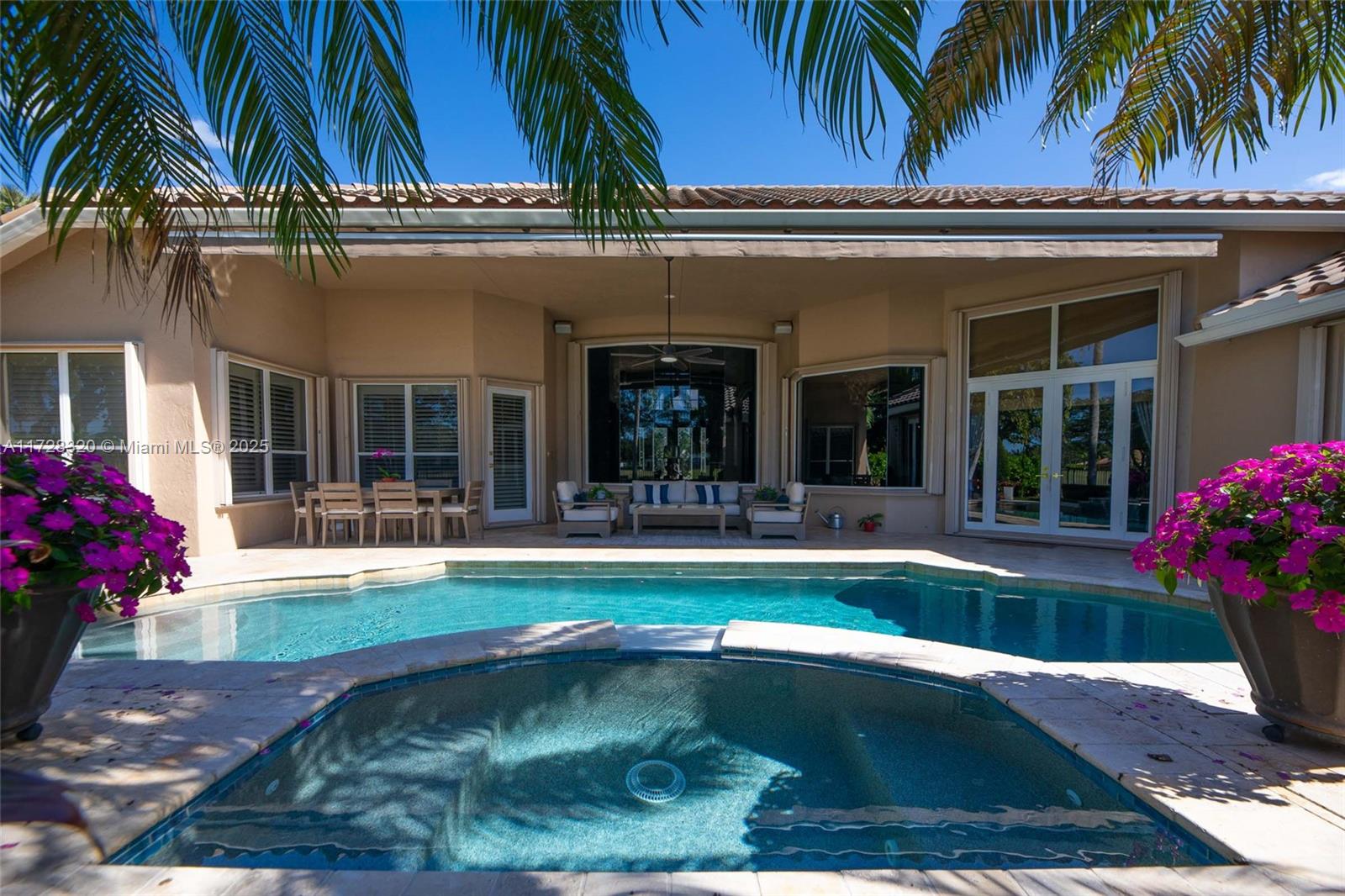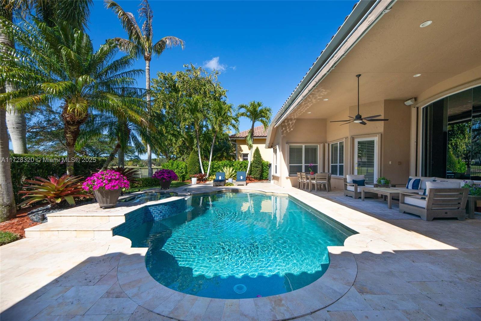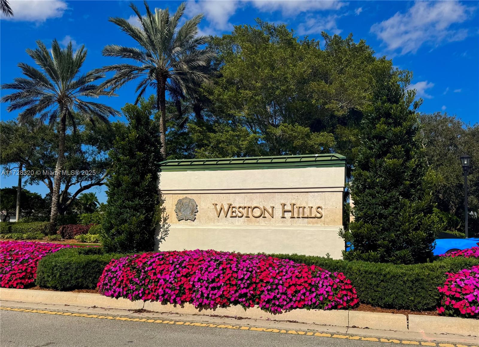 Discover this exquisite 4-bed 3.5-bath w/office & den pool home nestled in the prestigious gated community of Weston Hills. Thoughtfully designed split floor plan has soaring ceilings & an abundance of natural light. Gourmet kitchen features granite countertops, ample cabinetry, a walk in pantry with seamless flow into the expansive family room. Step outside to a tranquil backyard oasis, recently re-surfaced pool, spa & stunning travertine deck w/panoramic golf course views galore. Retreat to the luxurious owners suite, complete with a spa-like bath, dual walk-in closets, & private sitting room or gym. With a newer tile roof, 3-zone HVAC, full hurricane protection & meticulous attention to detail, this elegant residence exudes pride of ownership. A-rated schools & coveted Weston lifestyle.