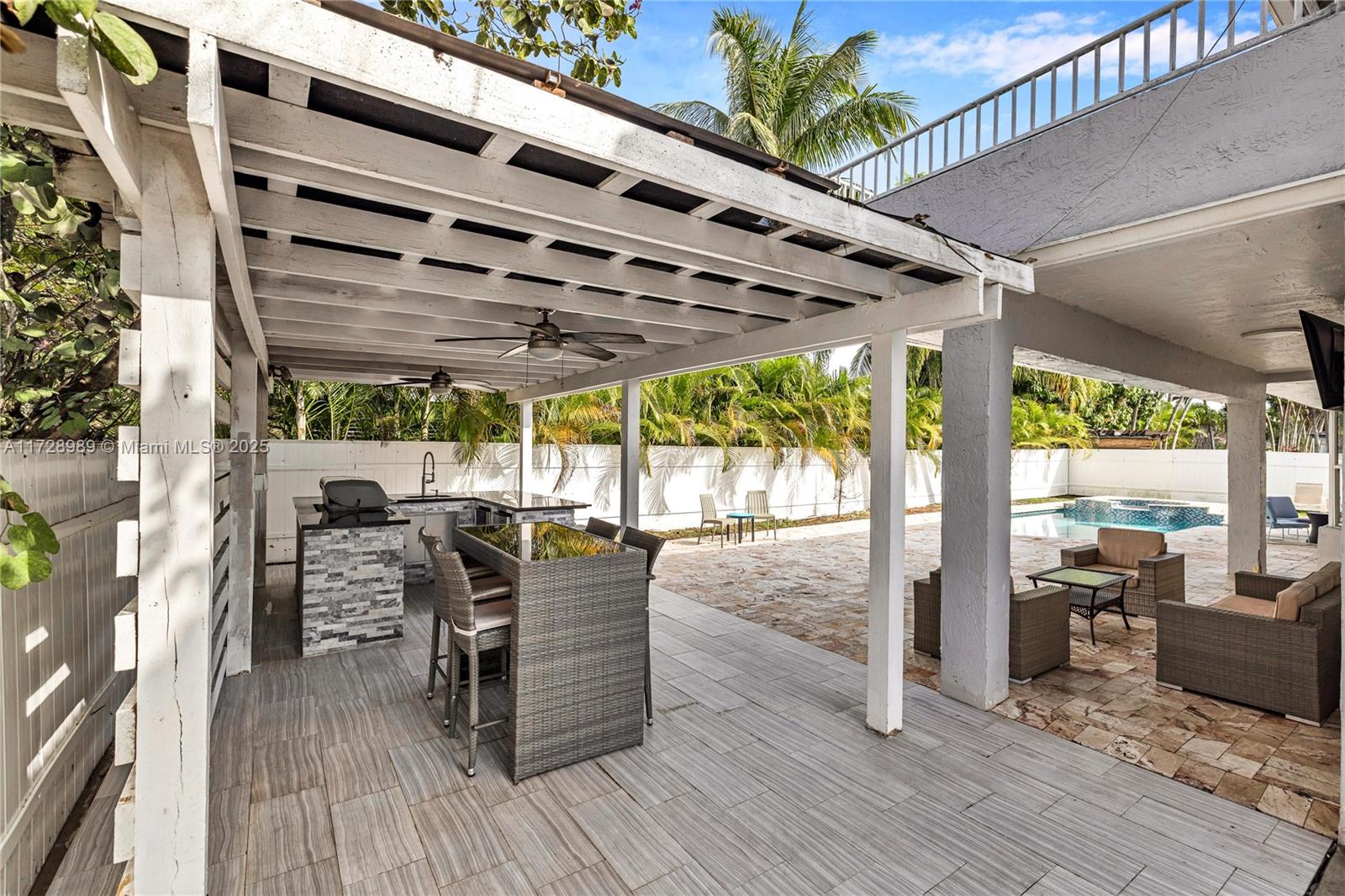 The Entertainers dream awaits! This corner lot property has it all! Beautiful custom staircase elegantly greets visitors while soaring ceilings allow for an abundance of natural light to drape the living spaces with color and softness. Spacious living areas serve perfectly for large get-togethers allowing for the party to spill out onto the gorgeous patio. All bedrooms amply sized with spacious closets and lovely wood flooring. Oversized primary bedroom offers plenty of room for a sitting area, private balcony, and spacious bathroom with private toilet room and jacuzzi tub. Exterior amenities include a travertine adorned patio/pool area complete with hot tub, summer kitchen and pergola to enjoy year round. Close to Zoo Miami, great schools, shops, parks and restaurants.
