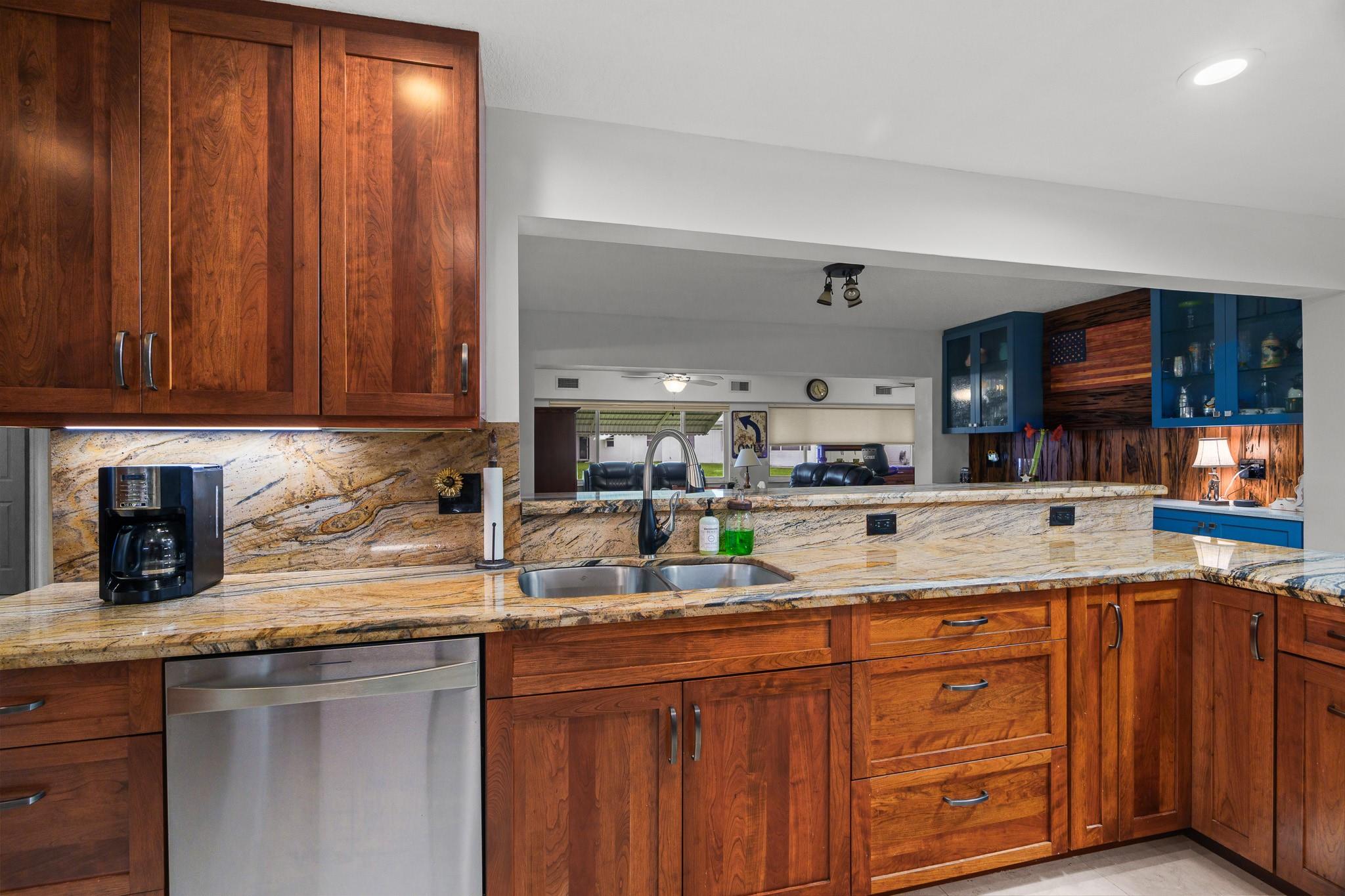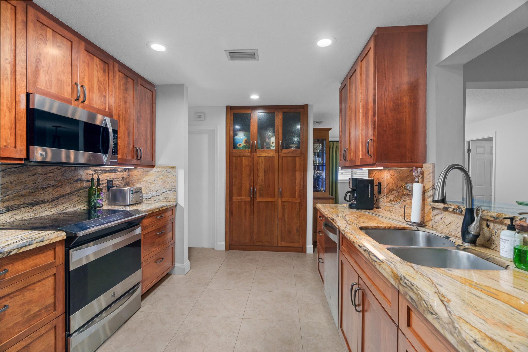 Lauderdale West 2/2 w/garage. HUGE, CUSTOM RE-DESIGNED UNIQUE HOME in prestigious 55+ community. Quite cul-de-sac, double wide concrete driveway, Impact windows, $100K + custom Chef's kitchen, room size-walk in closet, loaded with extra storage, huge master bath, 2-full size AC units, this home must be seen as it has no equal! Walk to heated pool, spa, fitness center& tennis courts. Low maintenance includes Cable TV, WiFi, repair/replace roof, paint exterior of home, groundskeeping and many recreation opportunities including billiards, pool tables, ping pong, professional shows, many clubs, library, parties and more. Near to shopping, restaurants and entertainment. DON'T LET THIS ONE GET AWAY.