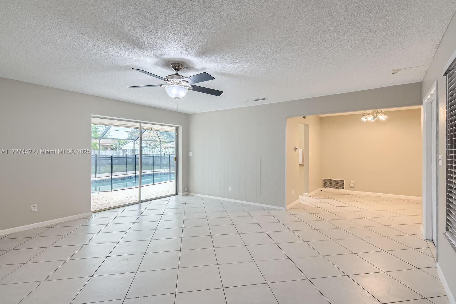 Charming 3-bedroom, 2-bath ranch-style home featuring a covered front porch and a spacious layout. Inside, enjoy tile and wood plank floors throughout, with a separate dining room and a living room that opens to a screened-in lanai with access to the in-ground pool. The kitchen boasts stainless steel appliances and a window above the sink overlooking the backyard. The guest bathroom includes a tub/shower combo, while the primary suite offers sliding glass door access to the lanai, a walk-in closet, and an en suite with a stand-alone shower, also doubling as a pool bath. The exterior includes a side door to a private patio and convenient access to the garage from the lanai. Perfect for indoor and outdoor living!