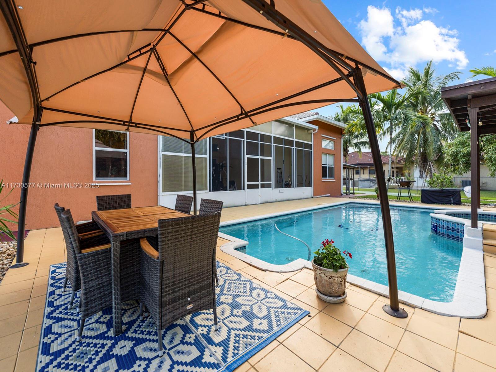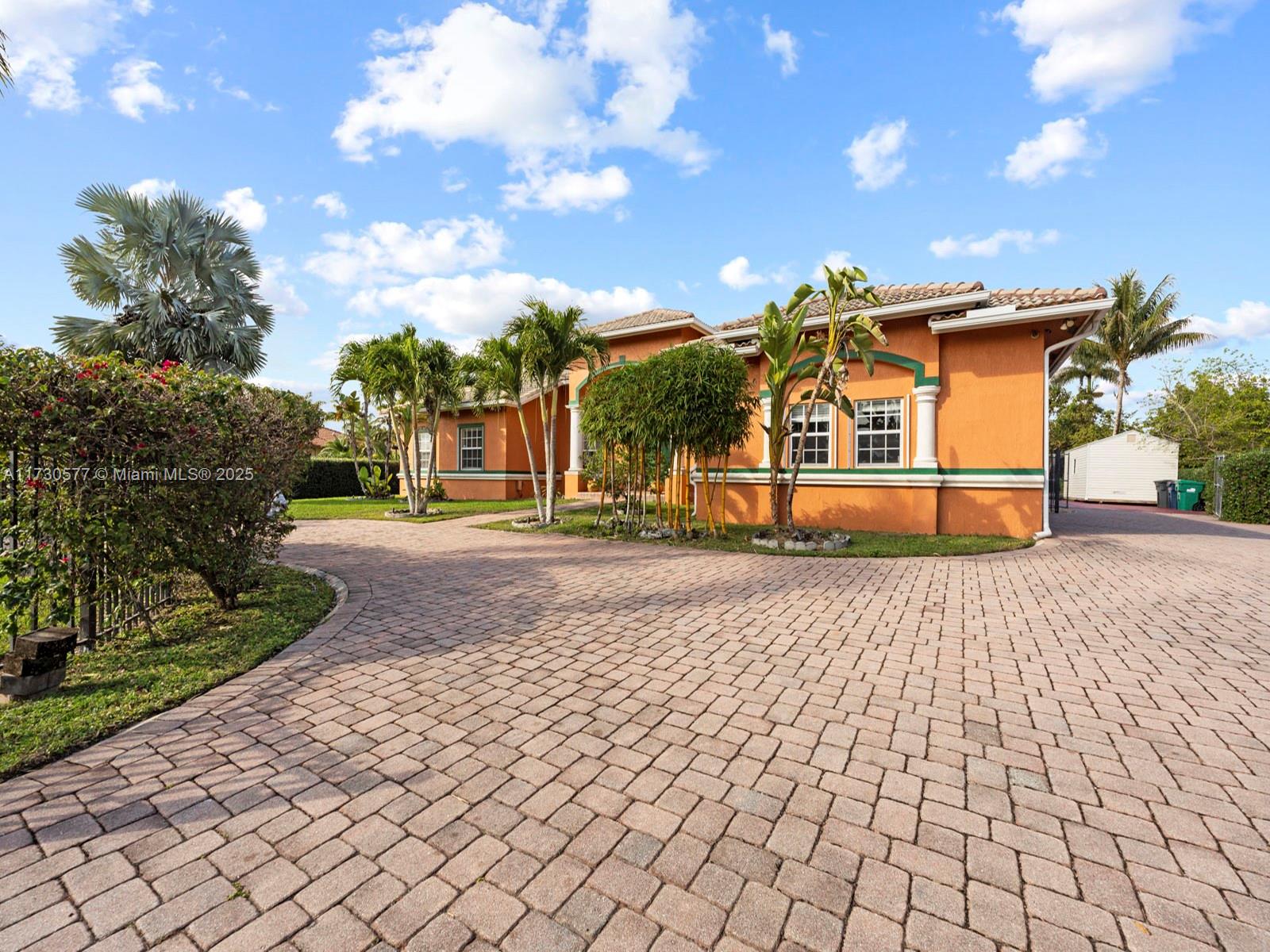 Discover your dream home in Homestead, FL! This stunning 4-bed, 3-bath, one-story gem spans total of 4,608 sqft on a .91-acre oasis. Entertain effortlessly in the spacious layout with high ceilings and 8-foot doors. The kitchen boasts stainless steel appliances, a professional exhaust vent, and a water softener system for the whole house. Enjoy the luxury of a pool, jacuzzi, and numerous fruit trees, all maintained by well water irrigation. Features include a fully functioning Generac generator, salt tank water system, and two efficient AC units (one new, one 3 years old). Relax in the glass-enclosed terrace. Don't miss this perfect blend of comfort and elegance!