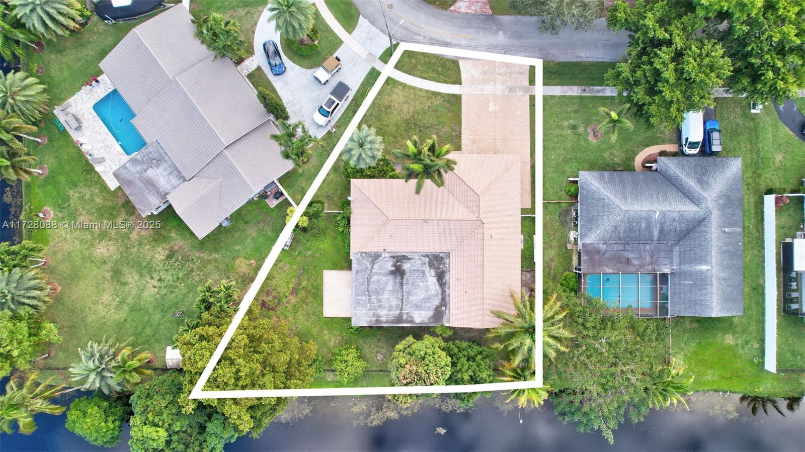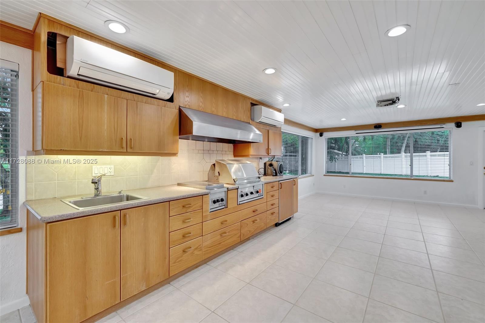 Fantastic home in Secluded Gardens w/ 3325 sq. ft. under air. Positioned on a oversized, 13,300 sq. ft. lot w/ waterfront view! No HOA. Impact Glass Windows. Renovated kitchen features wood cabinetry, granite countertops, large island, double oven. Microwave, stovetop & dishwasher installed (2022). Open living space, great for entertaining. Split bedrooms. Indoor BBQ grill w/ ventilation system, sink, refrigerator, 2 burners & built in cabinets. Tile flooring throughout. LED recessed lighting. Plantation shutters. Both bathrooms completely renovated. Large closets w/ built ins. Main AC installed (2018). (2) mini split AC units installed (2022). Rheem Water heater (2021). Indoor laundry room. Completely fenced property w/ tons of room for a pool, RV & Boat storage. Low traffic street.