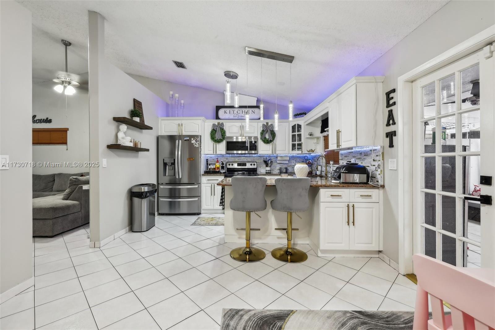 Step into this beautifully upgraded home that perfectly combines style and functionality! With a new roof (2022), front impact windows, and modern lighting, every detail has been thoughtfully designed. The renovated kitchen and updated bathrooms offer a contemporary touch, while the covered aluminum patio provides the perfect space for outdoor entertaining. A freshly painted driveway adds to the home’s charm and curb appeal. This move-in ready gem is waiting for you to make it your own!