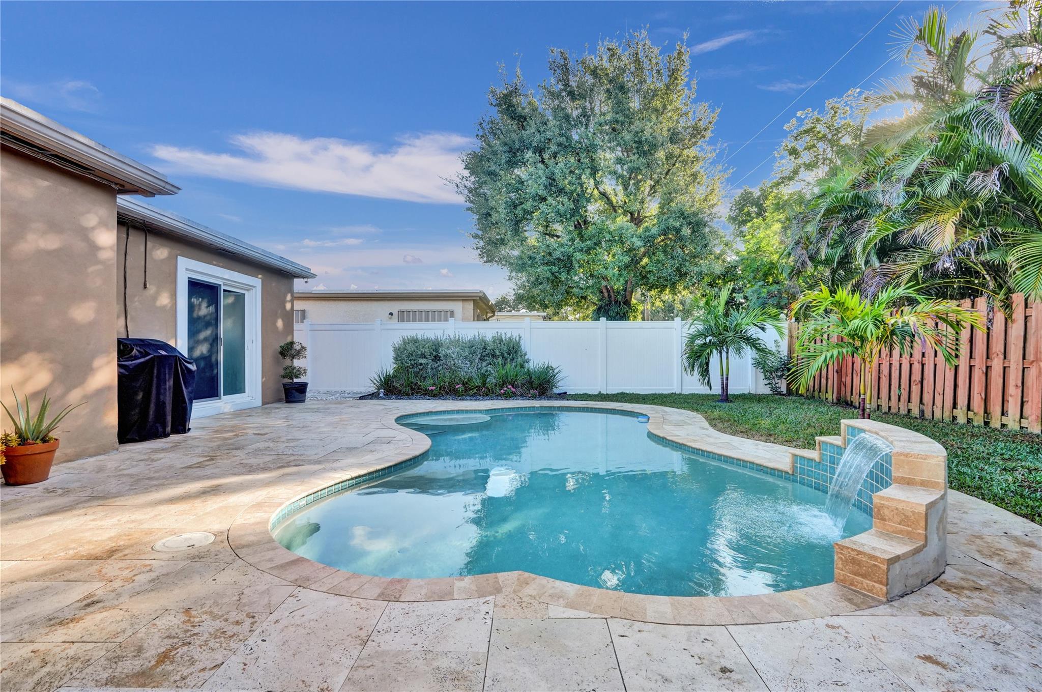 Beautifully renovated 3 Bed/ 2 Bath home in Ft Lauderdale. Will satisfy the pickiest buyer. The entire home has been updated and painted inside/ outside. The kitchen features quartz countertops, oversized wood cabinets, SS appliances, tile floors. Living room has a working wood burning fireplace, tile floors, crown molding, baseboards. All bedrooms have been updated. Master suite has been tastefully updated with built in custom closets, tile floors, spacious bathroom with quartz countertops. The private fenced in backyard has a new pool with waterfall, great for entertaining. All plumbing has been updated with PVC. Electrical panel has been replaced. Most of the home has impact windows. Close to HWYS, beaches, Las Olas, Soccer Stadium, restaurants, shopping. Make this your dream home.