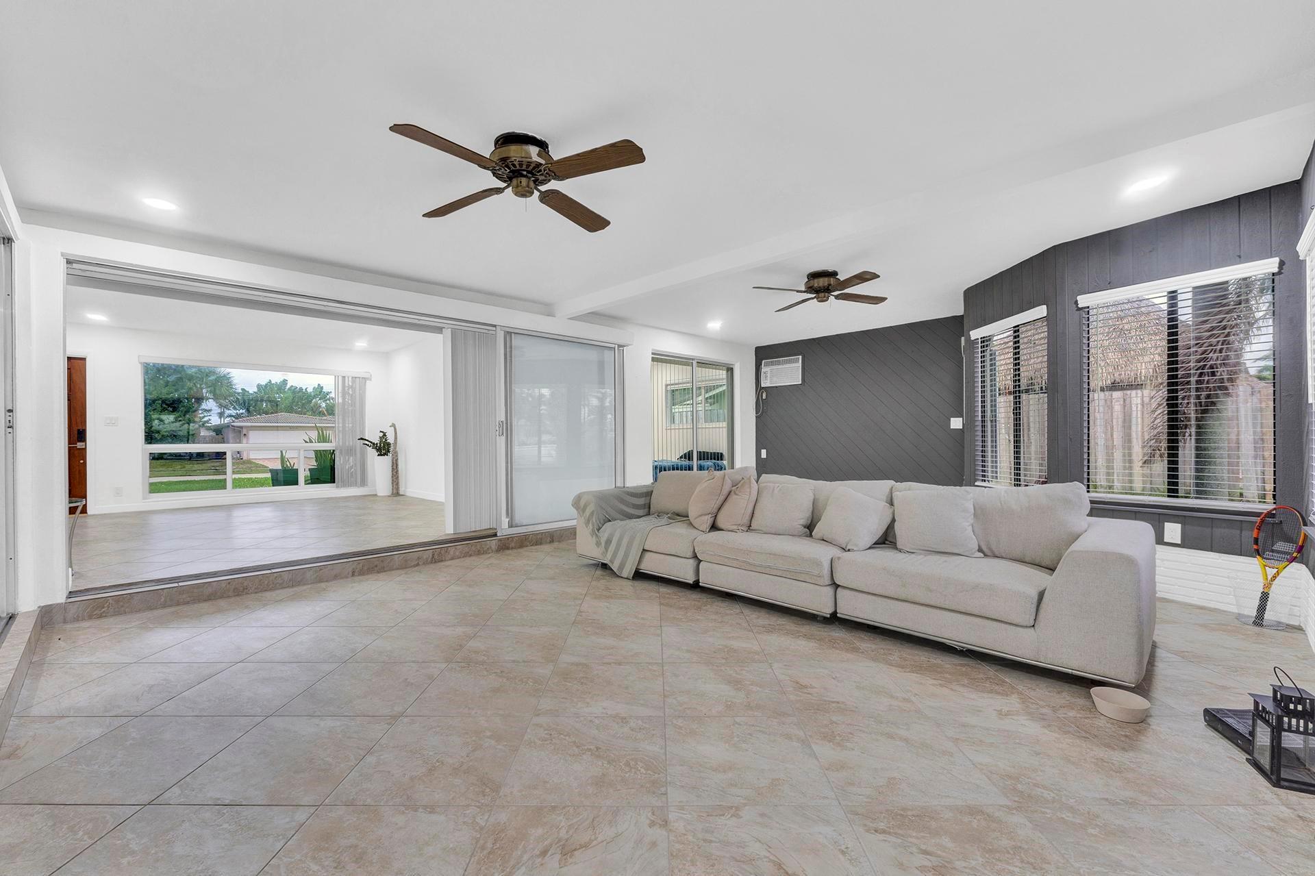 This home is just waiting for you to add your finishing touches and additional updates. Come see this large 3-bed 3-bath home in Coral Ridge Isles. Each bedroom has its own attached bathroom for split 3 Master Bedrooms. Featuring New Impact Windows in the front half of the home and Accordion Shutters for remaining windows for your hurricane protection. All 3 bathrooms have been nicely updated. Two bathrooms feature new white cabinet vanities with new quartz countertops, new marble look tile, new lighted mirrors. A converted 2 car garage is your 3rd master bedroom/bathroom. Large Florida room for extra living space. Separate laundry room. Natural Gas. Two of the bedrooms have terrazzo floors in great condition and tile in rest of the house.