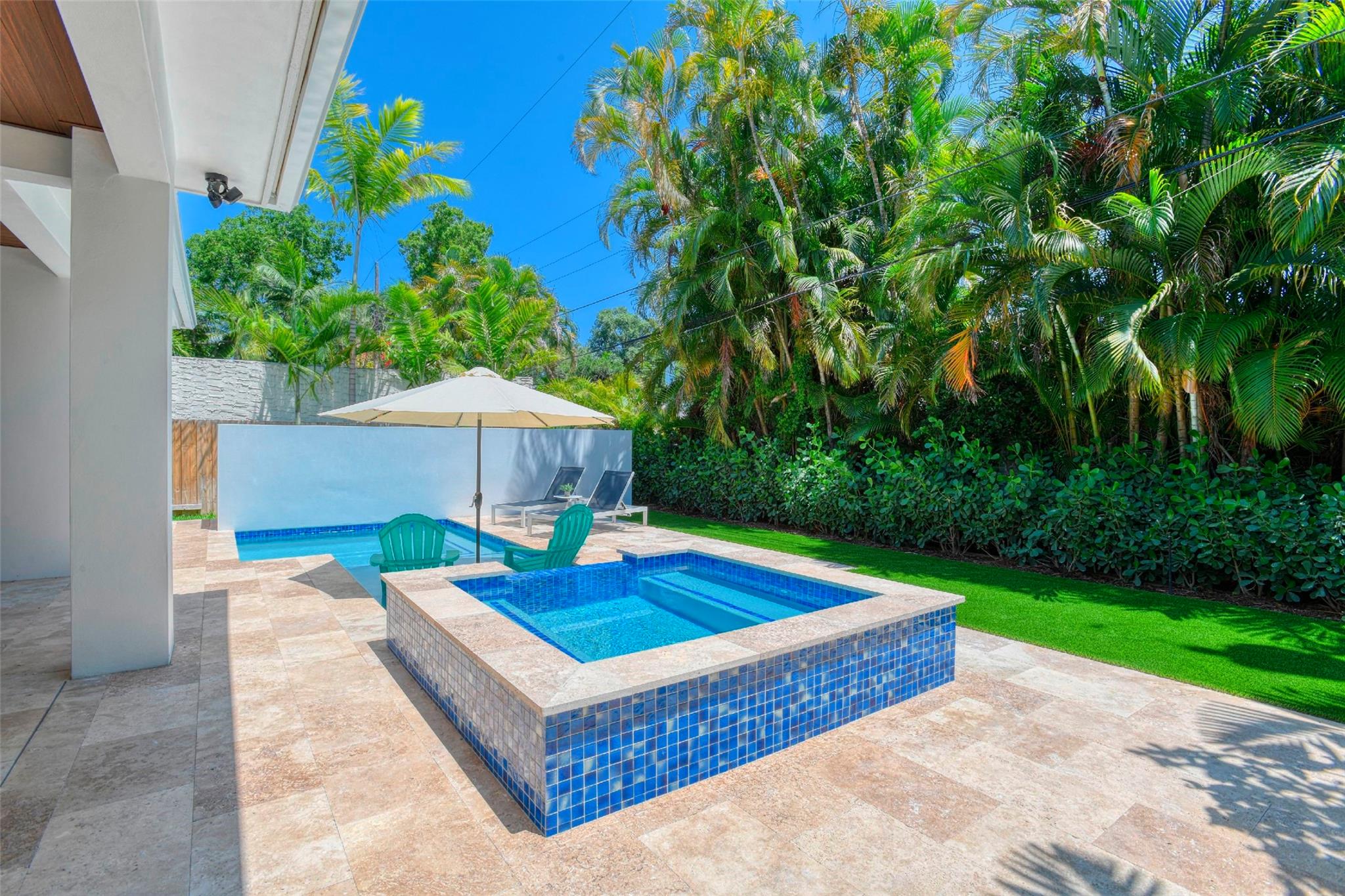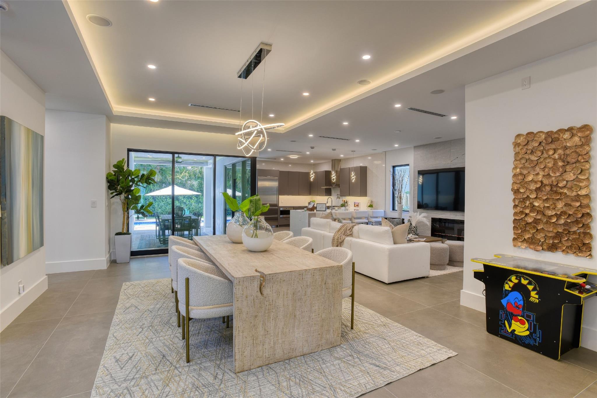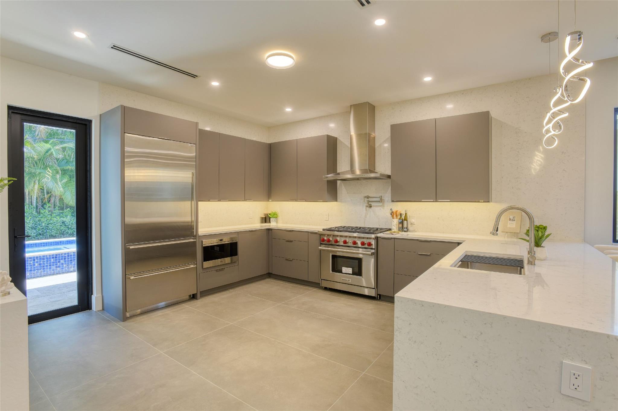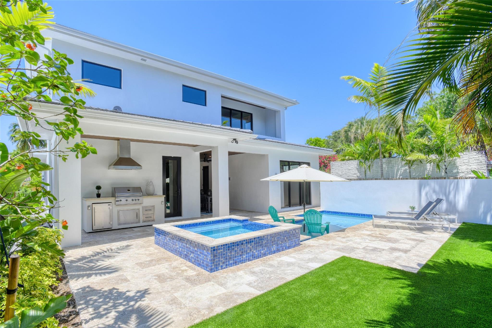 This Rio Vista New Construction home offers a stunning blend of style & function. The open-concept 1st floor features accordion doors that seamlessly connect the living room to the lanai, creating an indoor-outdoor flow perfect for entertaining. A versatile guest suite w/ a full bath opens to the lanai & can double as a home office. Upstairs, the luxurious primary suite impresses w/ his-and-her closets & a spa-inspired bathroom featuring a soaking tub within the shower. 2 generously sized guest bedrooms share a modern Jack-&-Jill bathroom. The gourmet kitchen has Wolf & Sub-Zero appliances, custom cabinetry, & elegant finishes. High ceilings, porcelain tile floors, & accent lighting enhance every space. Step outside to your private oasis, complete w/ a pool, hot tub, & lush landscaping.