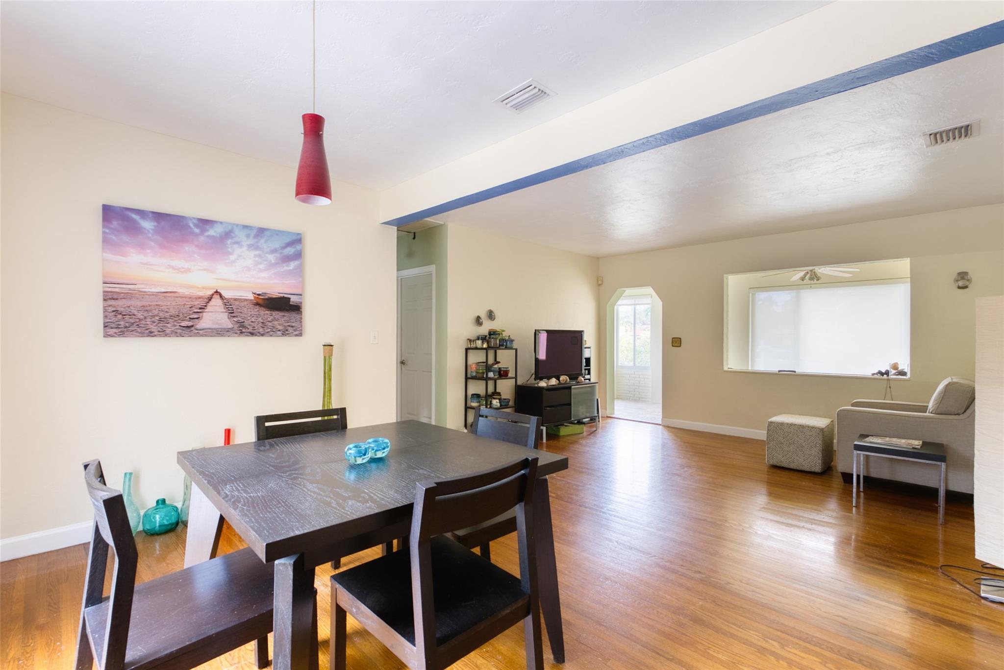 Charming-2BR/2BA home with a rare 1-car garage! with metal roof located near the thriving Downtown Hollywood area. This beautiful home, with NO HOA restrictions this property is complemented by hardwood flooring throughout for a seamless flow. The stylish kitchen features white wood cabinetry and sliding hurricane impact that lead out to a huge paved back yard which makes this home perfect for entertaining guest or relaxation. This prime location is short distance to restaurants & bars, quick access to highways, only minutes from the beach, conveniently close to the airport and shopping centers.