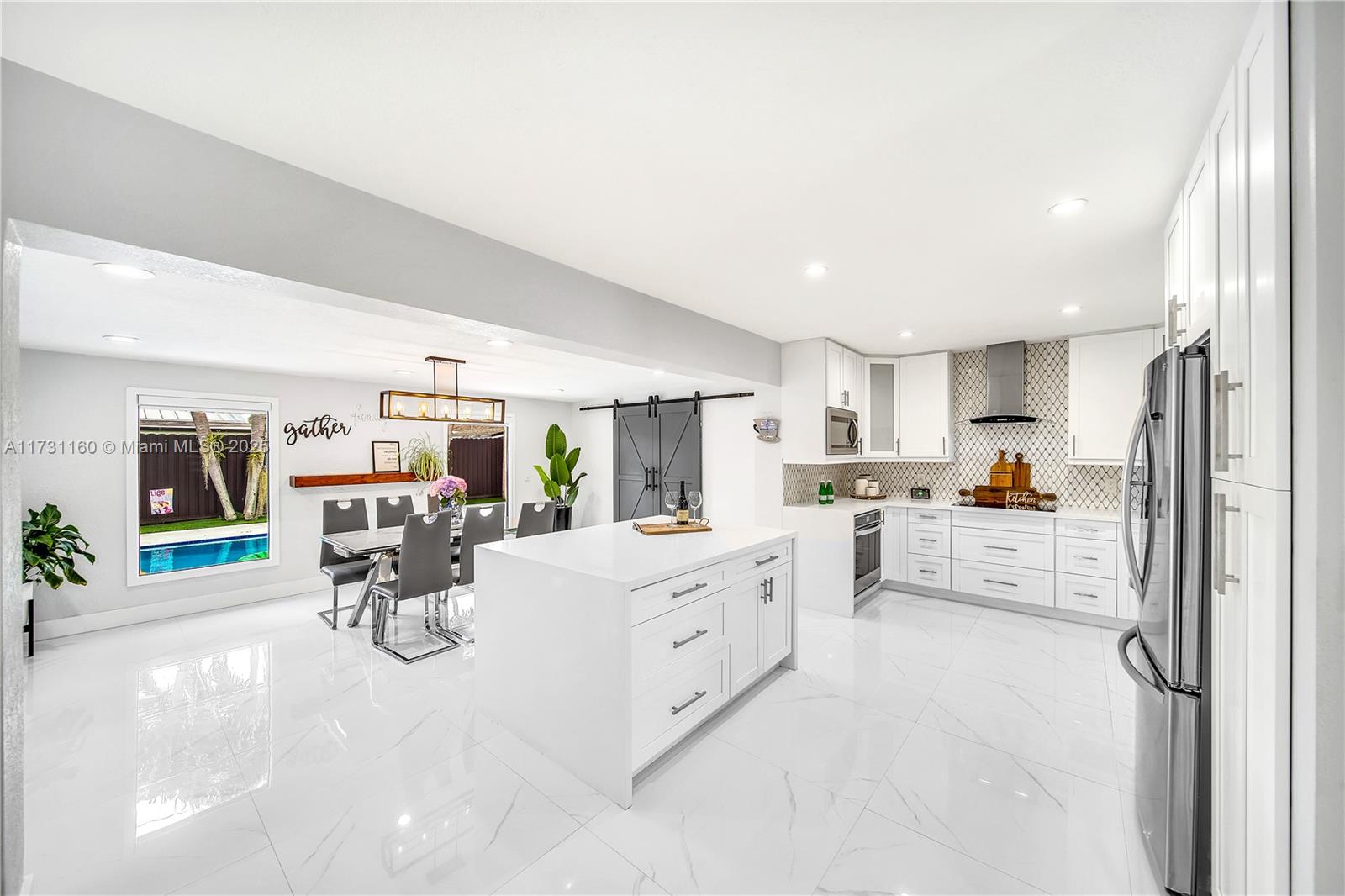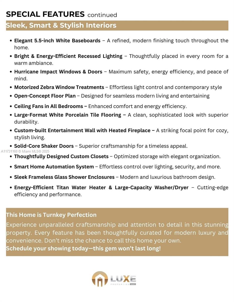 Completely Remodeled Turn-key 4-Bed, 3-Bath Pool Home, blending modern comfort and style. This gem includes a versatile private suite w/its own entrance, bathroom, and walk-in closet—perfect for guests, in-laws, or home office. Inside, enjoy sleek porcelain tile floors, a cozy living room w/a TV wall + chimney, and a chef-inspired kitchen with a Large Kitchen Island, featuring custom shaker cabinets, quartz countertops, and premium stainless steel appliances. The backyard is a private paradise, boasting a 15x30 heated pool with Jacuzzi, an insulated pergola, and lush landscaping with orchids and palm trees. Recent upgrades include a new roof, pool, and pergola, plus hurricane-impact windows and a smart home system. Located near Baptist Hospital, Dadeland Mall, and major highways.