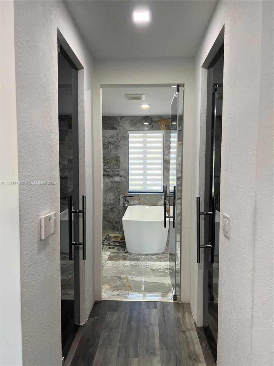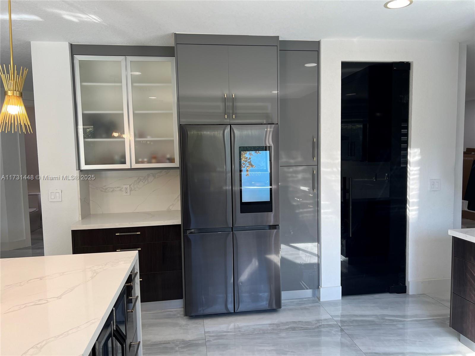 Step into this beautiful, fully renovated five-bed, five-bath home, a modern masterpiece in a covered South Florida guard-gate community. This home is a perfect blend of comfort and sophistication, with a separate guest-in-law suite, a private pool, a lush backyard, impact windows and doors, new appliances, and much more. Enjoy privacy, exclusivity, and community amenities like a pool, gym, and more. The home is equipped with 63 soffit 4-inch lights, a mosquito mist system, three brand new AC units, a 40x15 heated pool, custom closets throughout, a glass staircase, a high hat light throughout, and a 12x8 foot glass wine cellar holding 60 bottles. The Samsung Black steel appliances and custom bathrooms add a touch of modernity to this luxurious home.