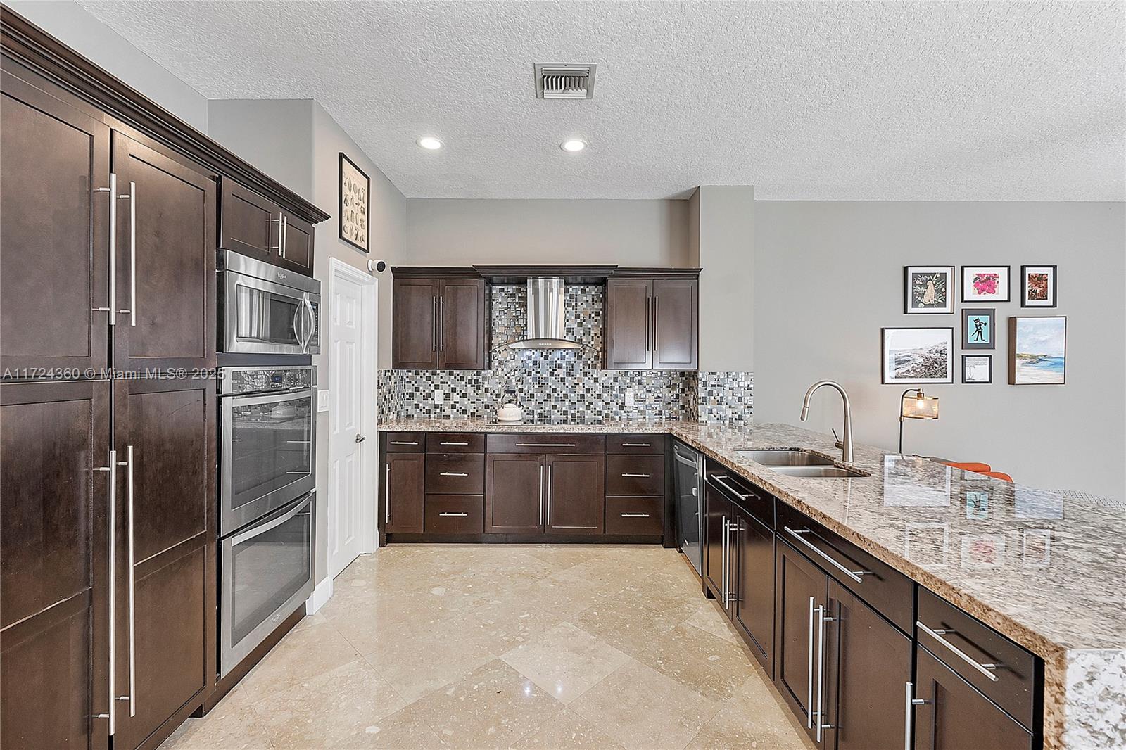 Wow! Amazing 6 Bed/ 4 Bath Pool Home With 3 Car Garage Built in 2000 Located In Prestigious Gated Harborside Estates, Pembroke Shores. This Home Features A New Tile Roof (2022). 2 Newer Ac's. Newer Water Heater (2019). Travertine Marble Floors Throughout. Recently Painted. Large Open Kitchen W/ SS Appliances, Granite Counters & Waterfall, Double Wall Oven, Induction Cooktop & Lots Of Cabinets And Pantry. Large Open Layout Has Living, Dining And Family Rooms. 1 Bedroom and Updated Bath Downstairs. Volume Ceilings. Crown Molding. Recessed Lights. Updated Light Fixtures. Indoor Laundry Mudroom W/ Storage. Samsung Front Load W/D. EV Charging Station. Large Primary Suite With Tray Ceilings Dual Closets. Ensuite Bathroom Dual Vanities, Granite Counters, Separate Shower and Jetted Tub. Must See!