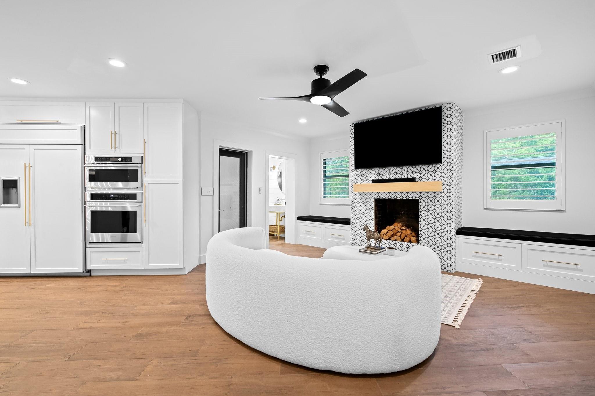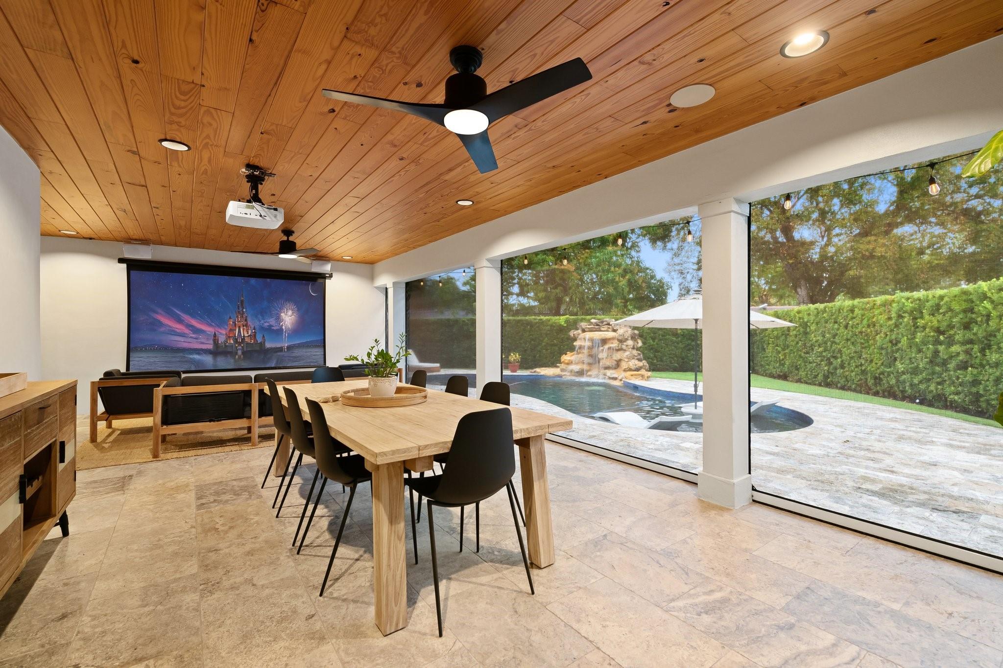 A modern masterpiece offering maintenance-free living. Exceptionally maintained home with every space thoughtfully designed. Oversized primary suite boasts a spacious walk-in closet and a luxurious en-suite bathroom with a soaking tub and double shower. The fully fenced backyard is a private oasis, showcasing an impressive pool with a tranquil waterfall and sun shelf. A seamless transition to outdoor living with a back patio that includes remote-controlled drop-down screens and an outdoor projector for movie nights. A convenient cabana half bath enhances the home's outdoor living experience. This home is equipped with impact windows and doors and a whole-home gas generator. The garage features storage cabinets and epoxy flooring, with a convenient mud roof off the garage. True perfection!