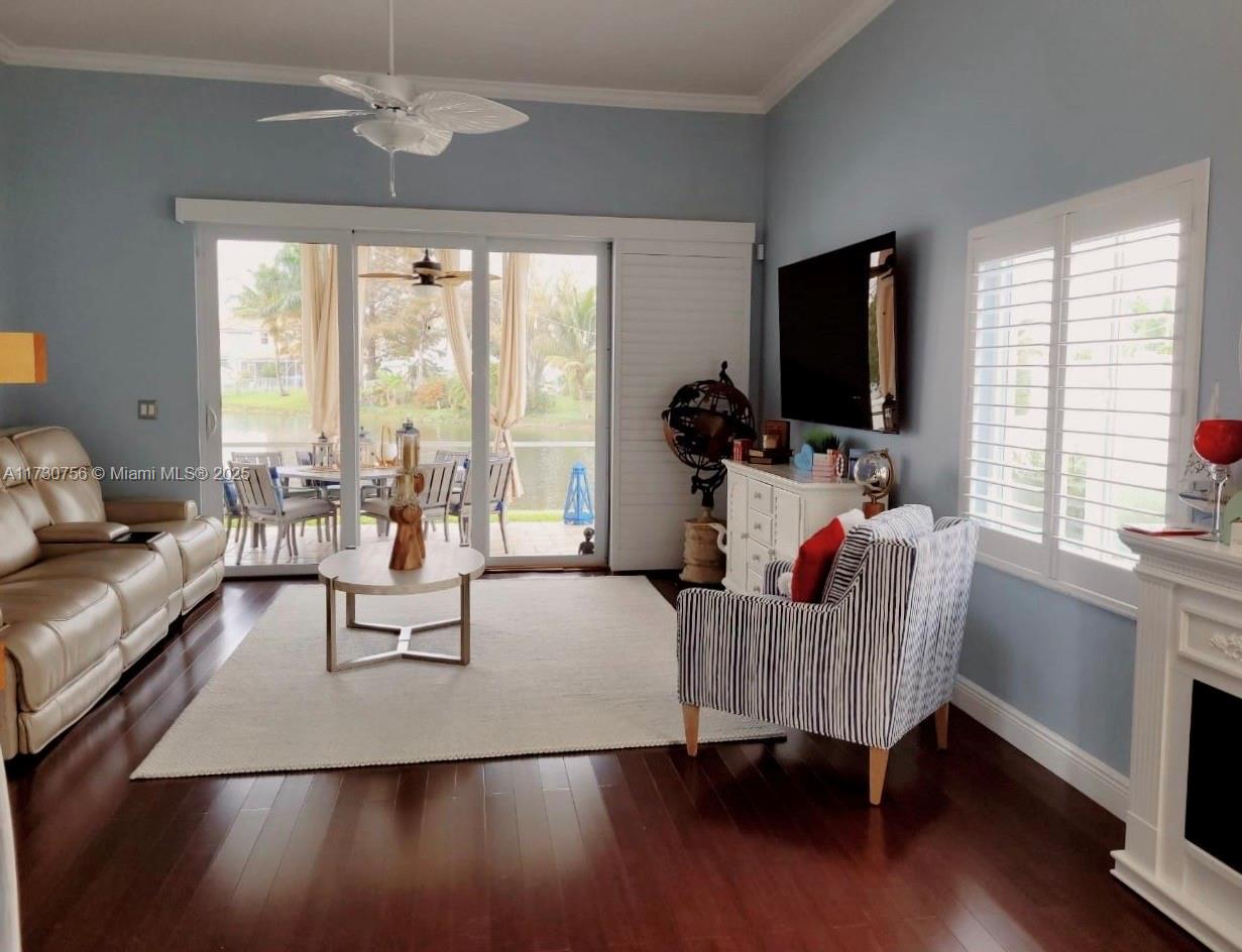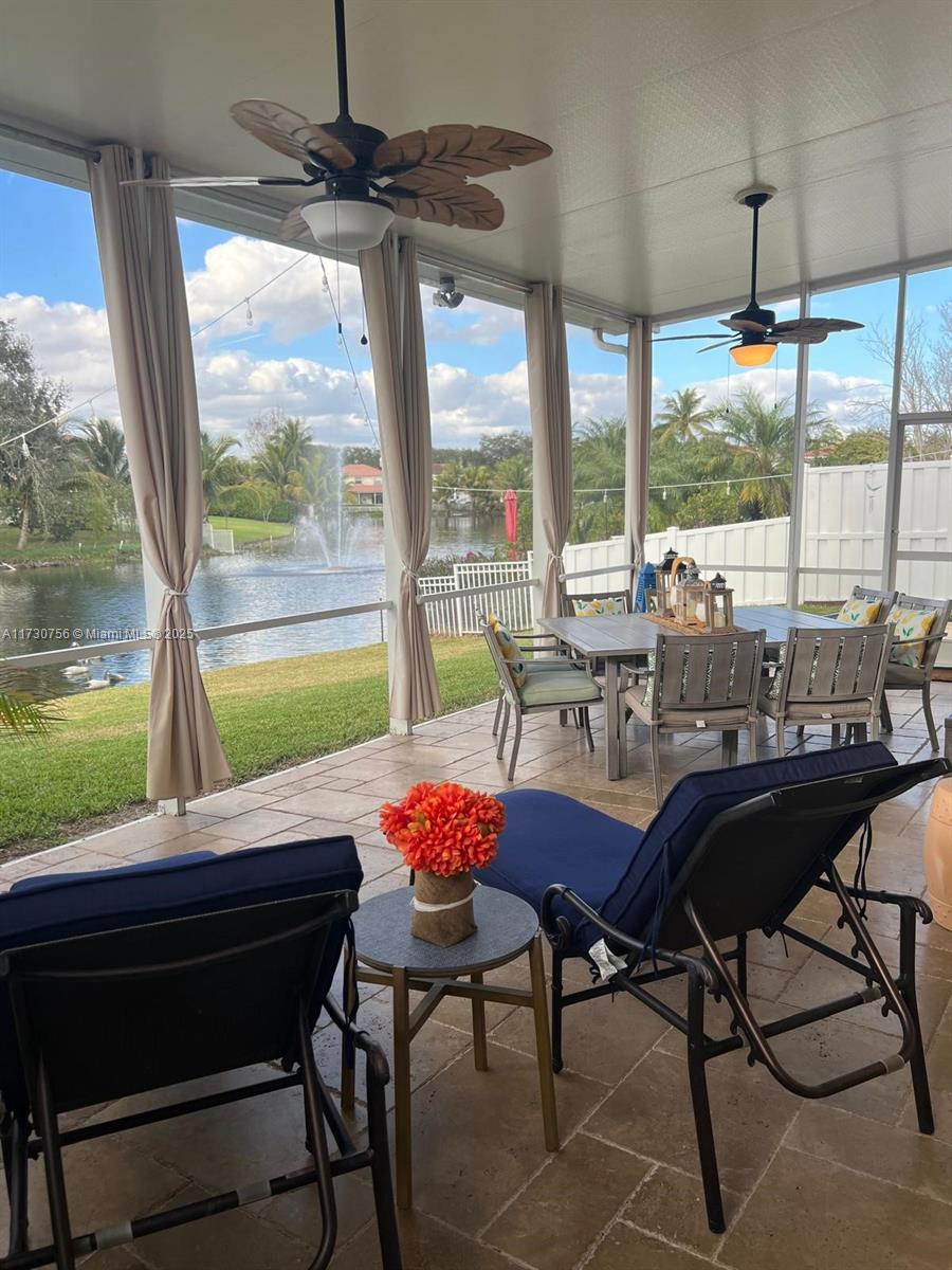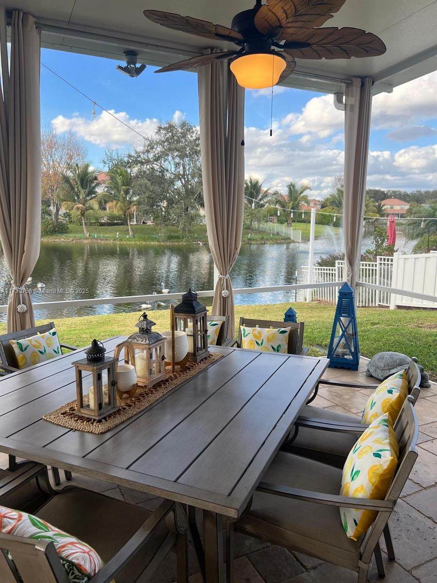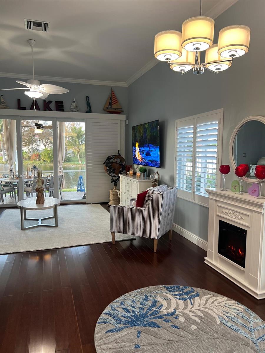 STUNNING WATERFRONT VIEWS!! Enjoy the picturesque sunsets and fountain views from this gorgeous meticulously maintained 3BR/2BA Plantation home! This beautiful home features a massive extended lanai with covered roof/screen to enjoy the beautiful backyard decorated with Bistro lighting! Elegantly designed inside with new Plantation Shutters, bamboo wood floors/tile in kitchen and bathrooms. Renovated kitchen with granite countertops with stainless steel appliances. Primary suite includes a sliding glass door entry to lanai, huge walk in closet, spa like bathroom w/walk in shower and separate soaking tub. Modern lighting fixtures, crown molding, elegant formal dining area. Impact windows/garage door and sliders. Private side yard w/garden. Travertine driveway and side walkway. Low HOA!