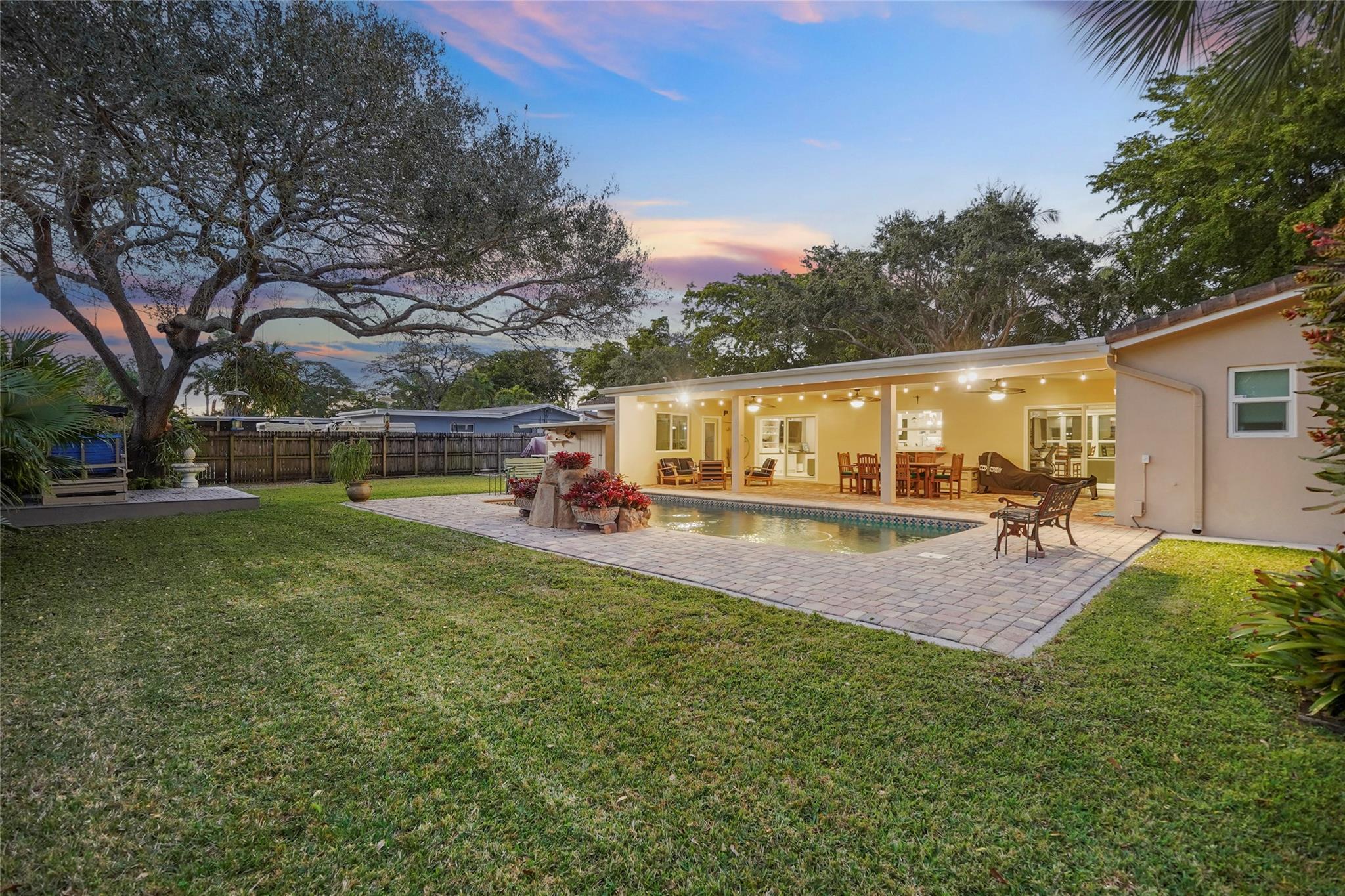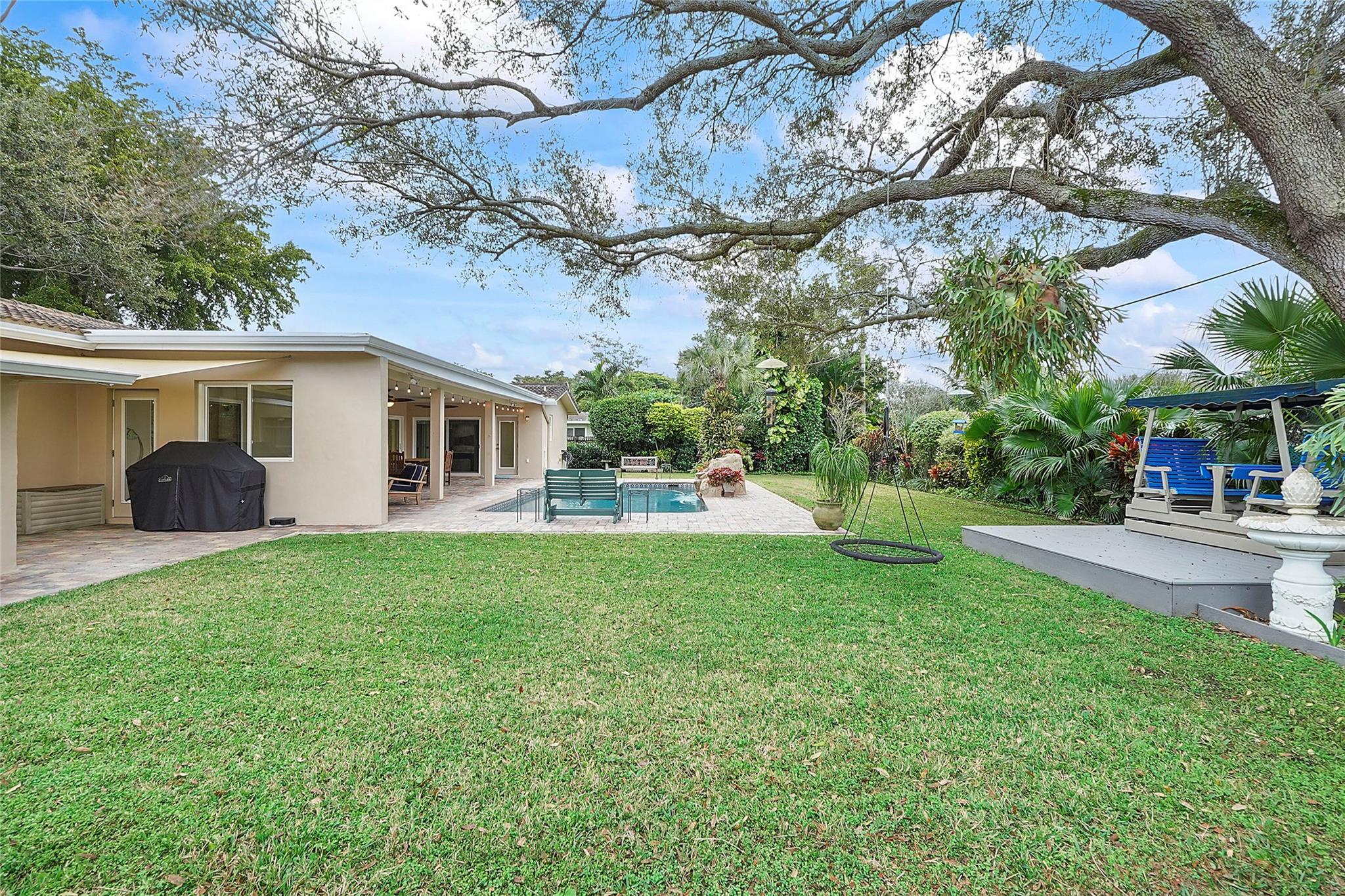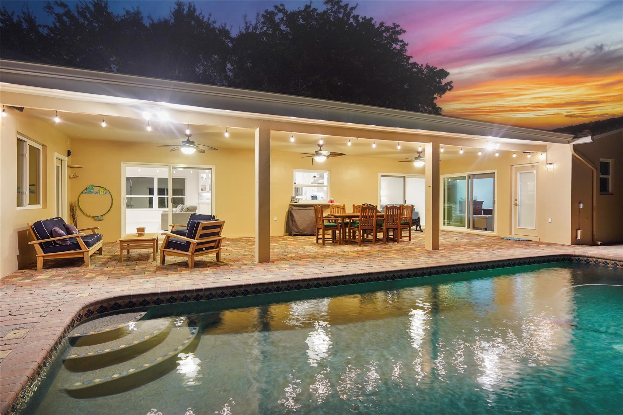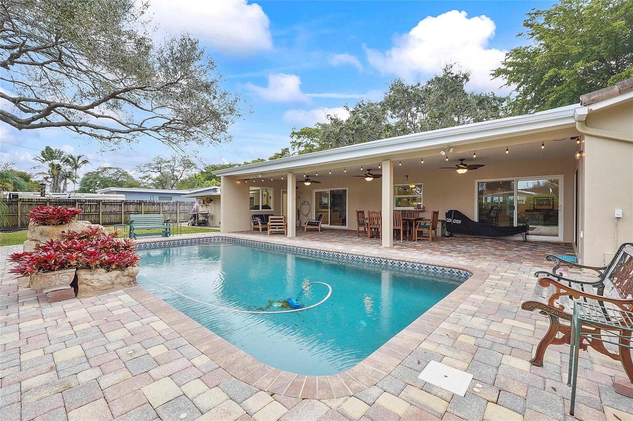 Welcome to this beautifully fully remodeled home, where modern elegance meets outdoor living. Featuring 3 bedrooms and 2 updated bathrooms, this home boasts a chef’s kitchen with sleek Cambria quartz countertops and premium finishes throughout. Additional upgrades include high-impact windows and a newer roof, offering both peace of mind and energy efficiency. Step outside to your own private oasis—complete with a sparkling Pebble Tec pool, lush landscaping, and a separate cabana bath for ultimate convenience. The covered patio with ceiling fans provides the perfect spot for year-round outdoor living, whether you’re hosting gatherings or unwinding in a cool breeze. Don’t miss the opportunity to make this your dream home!