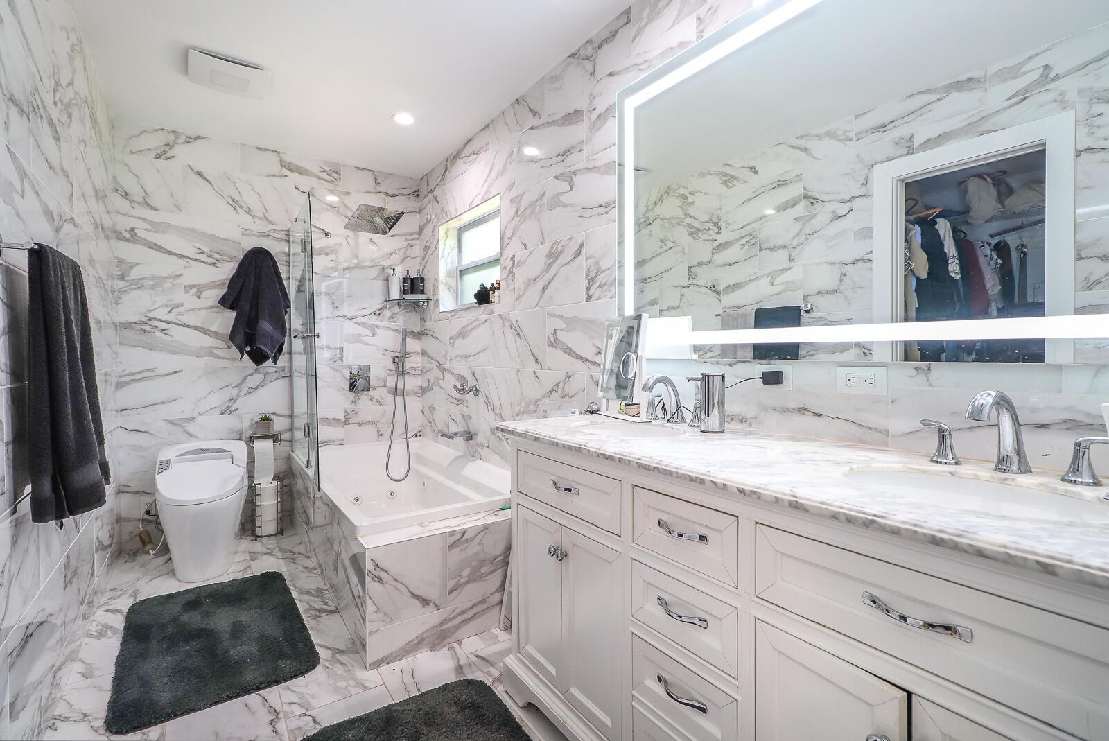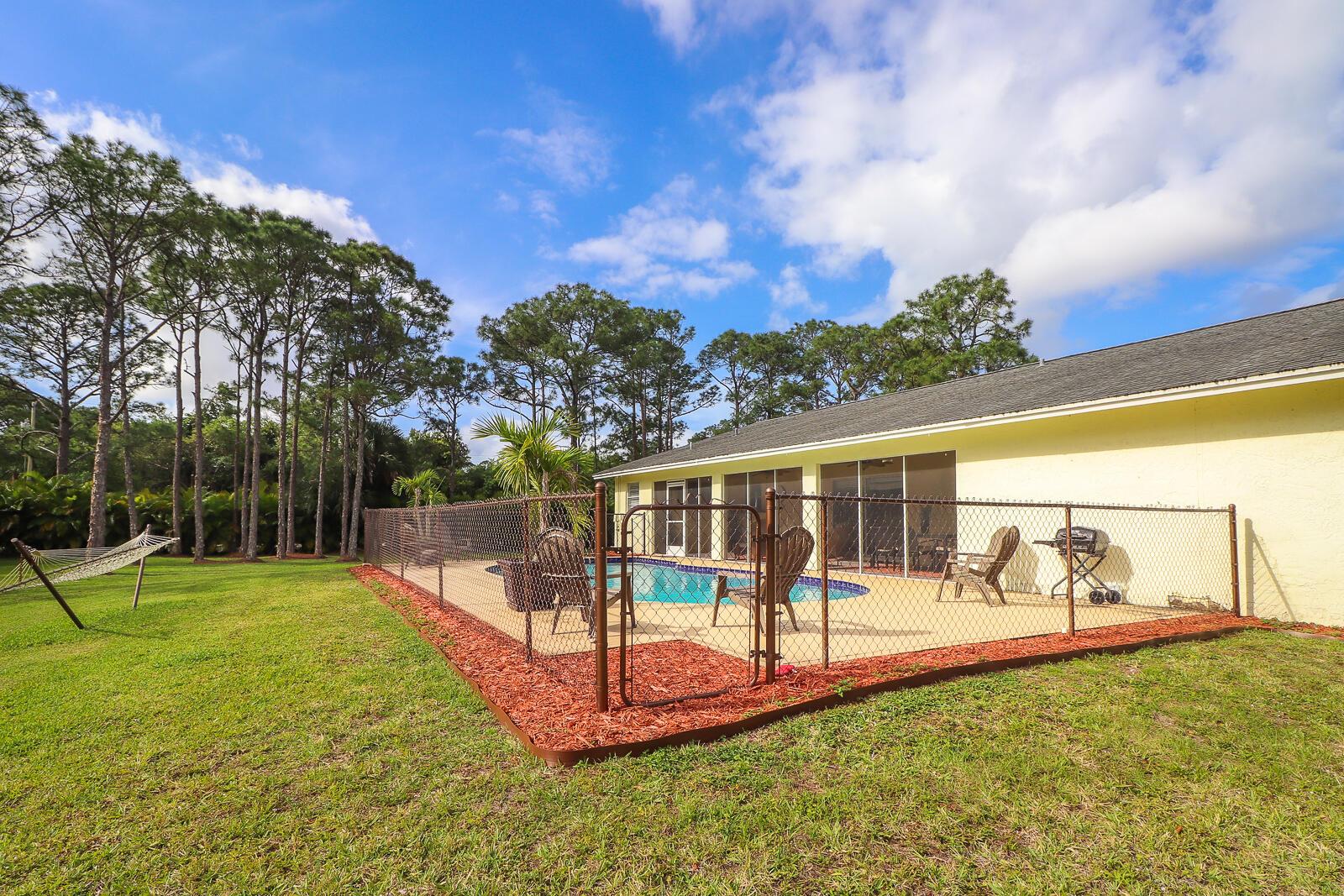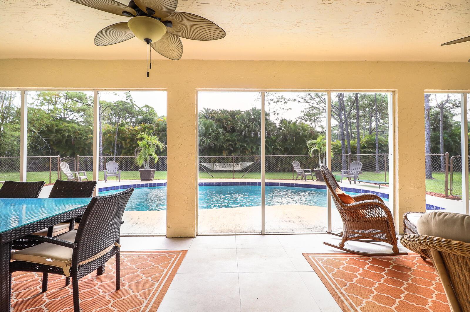 Immaculate CBS 3 bedroom/2 bath/2-car garage home in PB Country Estates. Beautiful pool. Nicely-landscaped 1.16-acre corner lot. Updated throughout - including newly-remodeled master bathroom and cabana bath. Open kitchen features stainless steel appliances, French-door refrigerator, dual-over range, granite countertops, and center island. The screened porch overlooks the beautiful fenced pool area and spacious backyard. Newer A/C. Smart toilets in the bathrooms. This home is hooked-up to city water and located on the corner of a paved road (150th) close to the front section of the subdivision for easy access to area amenities including Alton Town Center, Abacoa, and area beaches. If the lot was vacant the price would be $725,000. ONLY CBS POOL HOME UNDER $1 million on pavement