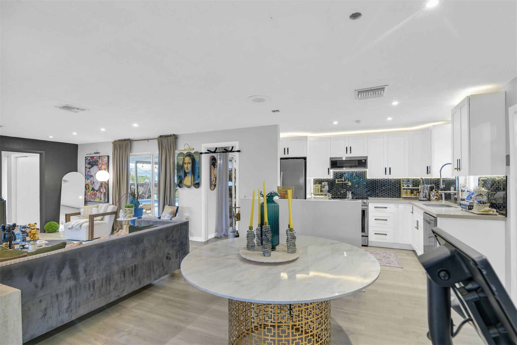 Welcome home! Fully remodeled 3 bedroom 2 bathroom home on a spacious corner lot. Pool and backyard are stunning and create beautiful scenery for this home. Incredible natural light dresses this space along with an open concept kitchen, formal dining room, large family room and additional dining space off of the kitchen. The primary bedroom has two large closets in addition to the walk in closet that the owner created and built out. Guest bathroom has two vanities and has been remodeled to perfection. Split bedroom floor plan creates an ideal space for families and vacationers alike. Move to Pompano Beach before the plans for a waterfront downtown are complete along with extensive new development happening on Atlantic Blvd. 5 minute drive to Pompano Beach and the brand new pier.