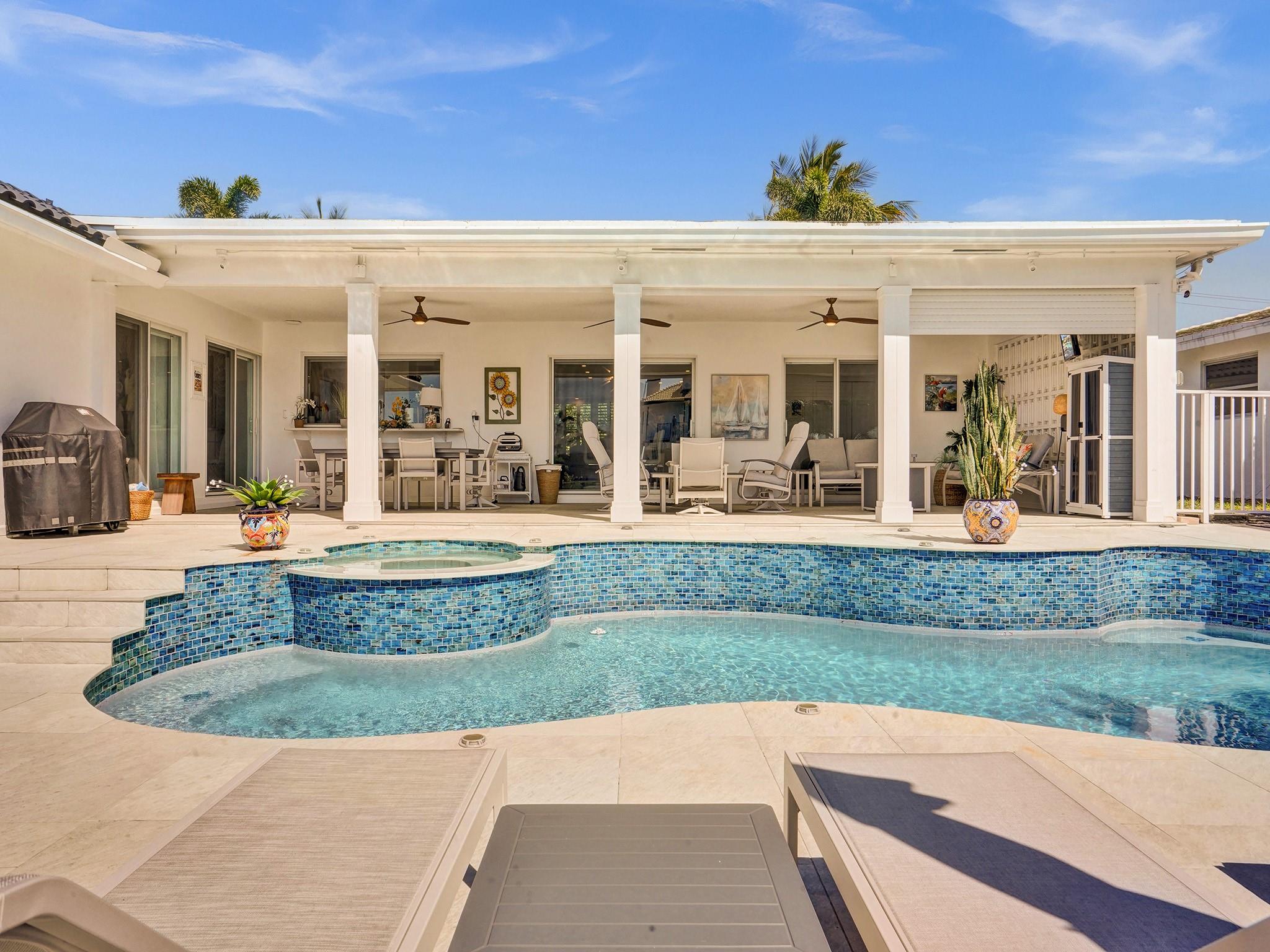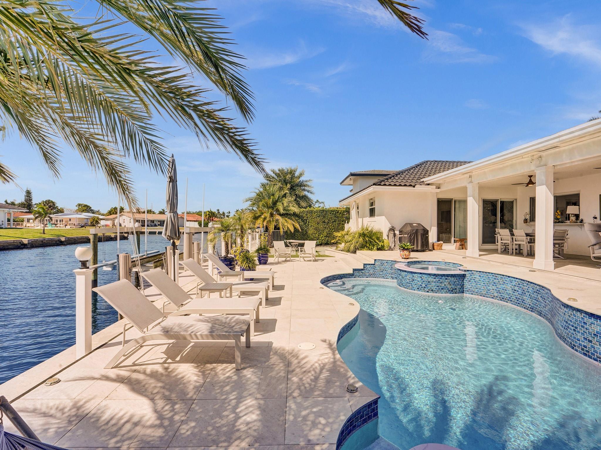This stunning single-family home in The Landings offers an exceptional waterfront lifestyle, featuring 80 feet of deep water access and electric lift suitable for a 40-foot boat. Inside features include the newly renovated kitchen with Viking gas stove, quartz countertops, beautiful bright white kitchen cabinets, farmhouse sink, and more. Additional highlights include elegant 36 x 36 tile flooring, recessed lighting, and impact windows and doors. The property also features new pavers and a recently maintained roof. Sold fully furnished, this turnkey residence combines luxury with comfort, making it a unique opportunity. Come see this spectacular home in the heart of NE Fort Lauderdale, and make it your very own.