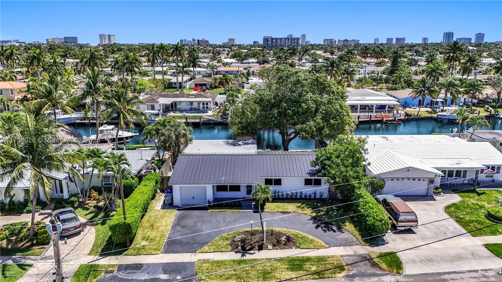 BRAND NEW ROOF, BRAND NEW AC, ALL IMPACT WINDOWS. This stunning property has undergone a meticulous transformation revealing a masterpiece of modern living with 70 ft of water frontage & ocean access. Every inch of this residence has been thoughtfully reimagined. The heart of this home is its modern kitchen & open layout with tile floors, plenty of natural light creating a bright & welcoming ambiance. Step outside to the expansive outdoor oasis, where the enchanting melody of the water complements the generously sized patio invites al fresco dining while the private dock offers a gateway to endless nautical adventures.