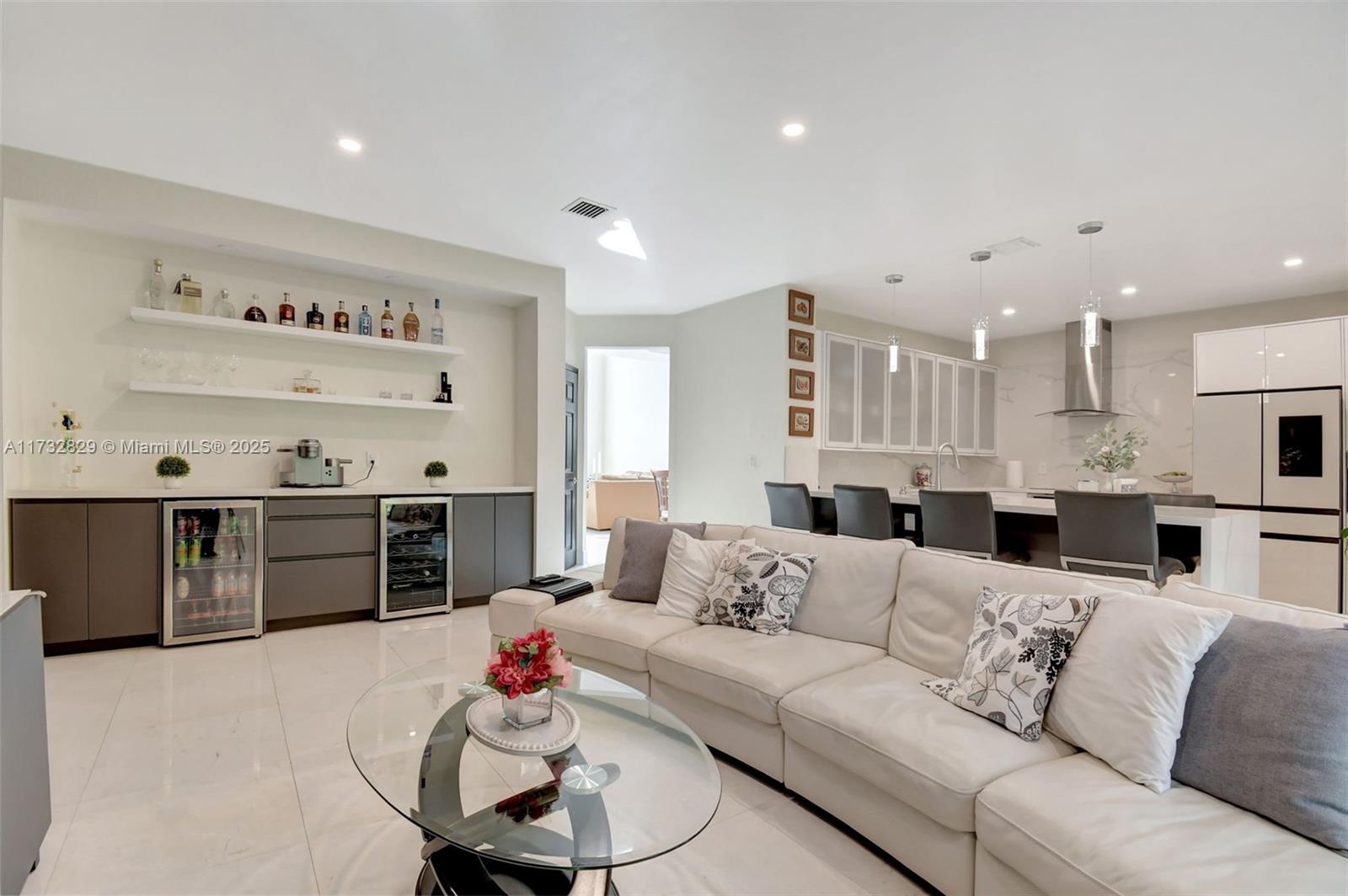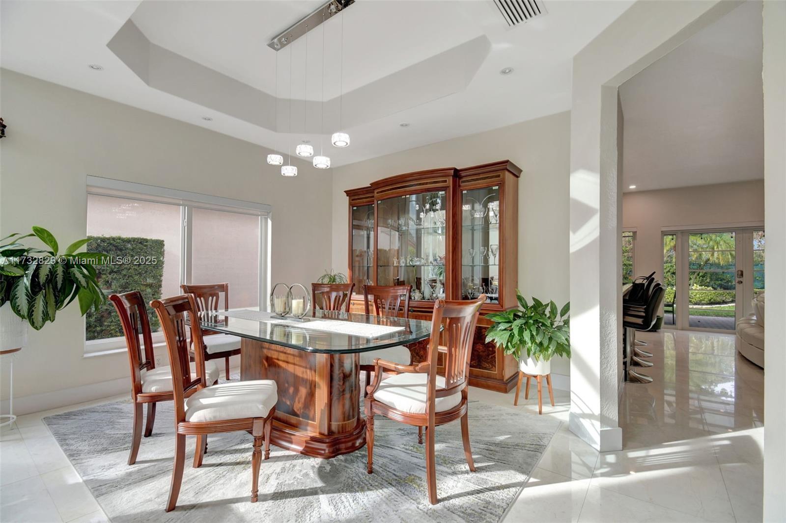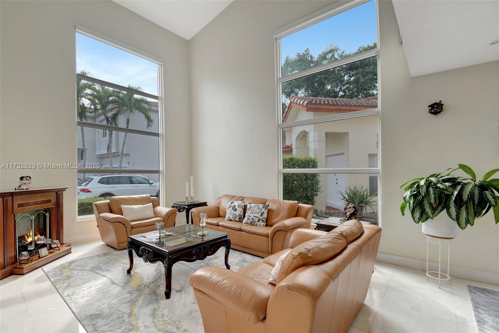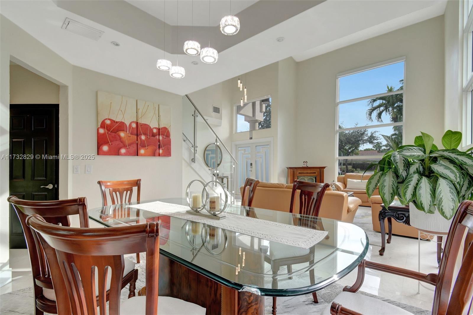 This spectacular property is located in the prestigious Doral Cayman within the exclusive Doral Isles gated community. It features 4 bedrooms and 3 bathrooms. It boasts an impressive grand entrance with soaring ceilings; the open floor plan effortlessly connects the living, dining, family room, and kitchen areas, creating inviting spaces ideal for both everyday living and entertaining. The kitchen has been exquisitely remodeled to offer modern elegance with quartz countertops, and an eat-in counter. The master bedroom upstairs is a true sanctuary, offering built-in walk-in closets, and a luxurious on-suite bathroom complete with a modern vanity, double sinks, with jacuzzi tub and a rain shower with a glass enclosure. The home features impact windows and doors throughout.