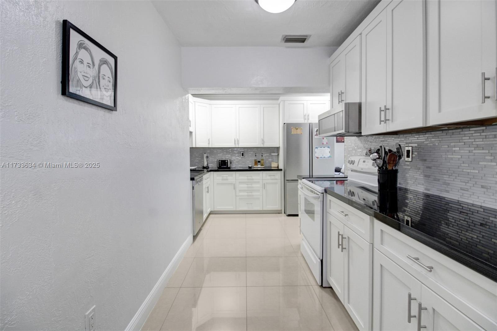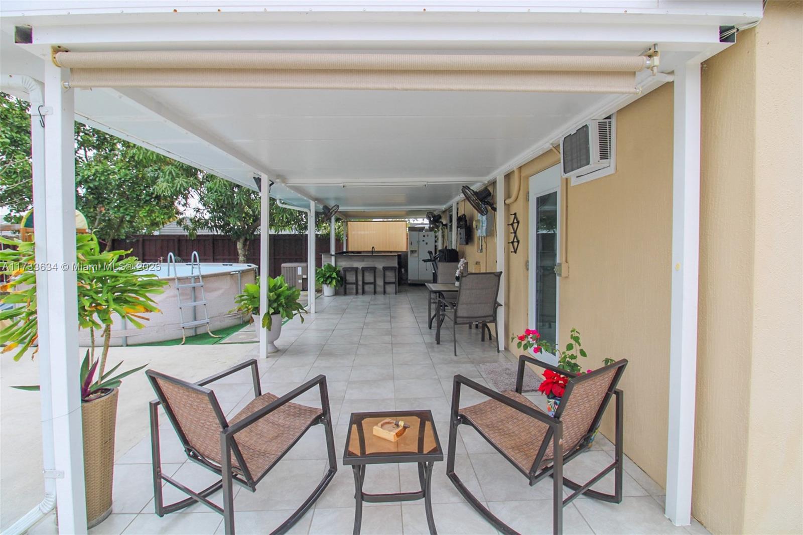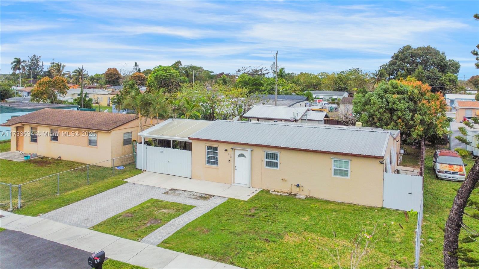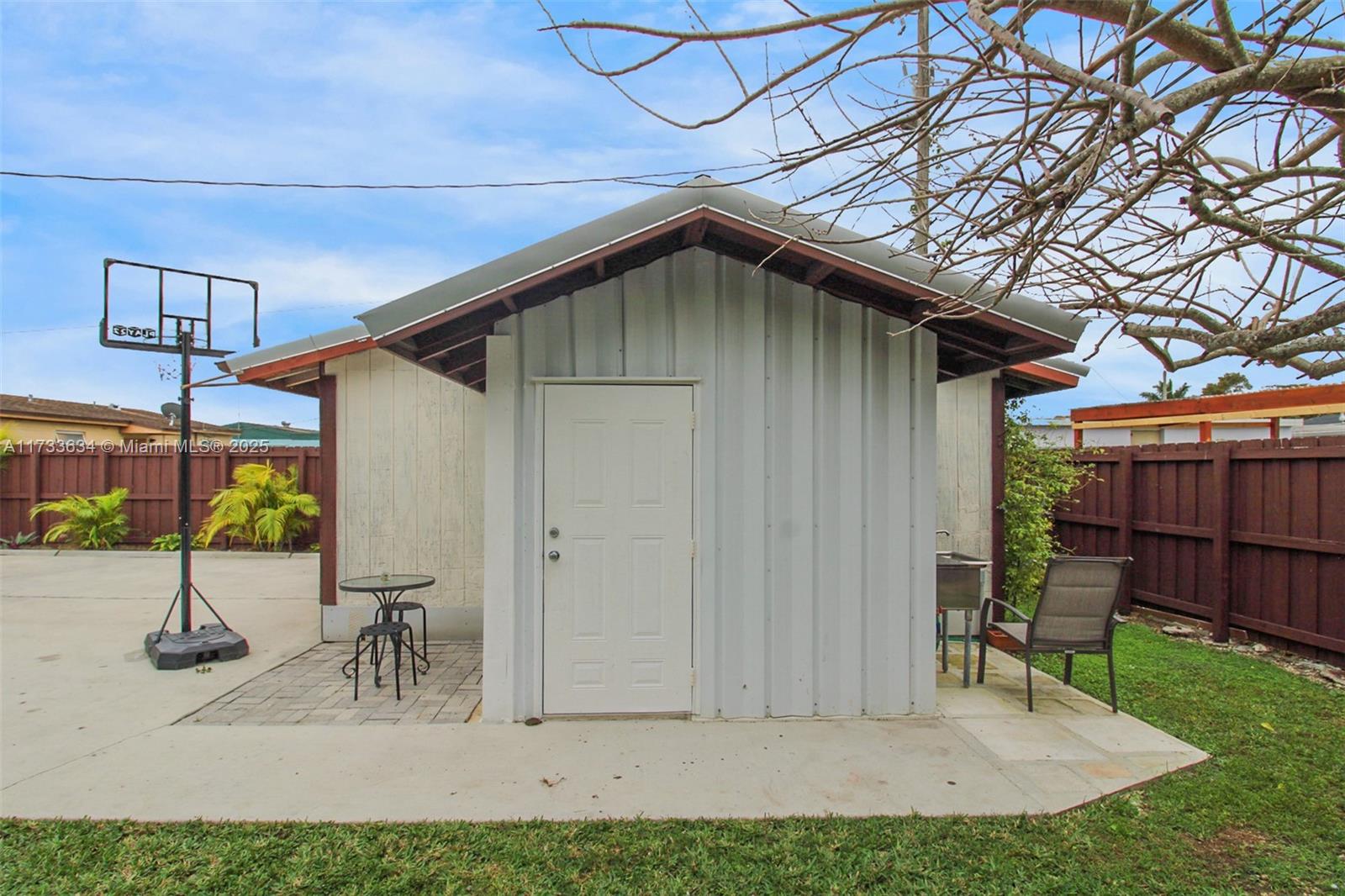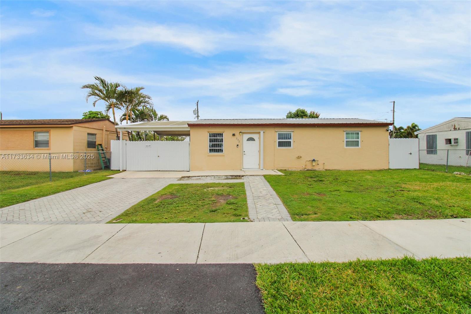 This charming property offers a unique blend of living and income potential. Total of 3 bed. 2.5 Bath. The split plans is designed with 2 bedrooms and 1 bathroom towards front of home & the 3rd room has outmost privacy to be used as studio apartment with its own private entrance, complete with private bathroom and walk in shower. Ideal space for guests or extended family. generating rental income. Relax and entertain under the covered patio featuring a built-in summer kitchen, ideal for outdoor gatherings. There's convenient side entry covered parking for your RV or boat . The property also includes a detached garage with half bathroom and laundry room.