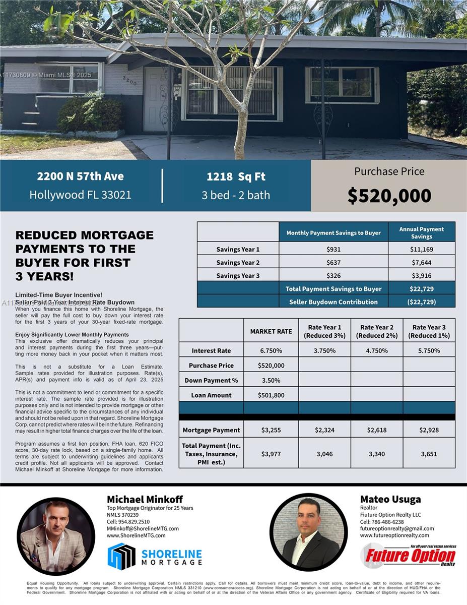 PRICE IMPROVED! SPACIOUS 3/2 SINGLE FAMILY + CARPORT AND CIRCULAR DRIVEWAY. BRAND NEW ROOF INSTALLED WITH PERMITS ON 2025 COMBINED WITH ACCORDION HURRICANE SHUTTERS HELPS YOU GET A LOW INSURANCE POLICY. HOME IS READY TO MOVE IN. PROPERTY FEATURES A SPLIT FLOOR PLAN WITH REMODELED BATHROOMS, NEW KICTHEN CABINETS WITH GRANITE COUNTER TOPS, NEW CENTRAL AC UNIT, NEW STAINLESS-STEEL APPLIANCES, WOOD FLOORS, NEW ELECTRICAL PANEL WITH NEW ELECTRICAL EXTERIOR SERVICE, LAUNDRY ROOM AND SPACIOUS SHADED BACK YARD. EXCELLENT OPPORTUNITY TO PURCHASE AN AFFORDABLE HOME IN A NEIGHBORHOOD IN CENTRAL HOLLYWOOD. LOW PROPERTY TAXES AND NO ASSOCIATION. SELLER COULD CONTRIBUTE TOWARDS BUYER'S CLOSING COSTS OR PAY FOR AN INTEREST RATE BUY DOWN TO REDUCE THE INTEREST ON MORTGAGE. (SEE FLYER ATTACHED)
