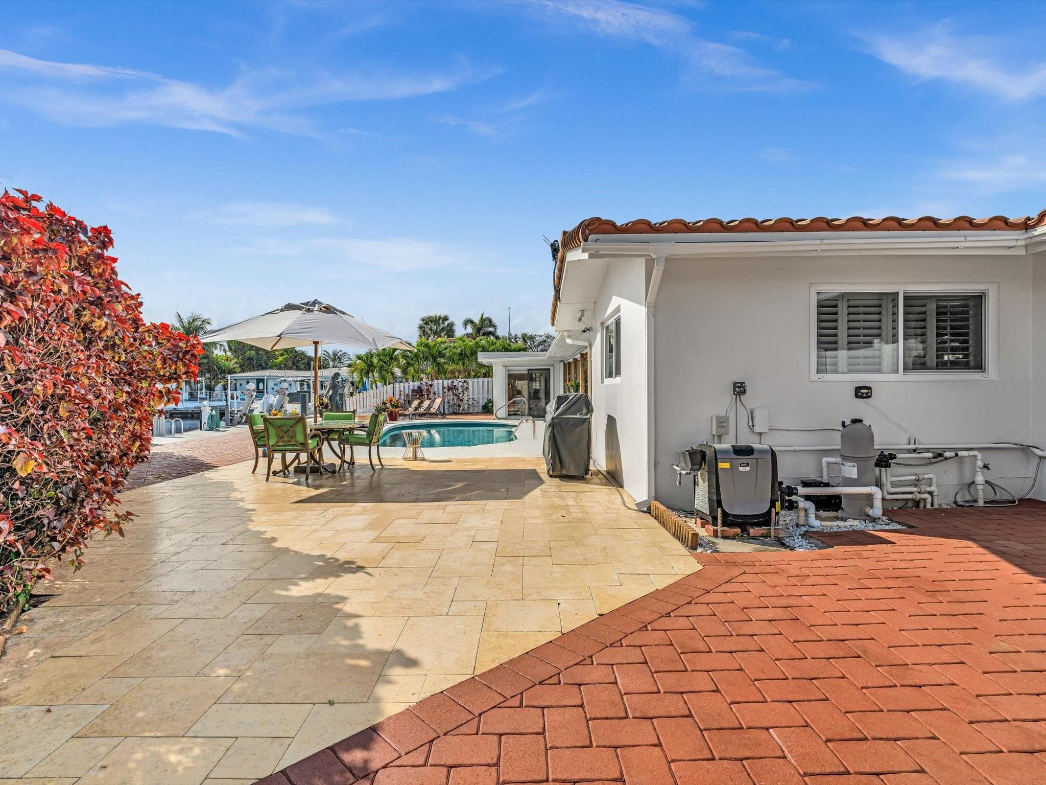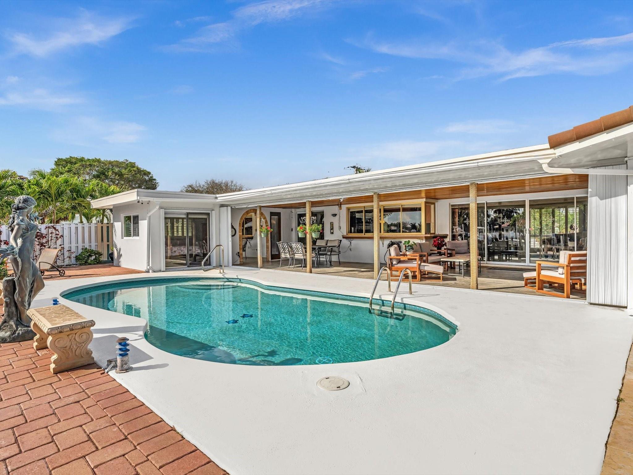 Wonderful waterfront home in the coveted Landings Neighborhood. This 4/4 home is ideally situated for those who desire a coastal lifestyle -boating, fishing & kayaking. Bring your boat - deep-water access, mins to Intracoastal, with 7000 lb boat lift. New seawall, dock, floating dock 2023. Two master suites, with private mother-in-law or au pair suite. True eat-in kitchen, perfect for family gatherings. The spacious living areas have amazing water views that flow seamlessly to the private covered patio & heated pool, offering a serene retreat for outdoor living. Plenty of storage with huge walk-in closets, kitchen pantry, circular drive, two-car garage, Hurricane Impact Windows. Mins. to Beach, Lauderdale-by-the Sea, restaurants & shopping. Freshly painted outside 12/2024, Roof 2013.
