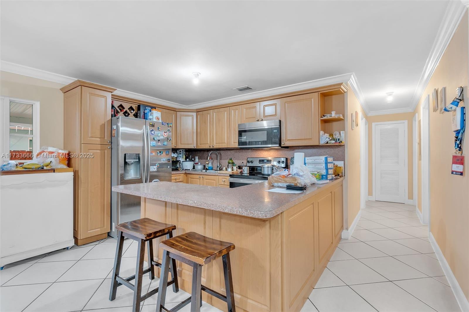 Discover this fantastic opportunity in the heart of Hialeah! Situated on an oversized corner lot, this home offers 3+ bedrooms, 2+ bathrooms and a spacious, open floor plan. The peninsula kitchen is equipped with stainless steel appliances and the home features tile flooring throughout. There’s also additional room, perfect for a den, office or extra bedroom. Step outside to a fully fenced yard and a generous patio with ample space to add a pool or outdoor kitchen—ideal for entertaining. Conveniently located near major highways, shopping and dining. Don’t miss out!