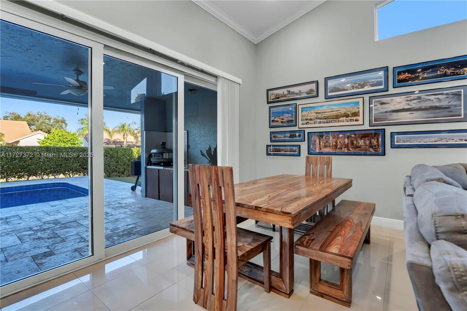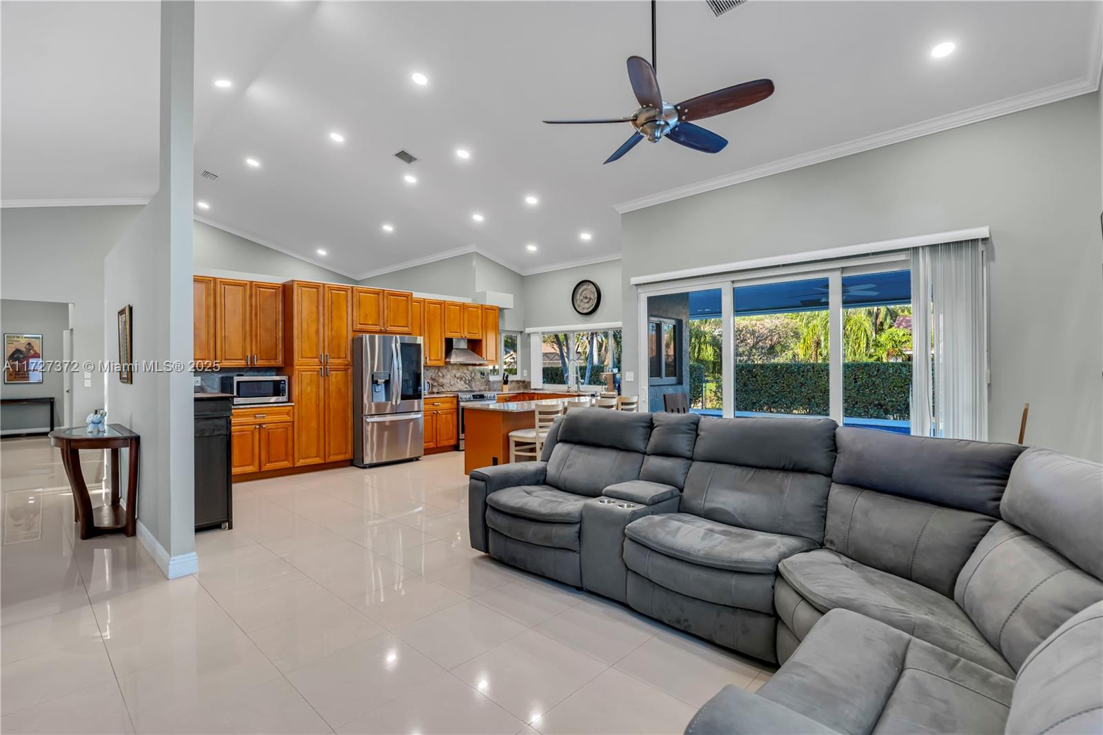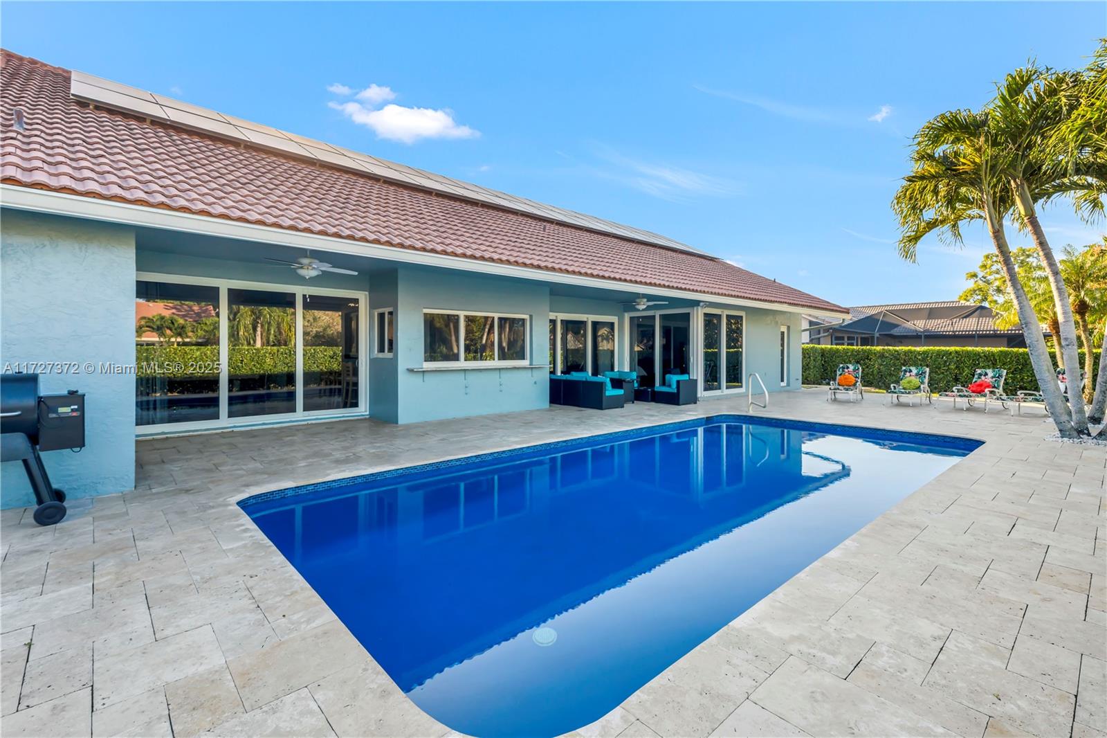 Stunning ranch-style 4bedroom 2.5-bath home with a 2-car garage and heated saltwater pool in the sought out community of Pine Ridge Coral Springs!The kitchen is complete with Granite countertops, SS appliances,lots of storage. Features include Vaulted ceilings,porcelain tile and luxury vinyl flooring,LED lighting,updated bathrooms, built-in closet systems and a circular pavered driveway.Hurricane impact windows & doors, PAID-OFF solar panels, EV charger, and tankless water heater add efficiency and value.Large backyard with grassy areas, covered sitting areas & travertine pavers Outdoor cooking area with sink and Pizza Oven.BRAND NEW Diamond Brite and BRAND NEW high-efficiency pump.Outdoor lighting. Freshly painted indoors and outdoors.Roof has blown-in insulation.Move-in ready!!